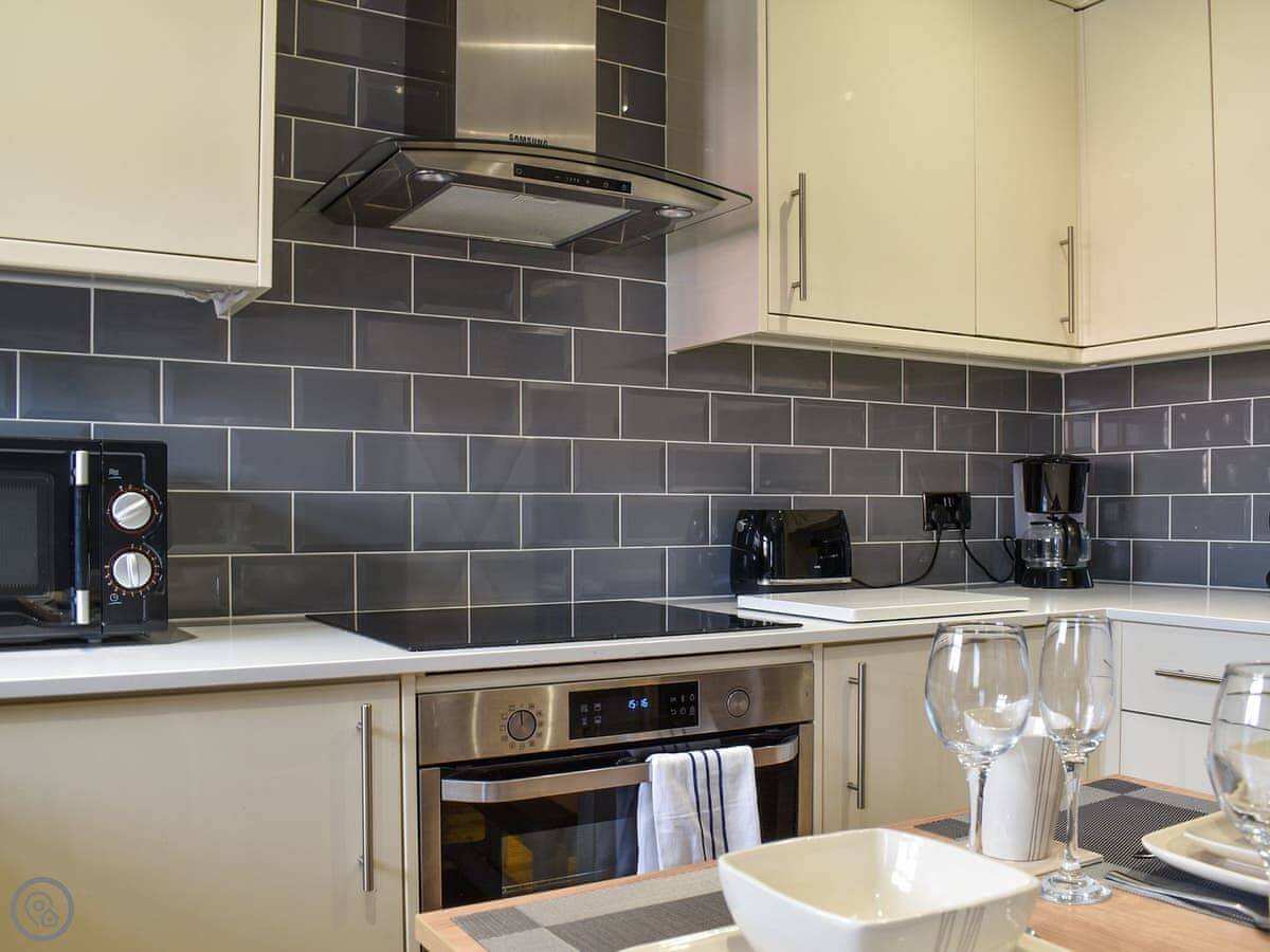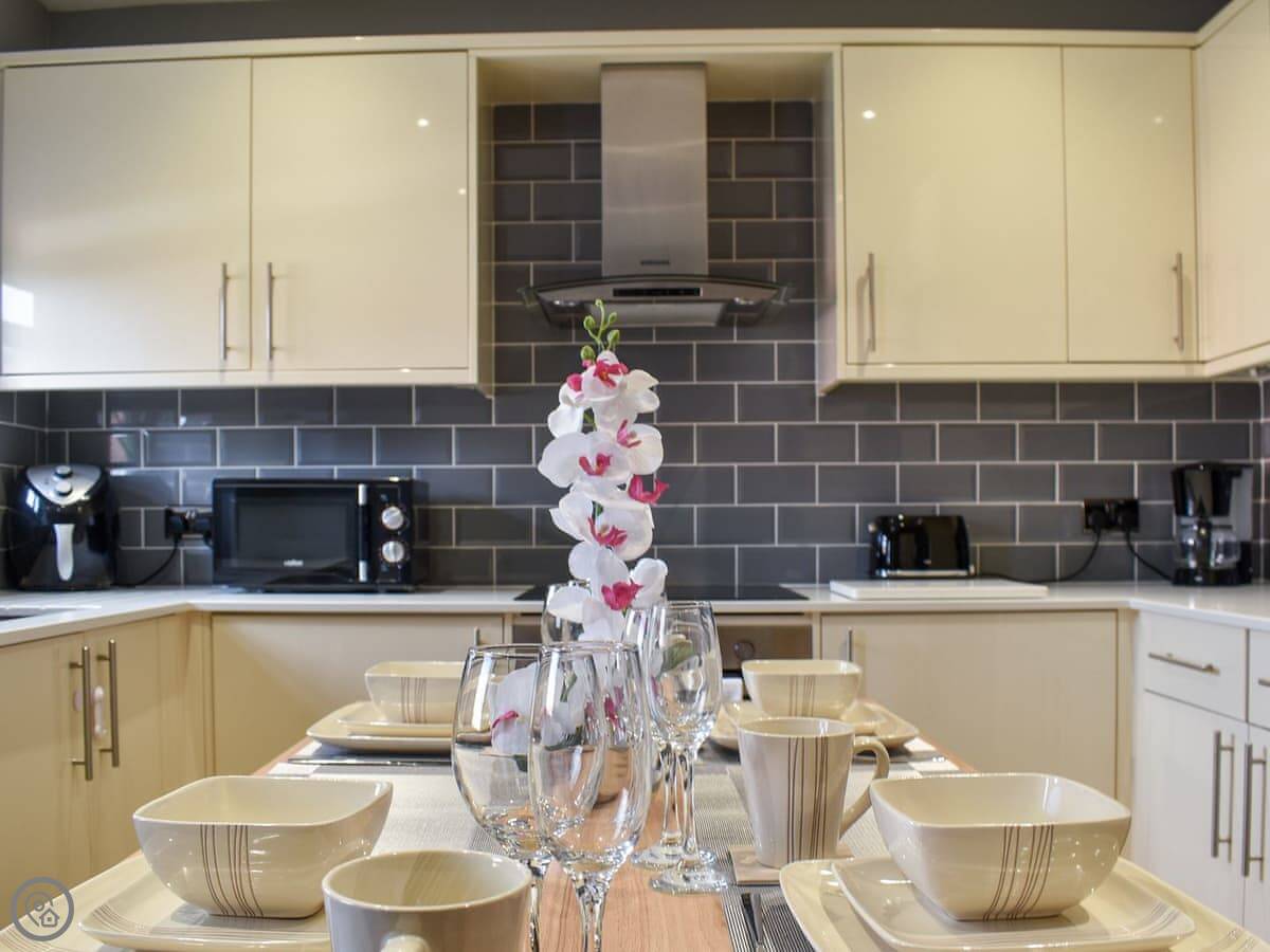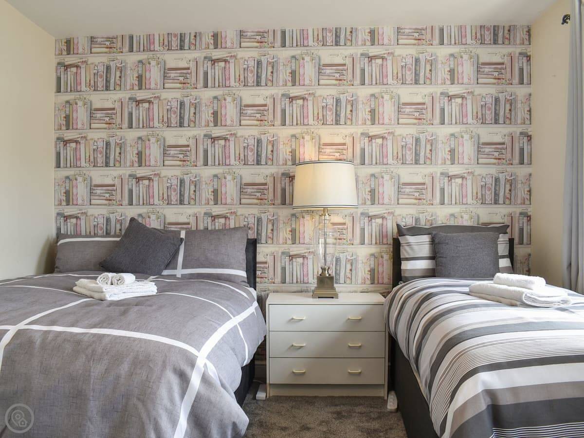 Enter the hallway leading up to the well designed and decorated bedrooms and bathrooms. To your right is a well-equipped kitchen where the chef amongst the group can prepare appetising feasts, before gathering round the dining table to enjoy these meals over a well-deserved glass of wine. Enter the snug living room and curl up on the comfy sofa or enjoy a game or two of table football. Head upstairs to find the four delightful bedrooms on two levels, each level being serviced by a sparkling family bathroom with bath and shower, so you can best decide how to prepare for the day. To the outside are faux lawned areas where you can sit and enjoy each other’s company with a barbecue or a game of golf putting.