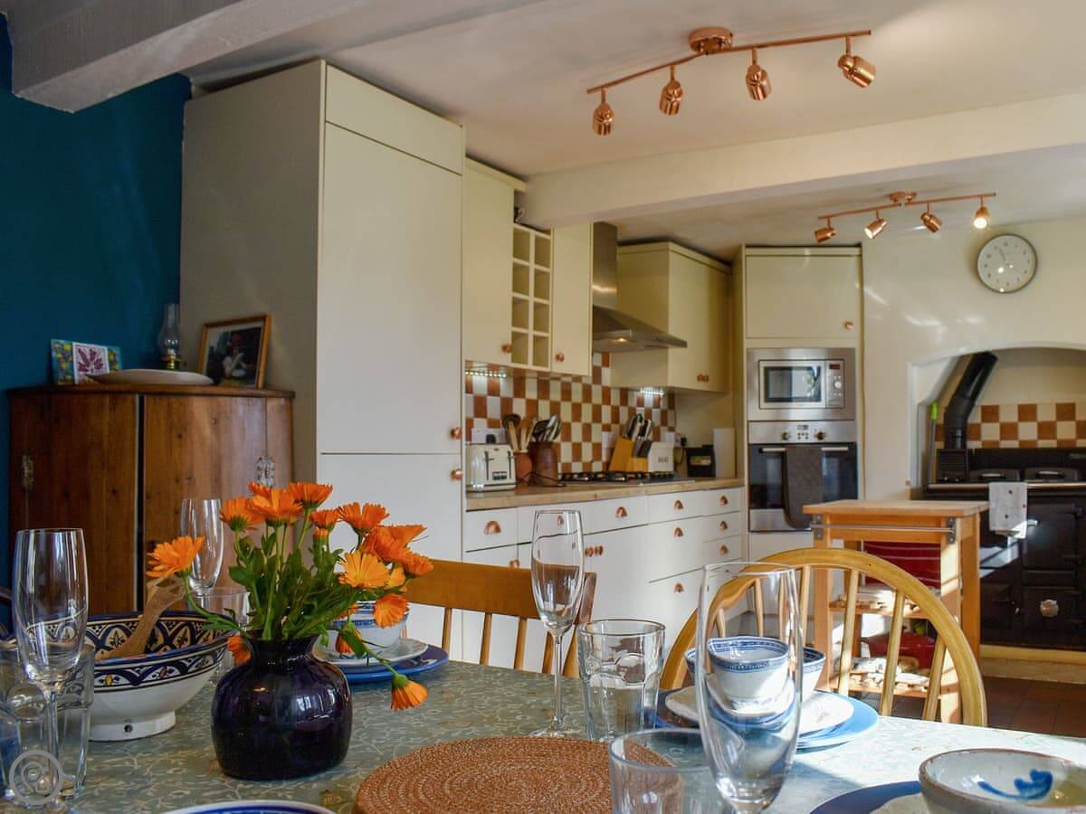 Enter through the gate into the pretty garden, with a fabulous lawned area and plenty of places to sit for al fresco dining or a sundowner after a day out exploring. Inside, the kitchen/dining room comes extremely well equipped with all you could need to rustle up the simplest snack to a feast for all. The decorative Aga adds to the country chic feel, yet there is a wealth of modern facilities. The dining area is the perfect spot for a meal or to play games, while the piano will provide you with hours of entertainment. The living room has a gorgeous wood burner for cosy evenings, a large comfy sofa to snuggle up on, and a Smart TV so you can catch up on your series while you chill out!
