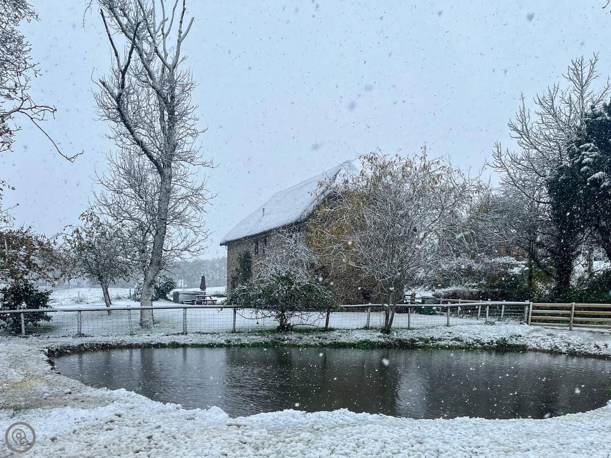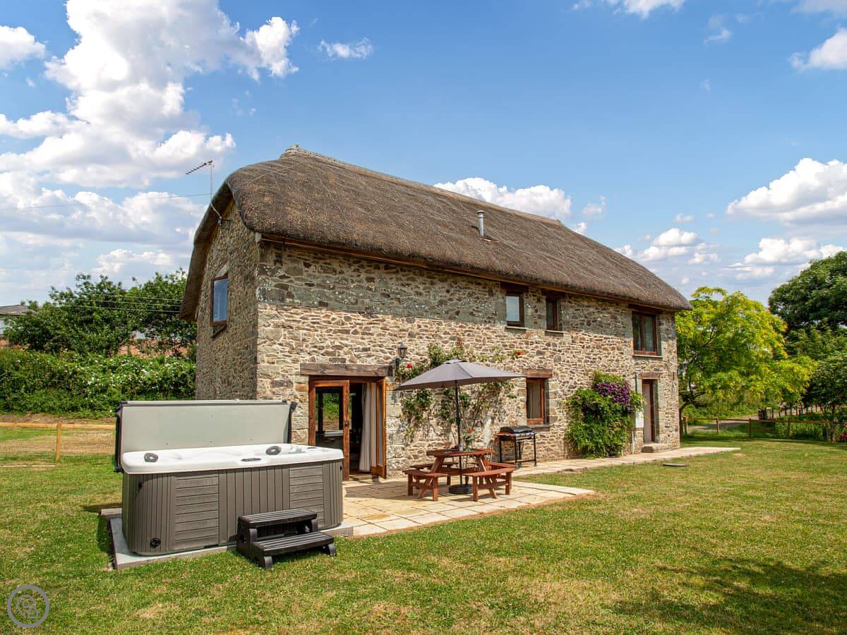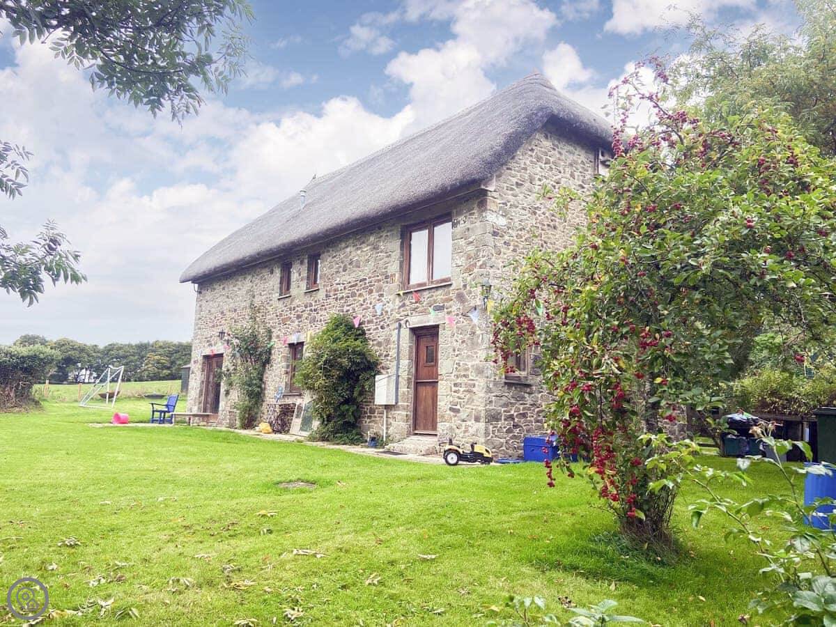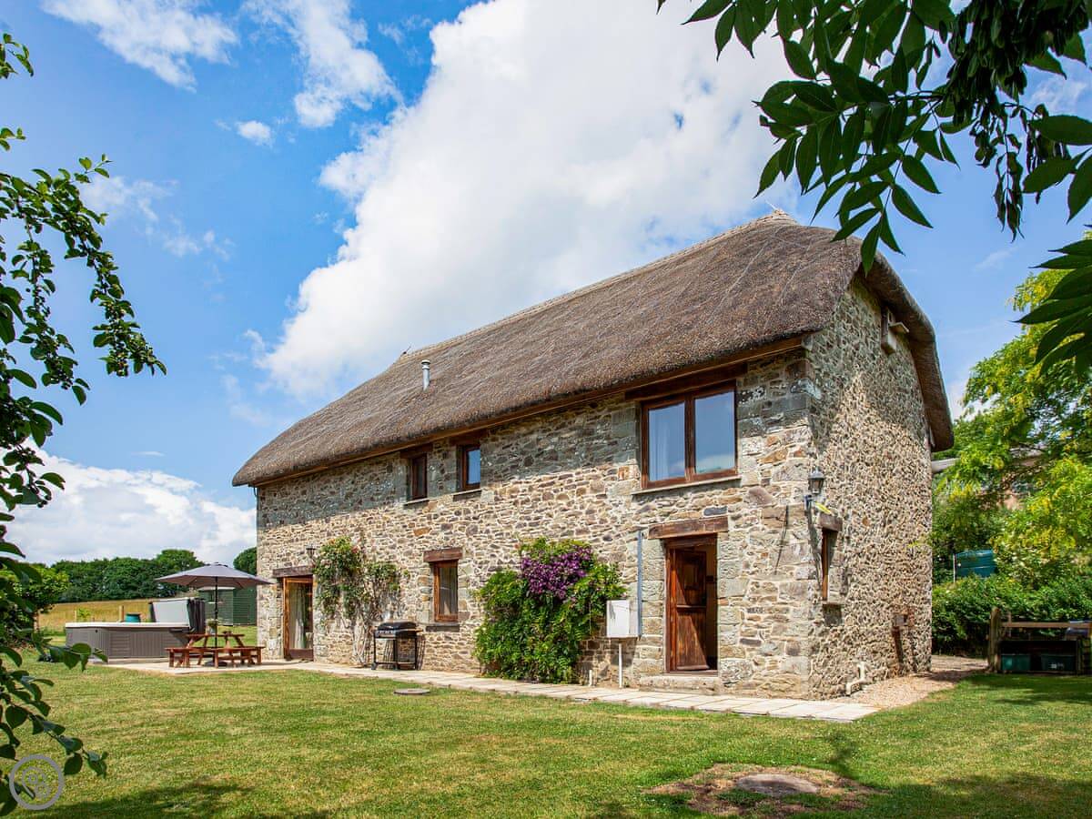 This is Pondmead. It's a thatched barn we converted, on our working farm outside Monkokehampton. It's detached, so it's just you. The views are across our fields towards Dartmoor.