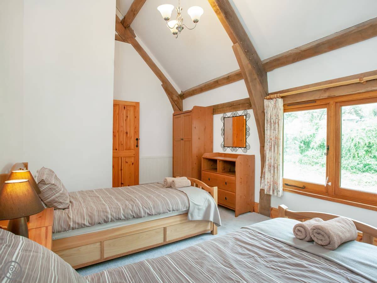 It sleeps eight, in four bedrooms. There are three bathrooms, one's an en-suite to the main bedroom. It's got a 4 Star rating. It's comfortable, not posh.