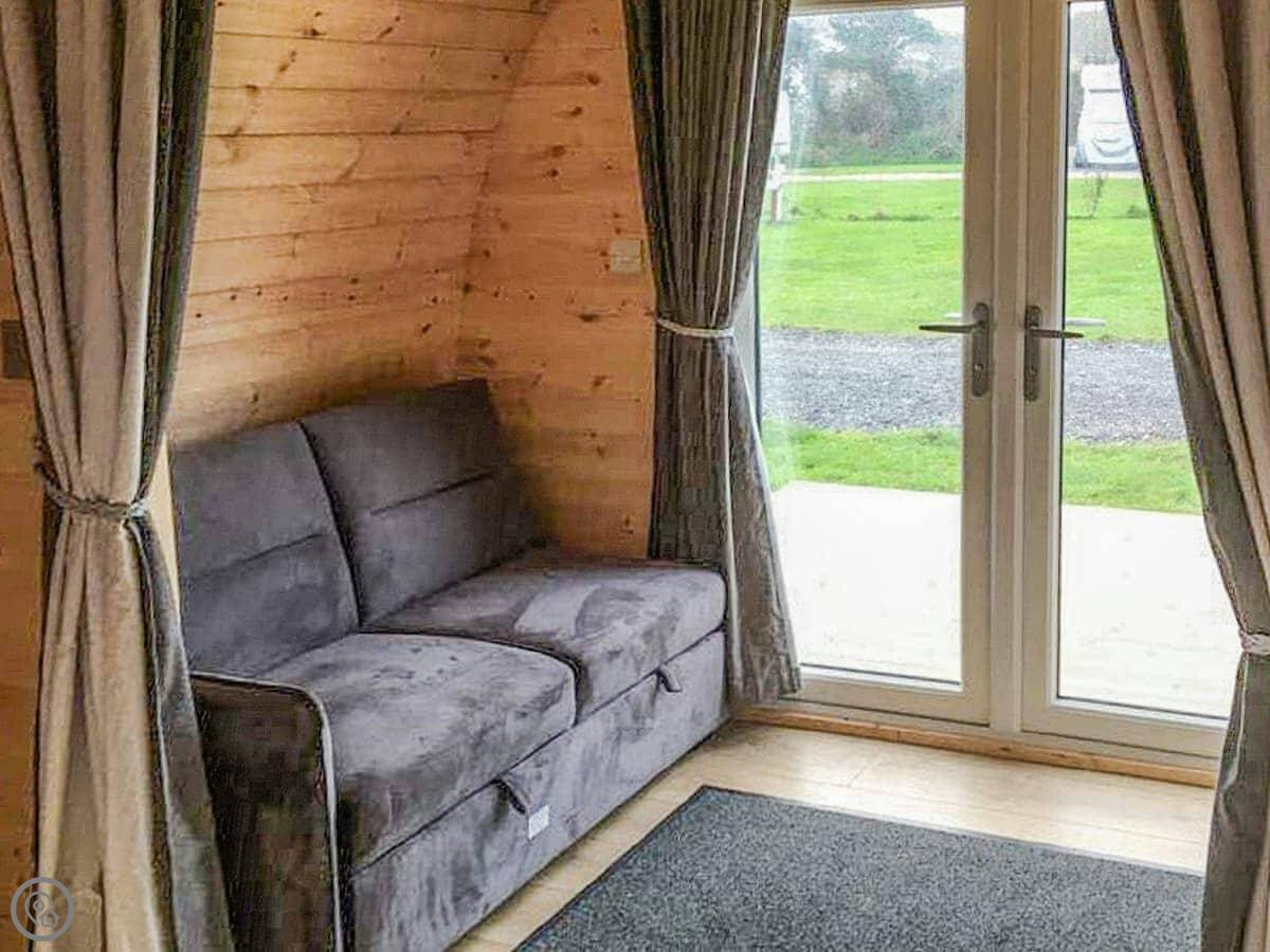 Lavender is a holiday pod on a touring park just outside Brixham. It's a one-bedroom place, sleeps four, and has a three star rating.