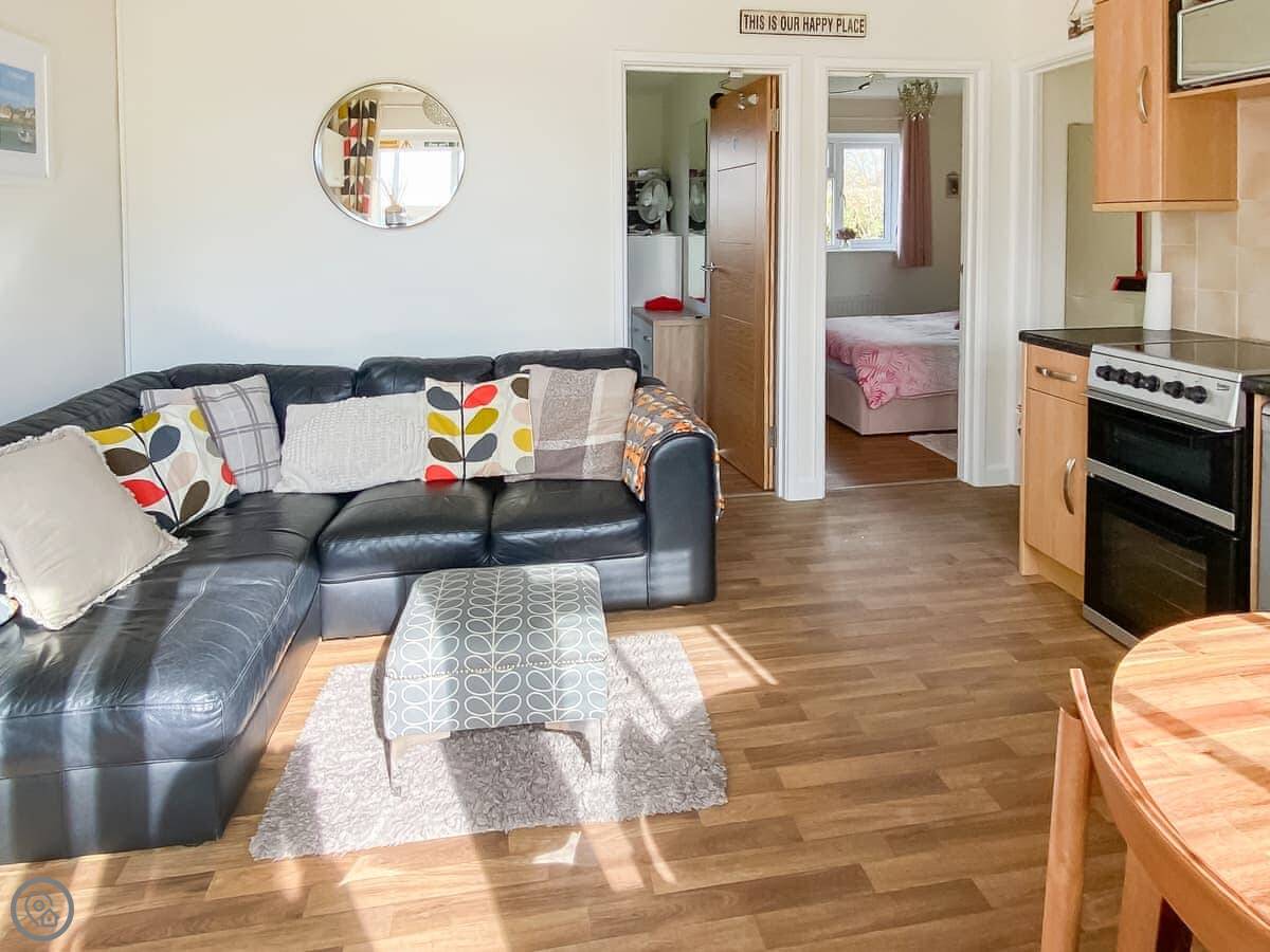 Barn Owls is a bungalow on a holiday village near Weston, just outside Sidmouth. It's mid-terraced, so you've got neighbours on both sides. It's all on one level, which makes it straightforward.