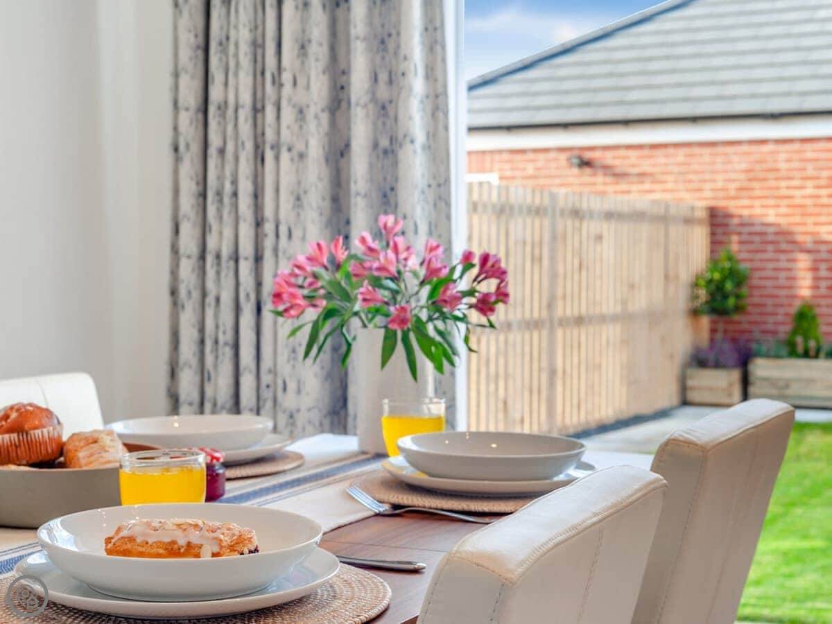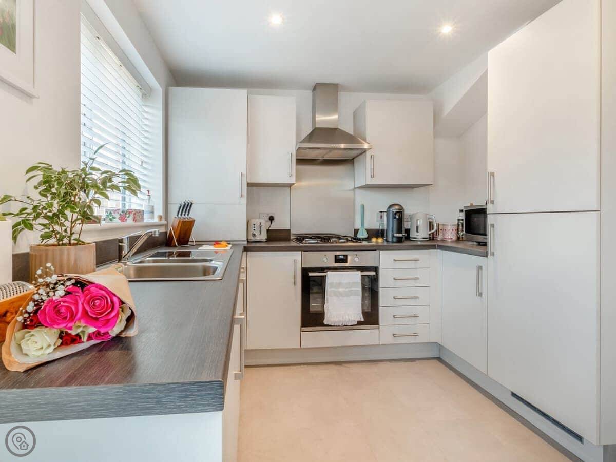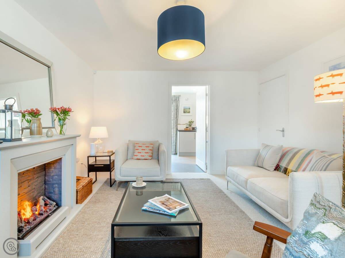 The house is decorated and finished to a high standard, with contemporary furnishings and luxury touches throughout. The sophisticated lounge has comfortable sofas set around a modern fireplace, with Smart TV, Wi-Fi, and high-speed fibre broadband. To the rear is an open and light kitchen/dining room which is fully equipped for every family’s needs, there are even French doors leading out to the contemporary, landscaped.