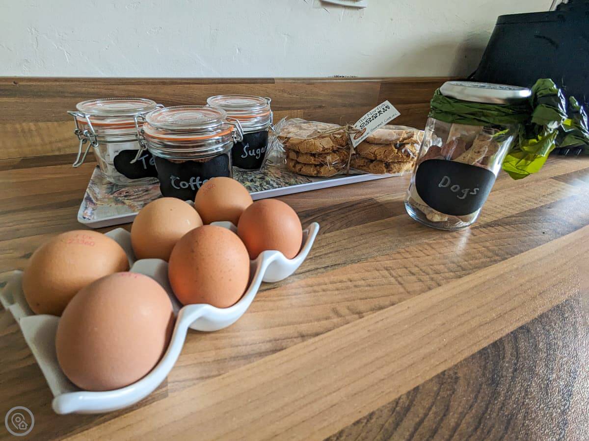 You can bring up to three dogs. Bedding and towels are included. There’s a washing machine, a dishwasher, a woodburning stove, and Wi-Fi. Parking is next to the cottage.