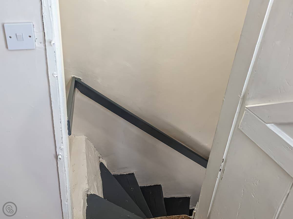 The stairs are in the main living area. They’re spiral, and quite steep.