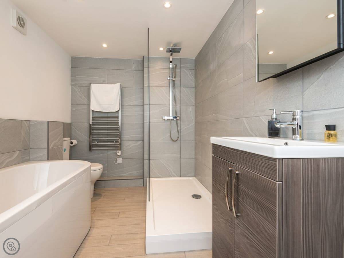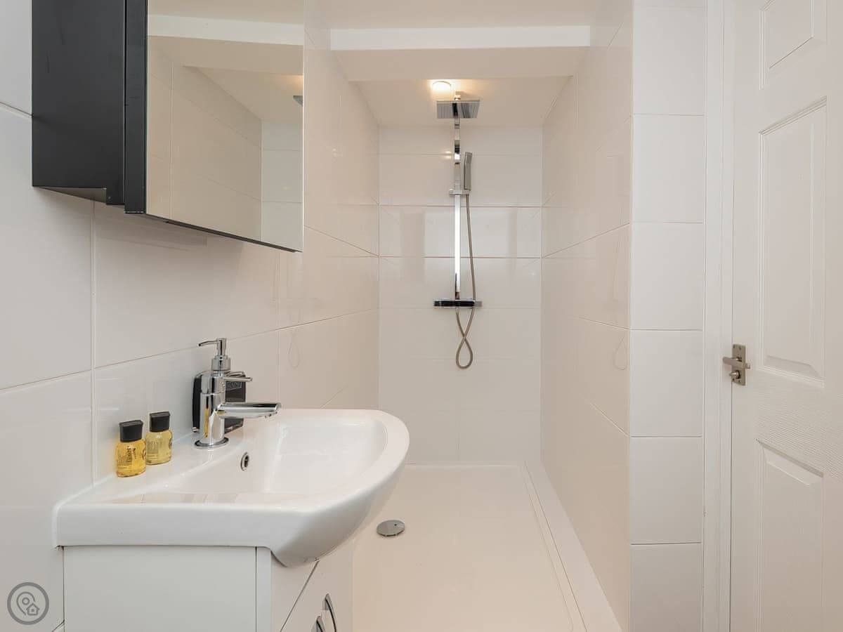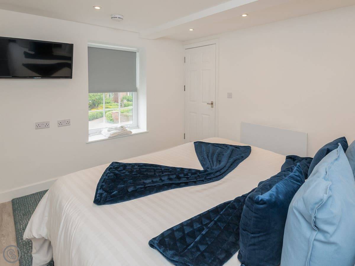 It sleeps four. There's one main bedroom with a super kingsize bed, and then a sofa bed in the living space. There's one bathroom with a walk-in shower. It's got a 5 Star rating, which means it's well-finished and everything's in good order.