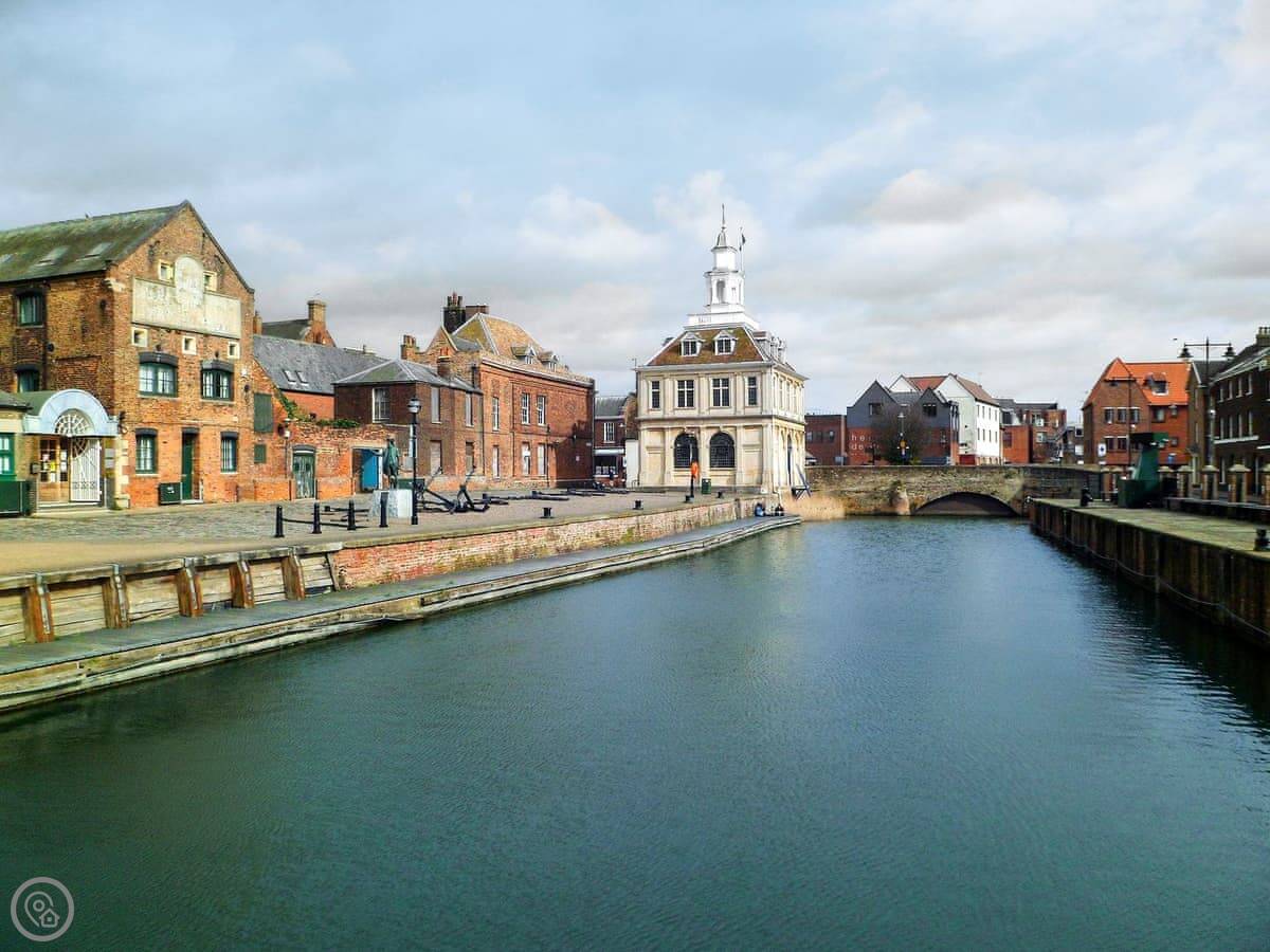 For bigger days out, Sandringham Estate is about twenty minutes' drive. It's a proper country estate with a house and grounds. Holkham Hall and the beach there is about forty minutes. The old town of King's Lynn is half an hour south. It's got a historic quarter by the river.