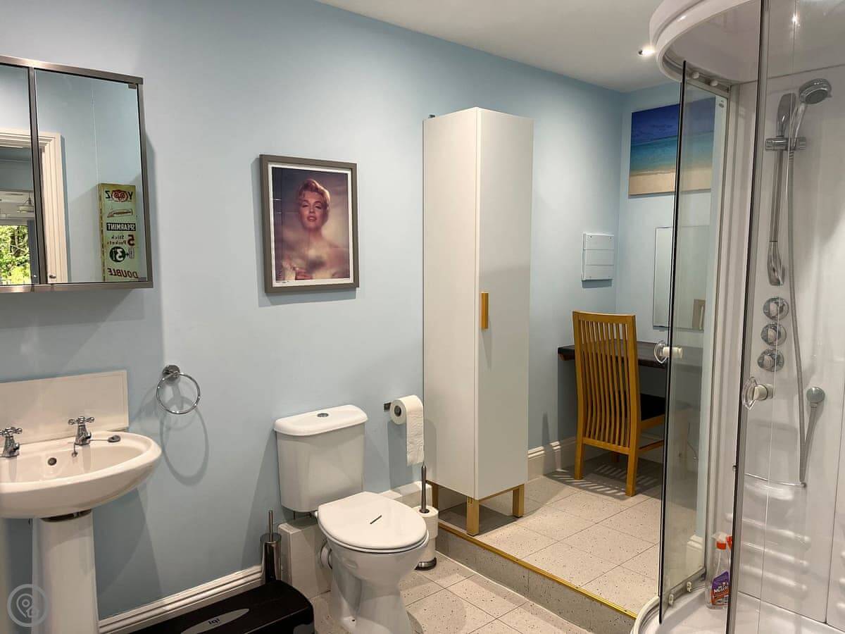 It sleeps four. Two bedrooms, both with double beds, and two bathrooms. The rating is 4 Star. It's a modern conversion, so it's comfortable and warm.