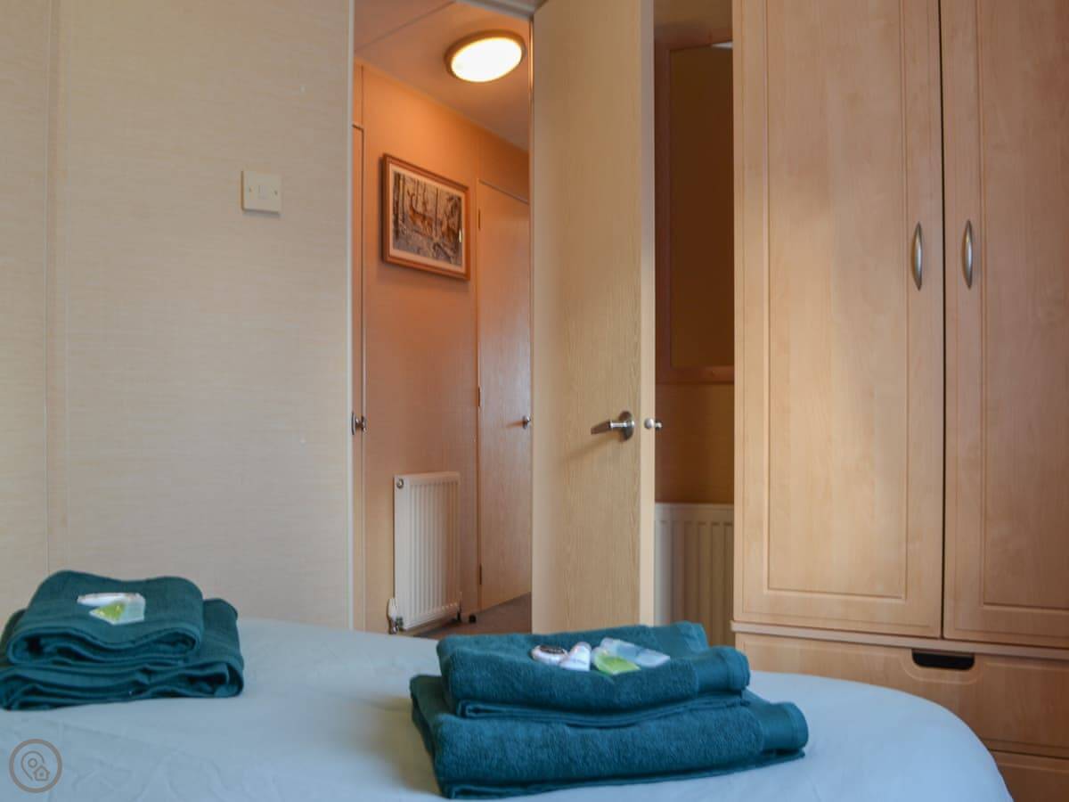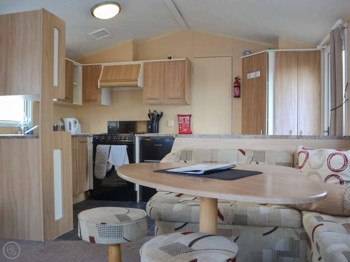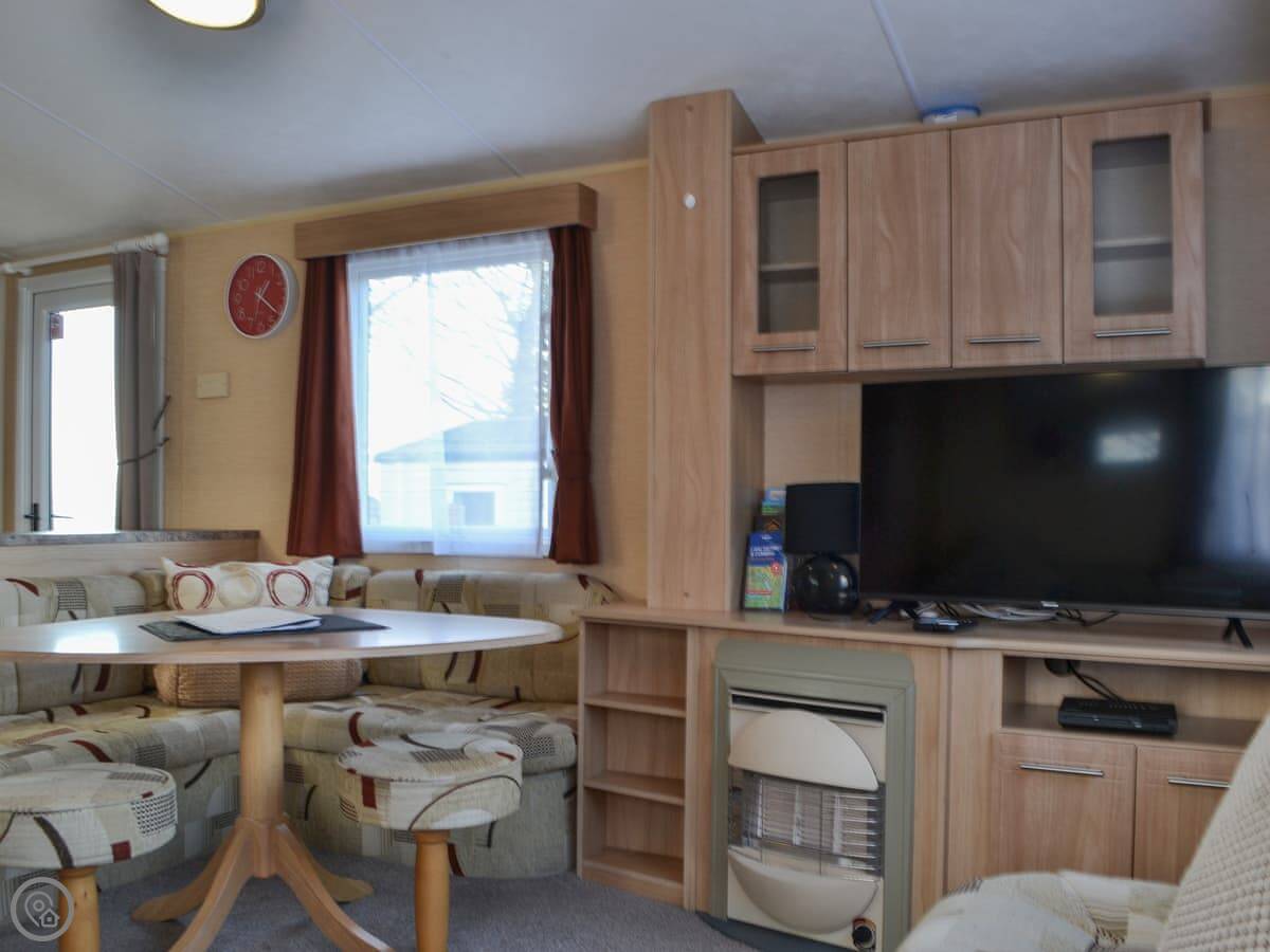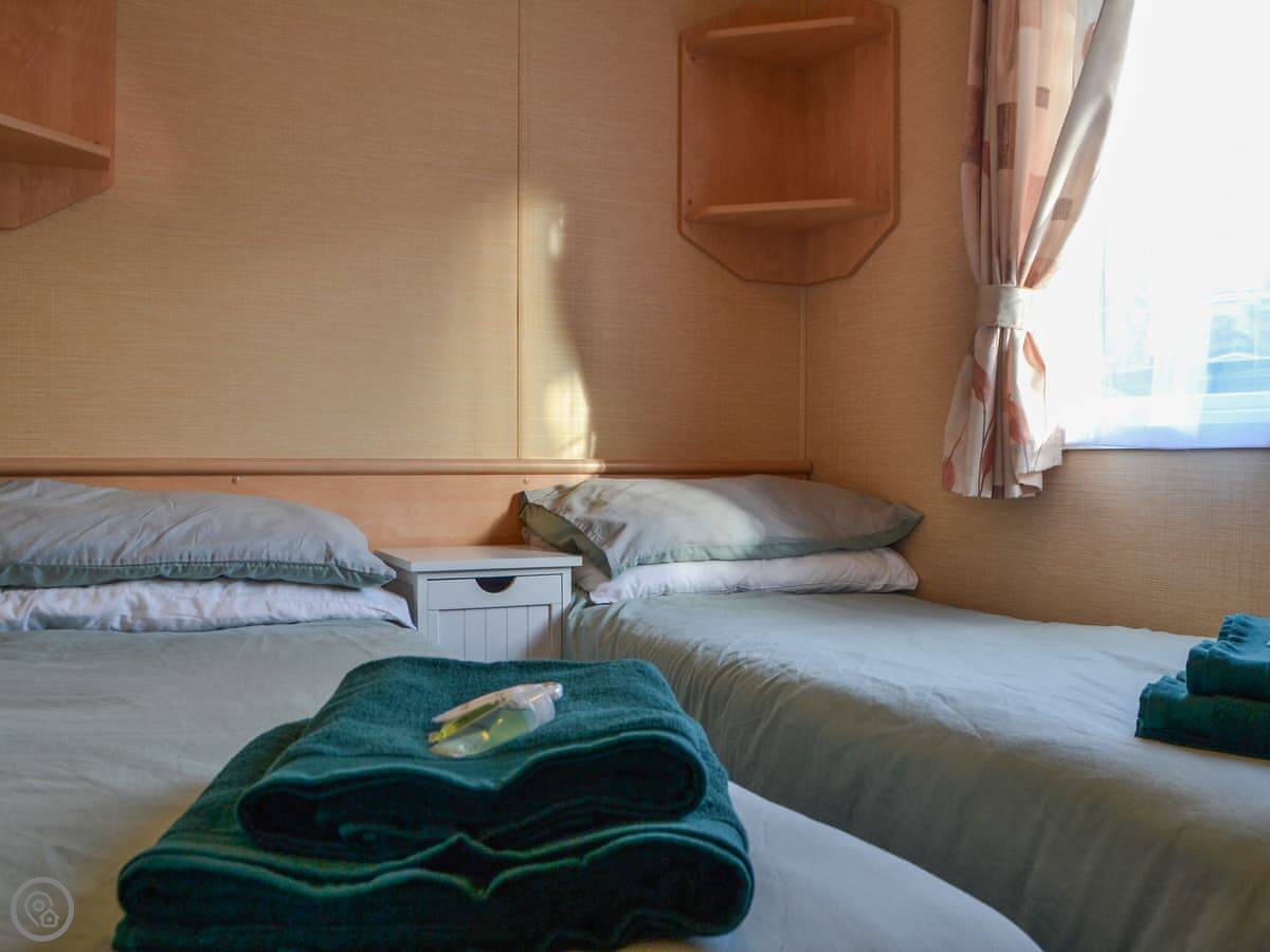 The open plan living room, kitchen and dining room are well equipped including easy seating, dining table and a modern kitchen, perfect for enjoying holiday feasts. A Smart TV and gas fire create a relaxing space in the evening. The master bedroom has a double bed and plenty of storage space. There’s also two twin bedrooms and a family shower room. The caravan occupies a lovely plot on a mainly owner-occupied site with private decking and glass balustrade for unobstructed views. It comes with chairs and table on the patio, ideal for al-fresco dining and a cold beer in the sun after a day of sightseeing. You have private parking for one car to the side and you can bring your dog along too!