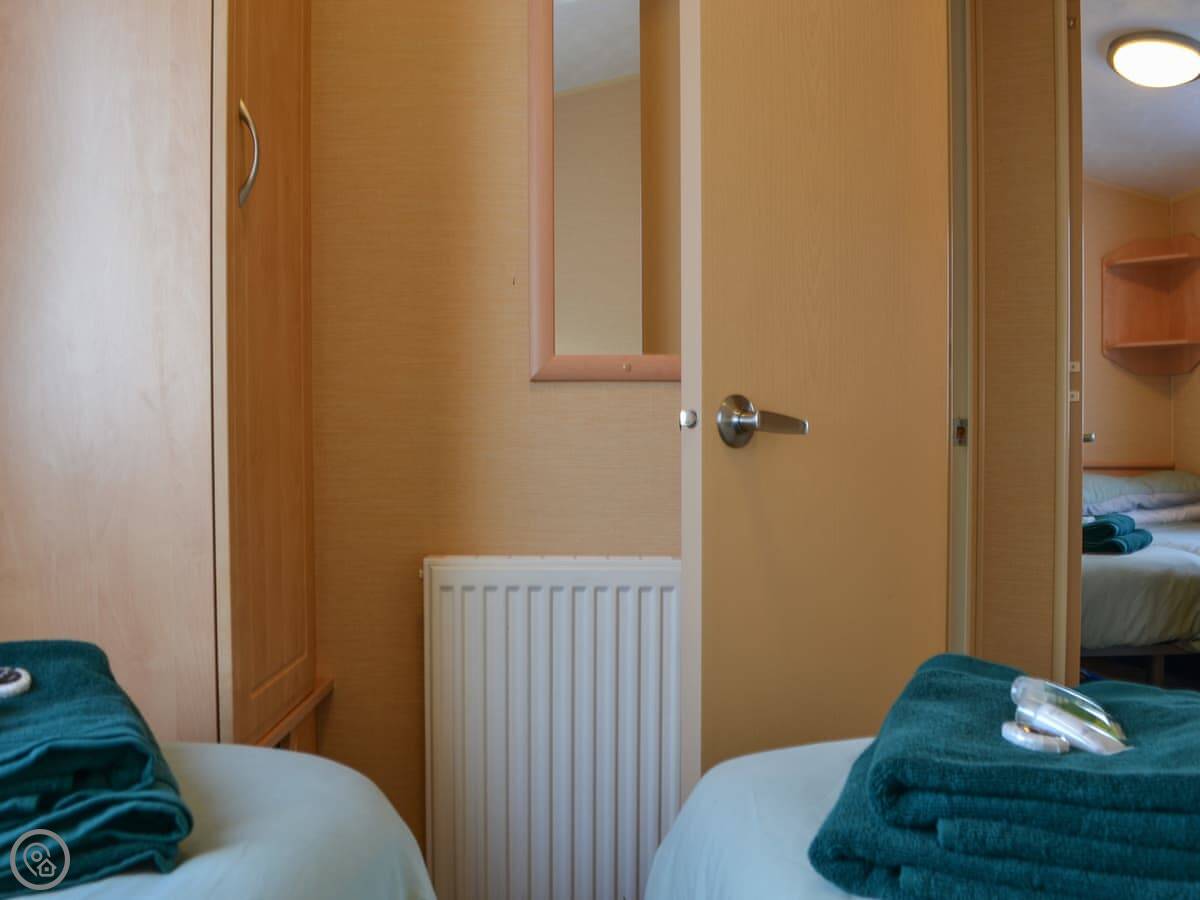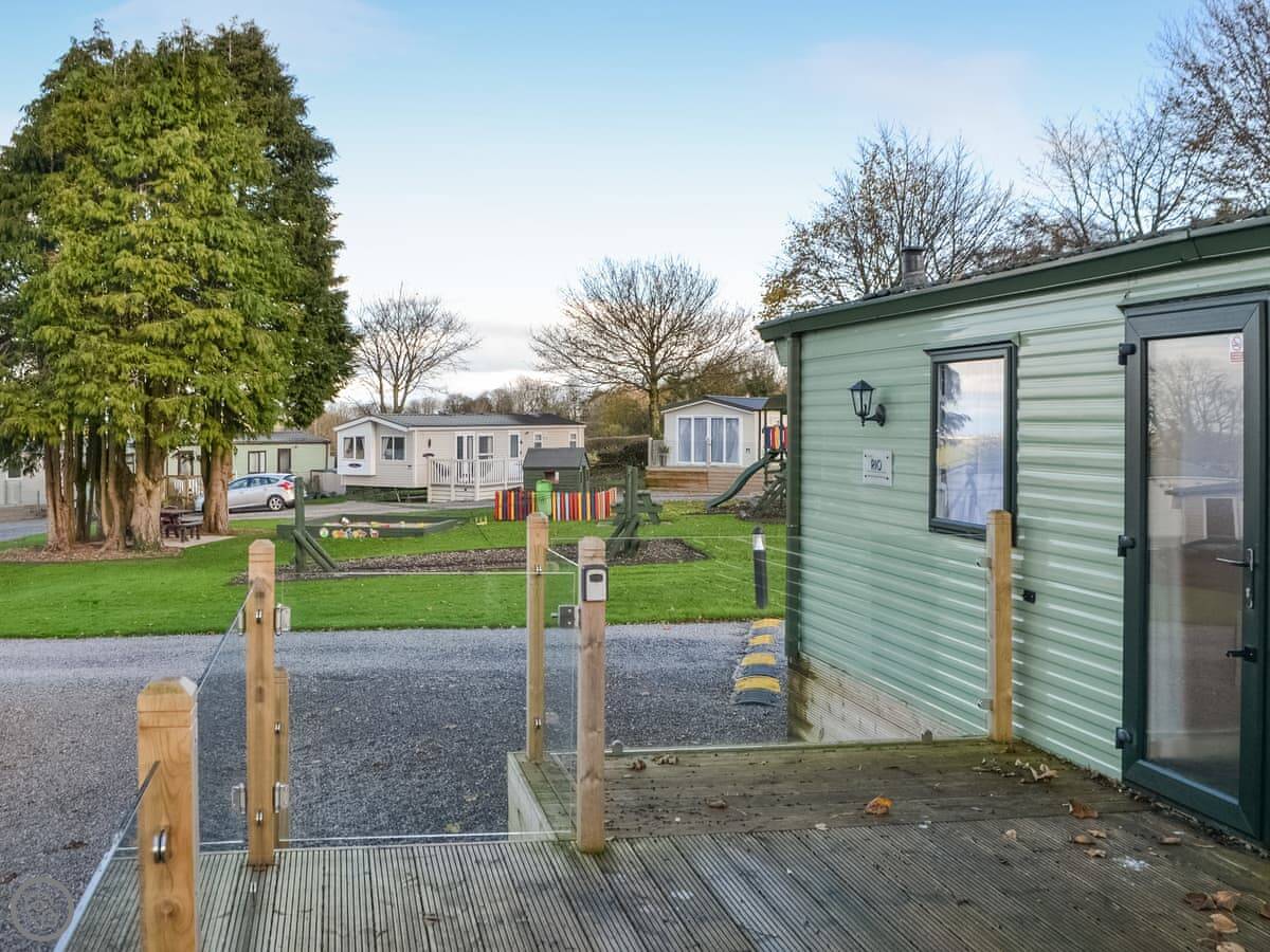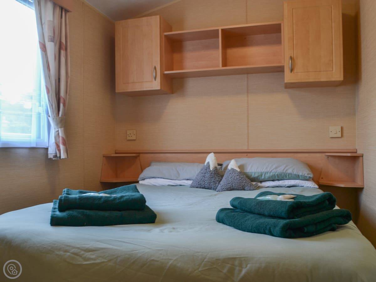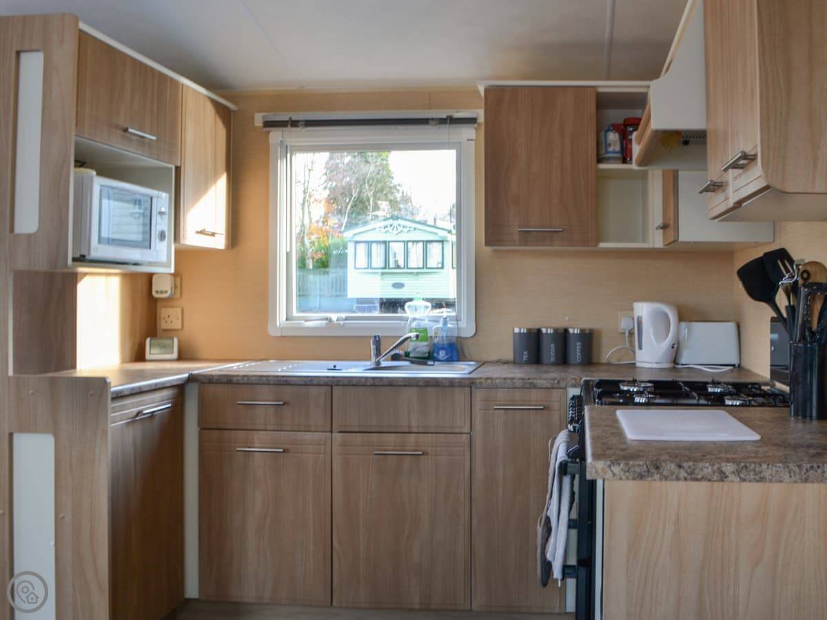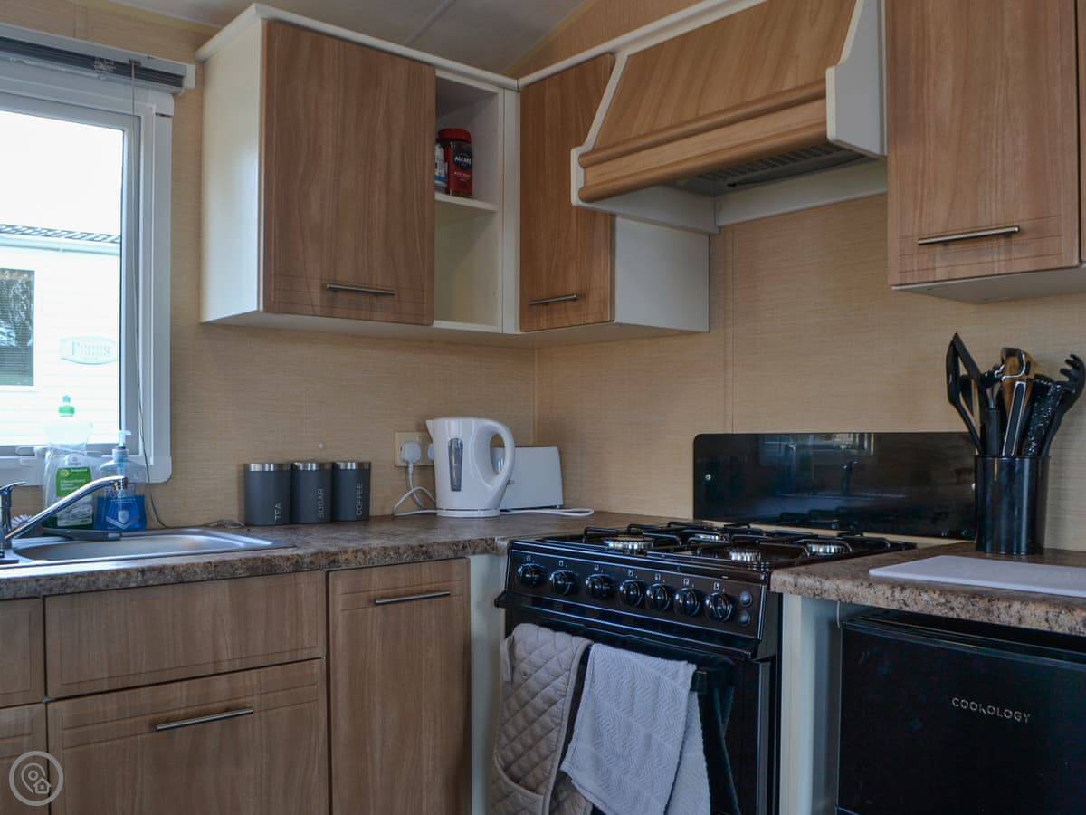 The open plan living room, kitchen and dining room are well equipped including easy seating, dining table and a modern kitchen, perfect for enjoying holiday feasts. A Smart TV and gas fire create a relaxing space in the evening. The master bedroom has a double bed and plenty of storage space. There’s also two twin bedrooms and a family shower room. The caravan occupies a lovely plot on a mainly owner-occupied site with private decking and glass balustrade for unobstructed views. It comes with chairs and table on the patio, ideal for al-fresco dining and a cold beer in the sun after a day of sightseeing. You have private parking for one car to the side and you can bring your dog along too!