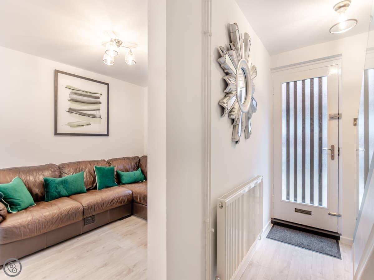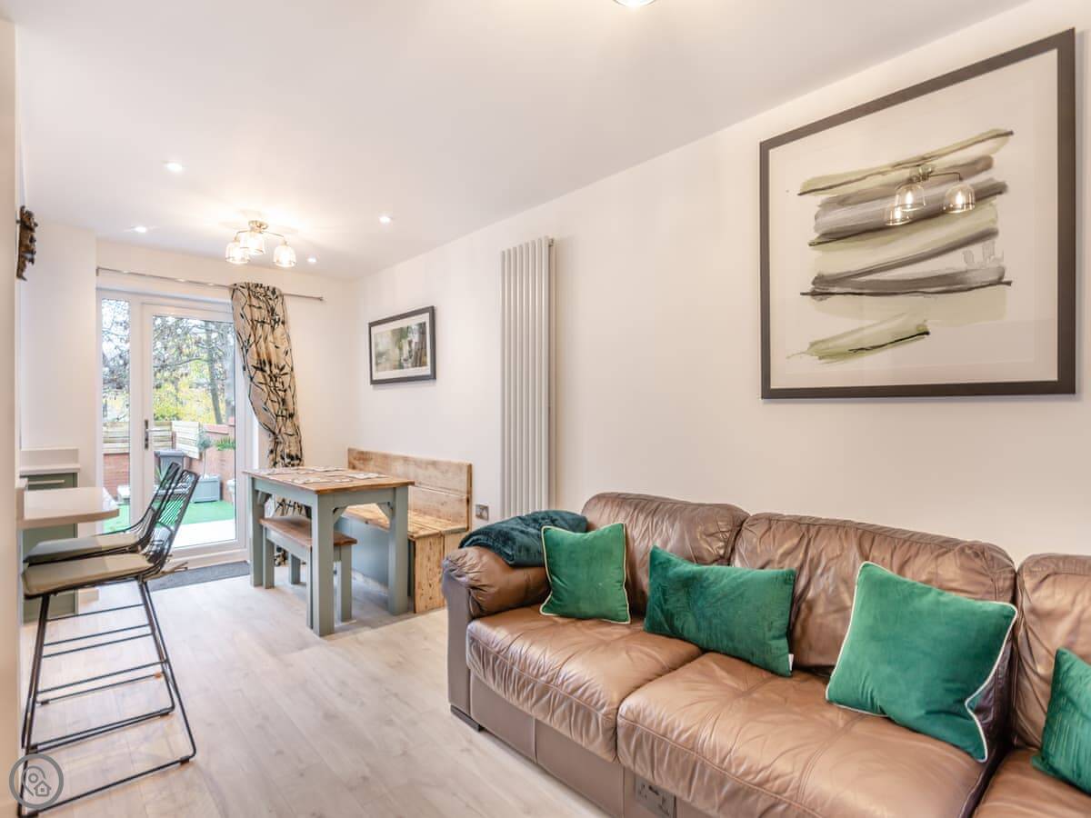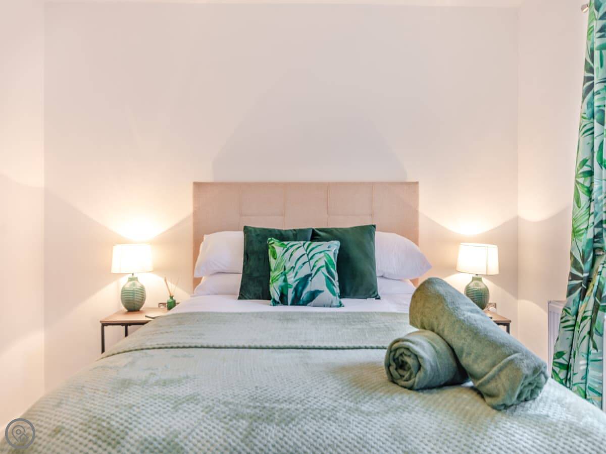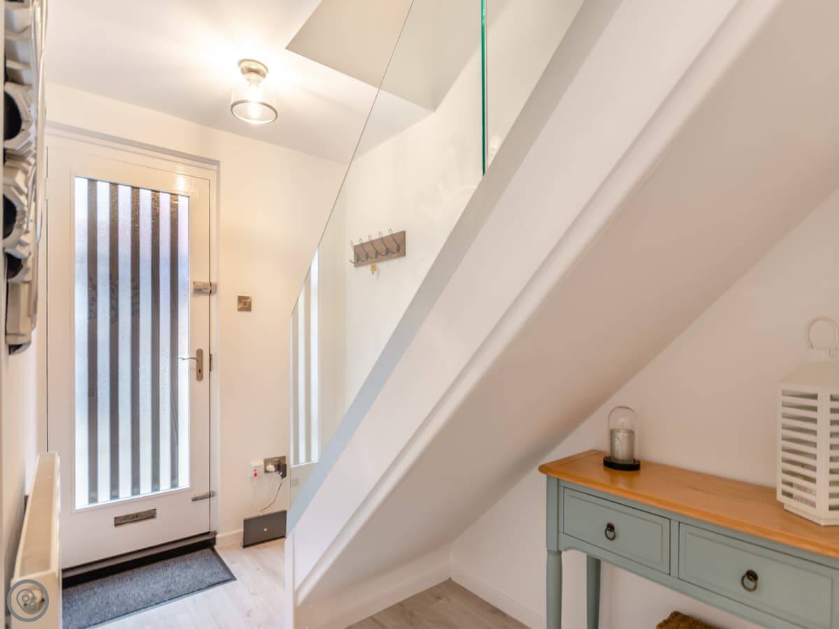 It sleeps four. Two bedrooms and one bathroom. It's got a 5 Star rating, which means it's been finished to a high standard. Everything's new and works properly. The parking is on site, which is a big help round here.
