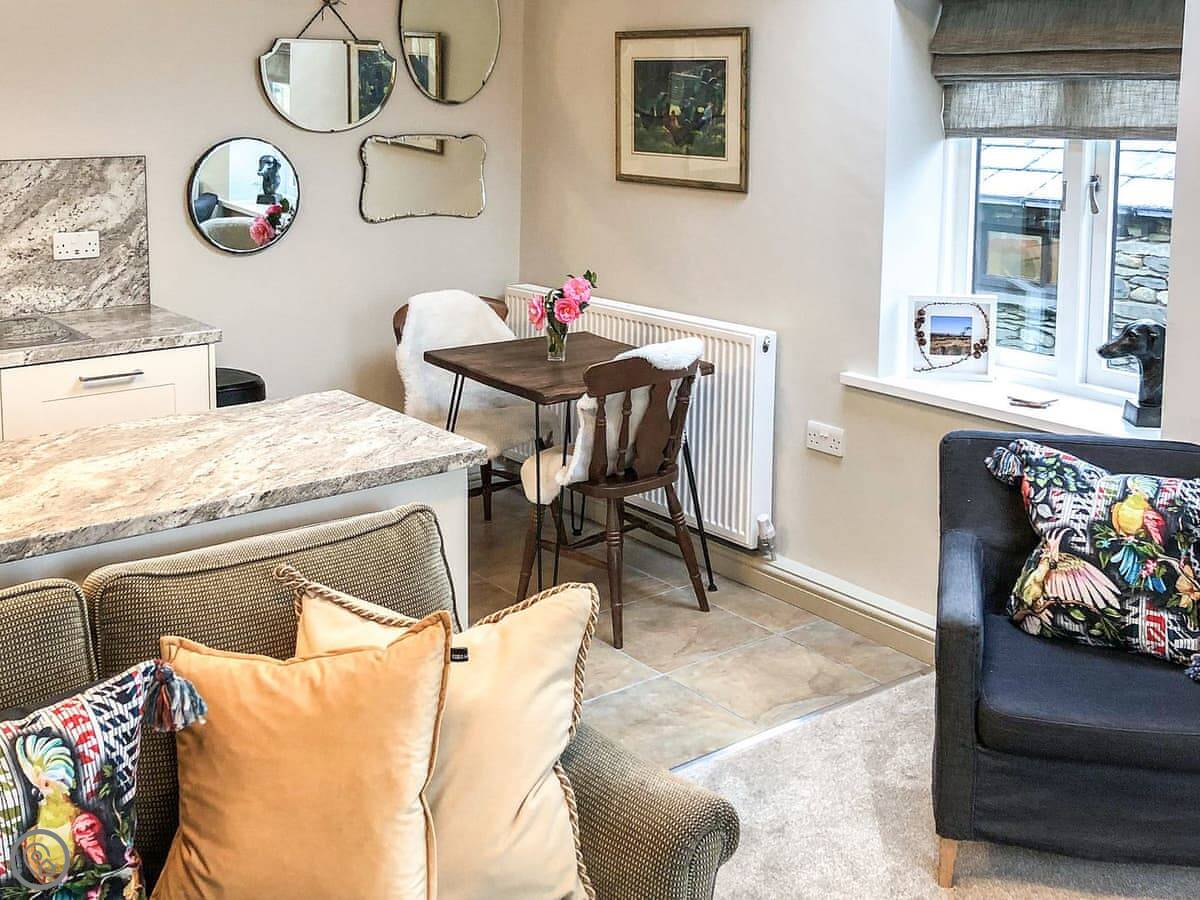 Methera Cottage is up at Lowick Green. It's semi-detached and modern, built to look like the older ones here. It's for two people.