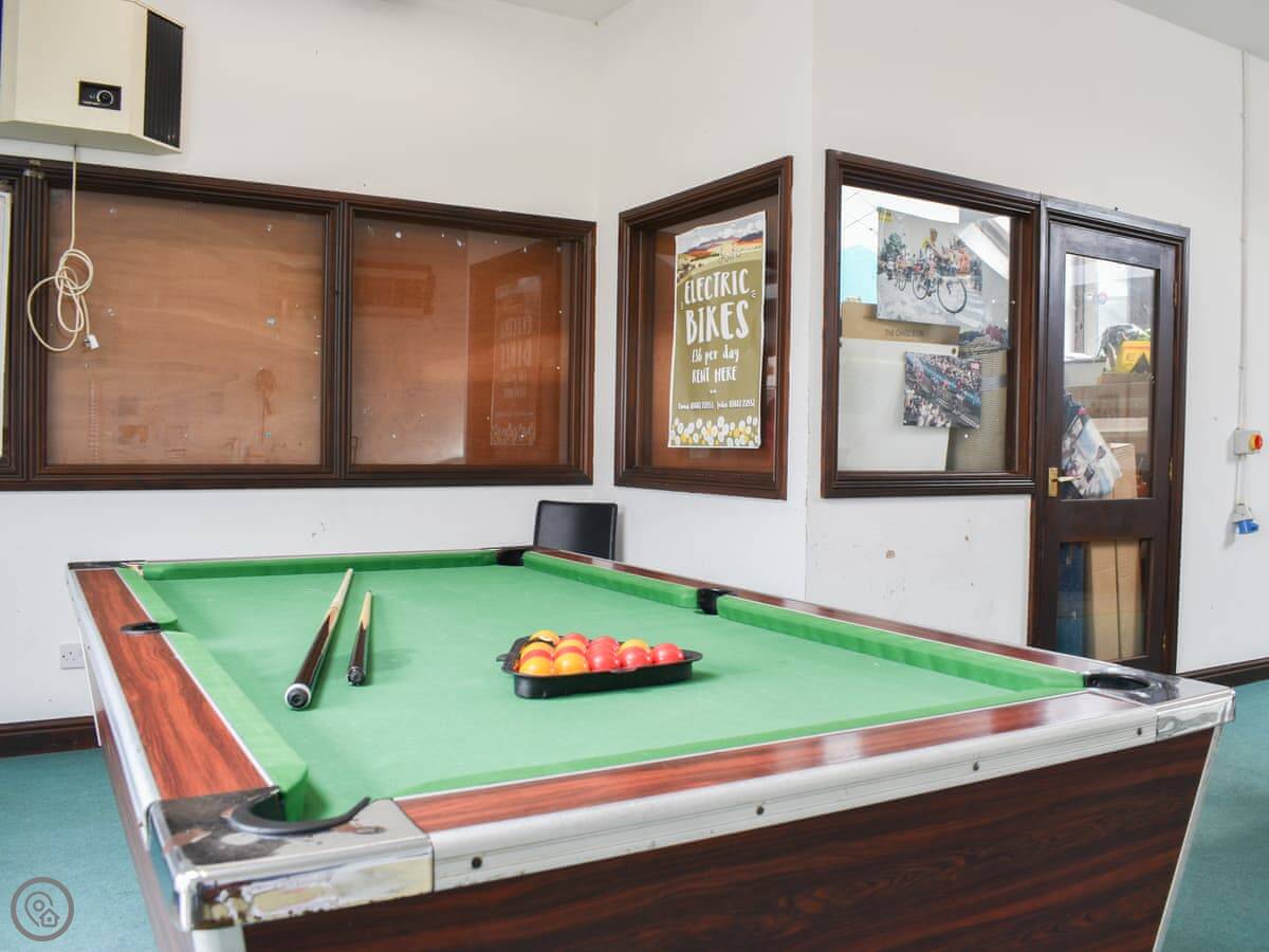 Outside, there's a flagged area with a table and chairs. There are also some stone outbuildings you can use for bikes or walking gear. Your pets can sleep in there if you want. You get one private parking space, and there's an electric vehicle charger.