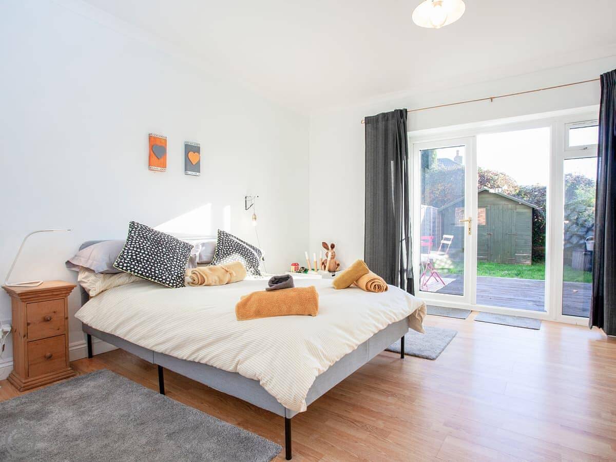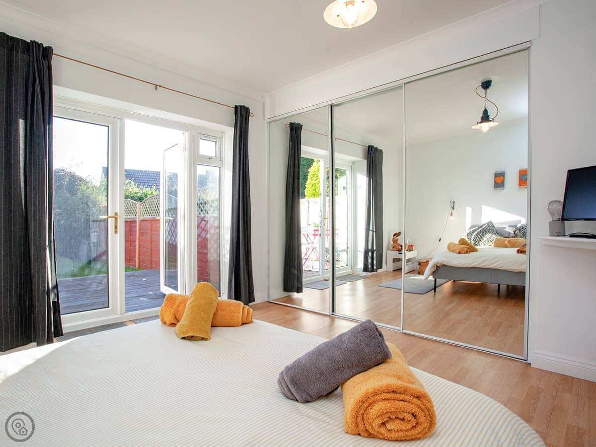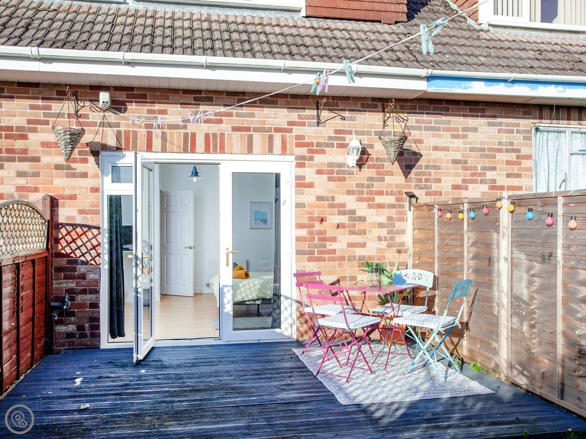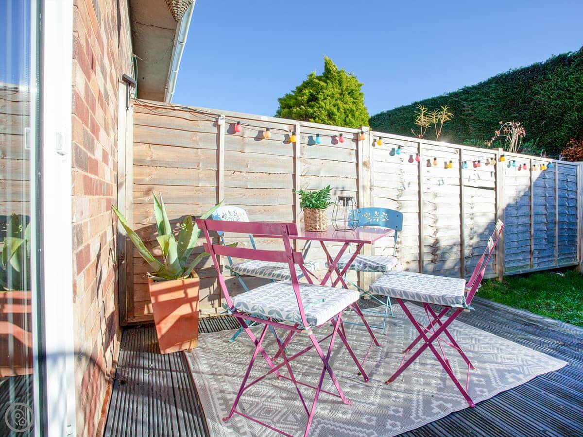 As you enter the open plan living space, it feels light, bright and spacious and there are far-reaching glimpses towards the Exe Estuary. The living space has comfortable seating and a Freeview Smart TV so guests can wind down and watch a film here after a busy day exploring the coastline. The well-equipped modern kitchen is set to impress, and the dining table and chairs provides a lovely space to enjoy a homecooked meal. Leading off the living space are two beautiful bedrooms and the family bathroom which is fitted with both a shower cubicle and a bathtub. The first bedroom has a kingsize bed and the second has a double bed and patio doors opening out into the back garden. Outside, guests will enjoy use of the private garden which has a decked area with outdoor seating and a small lawn; a great spot for enjoying your morning coffee.