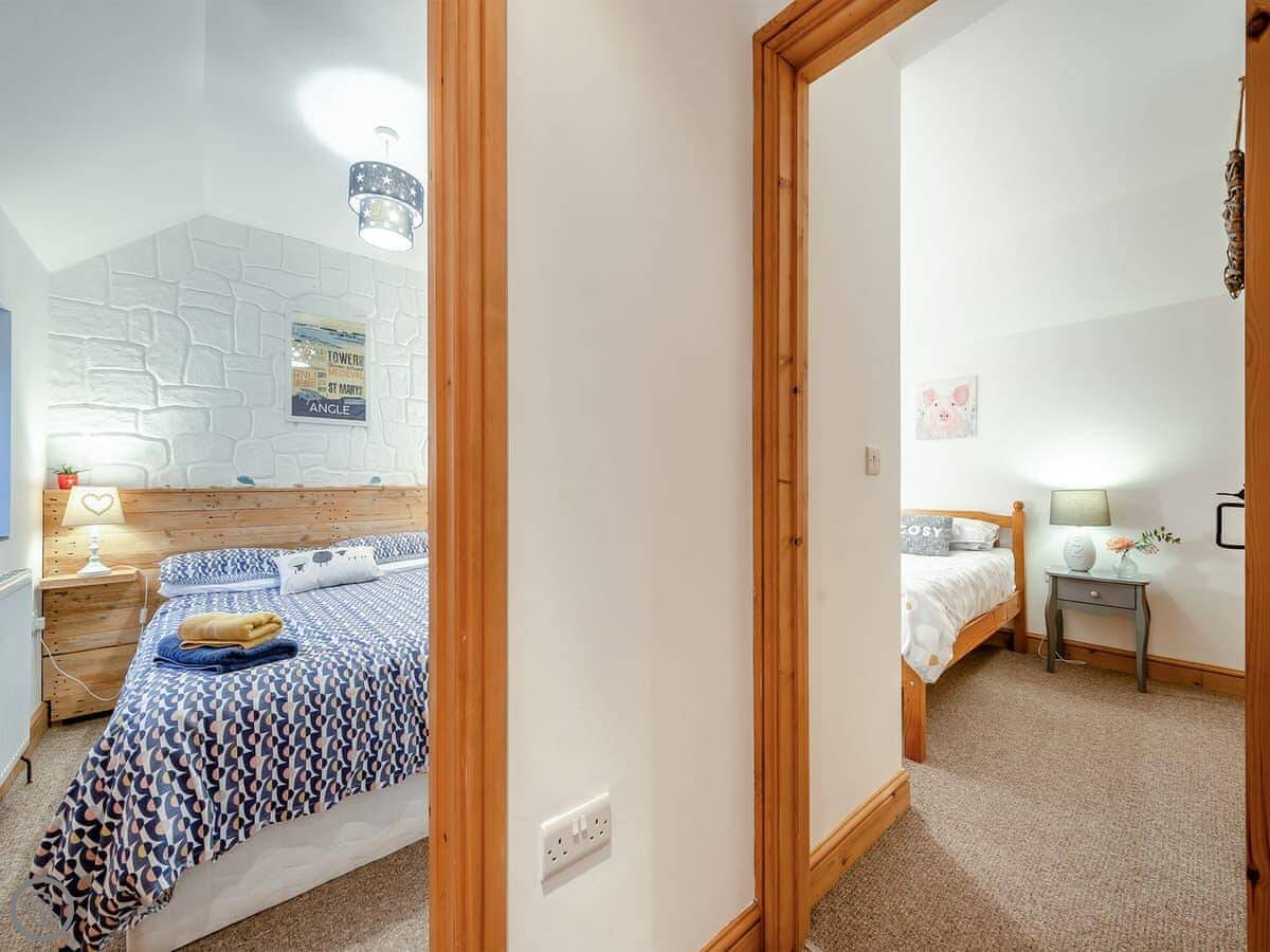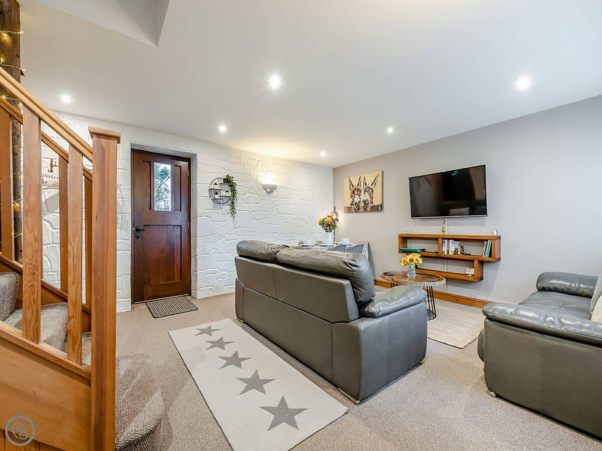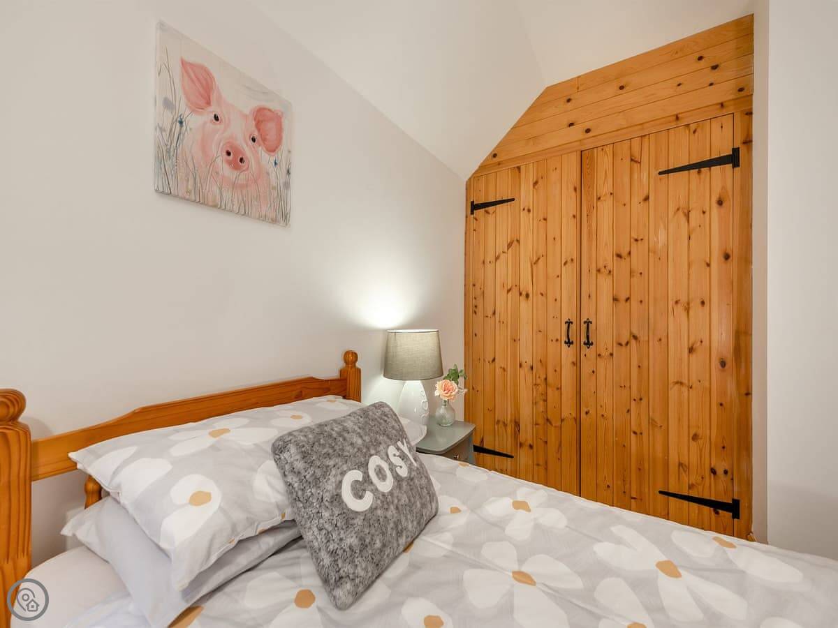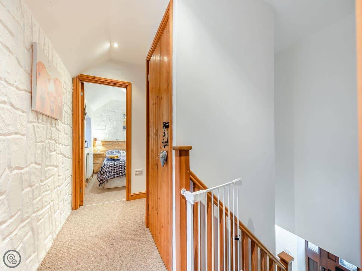 It sleeps six. There are three bedrooms and two bathrooms upstairs. The stairs are quite steep, but they're fine if you take your time. It’s got a 4 Star rating, which I think means it’s comfortable and well looked after.