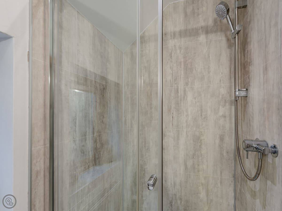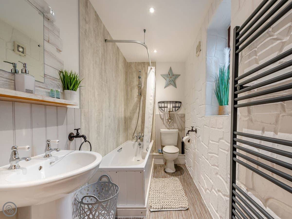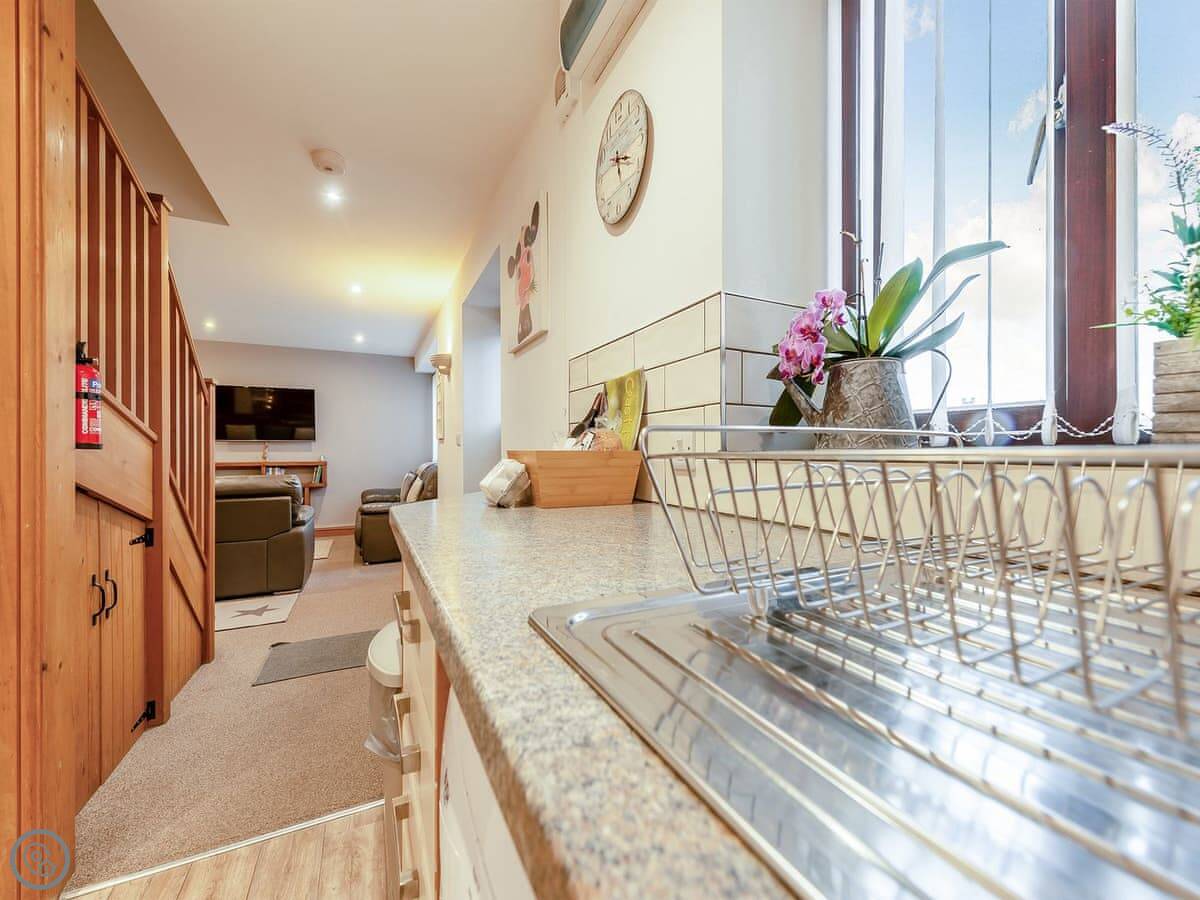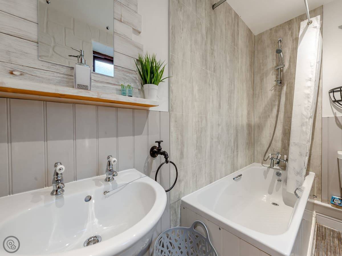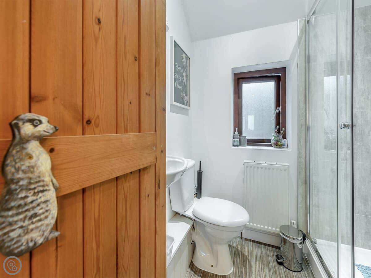 It sleeps six. There are three bedrooms and two bathrooms upstairs. The stairs are quite steep, but they're fine if you take your time. It’s got a 4 Star rating, which I think means it’s comfortable and well looked after.