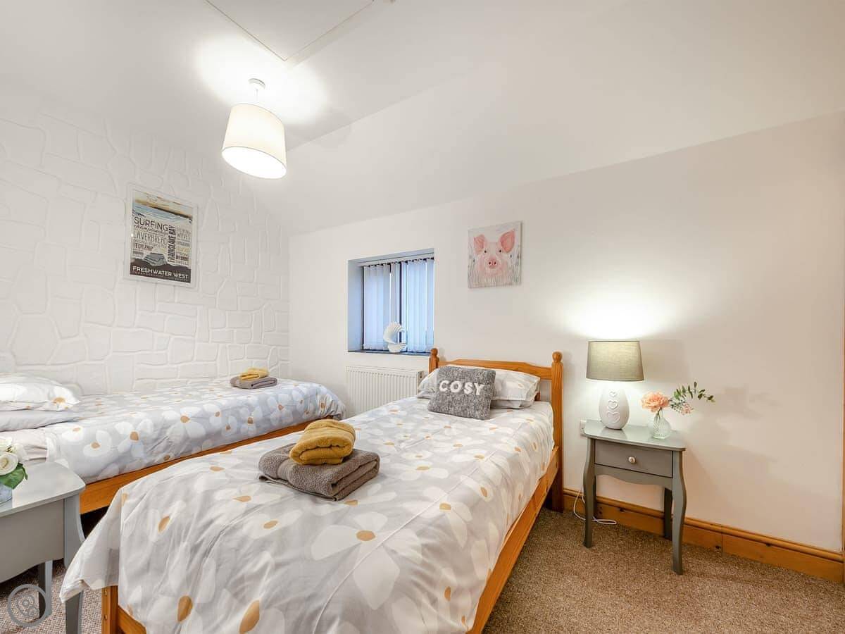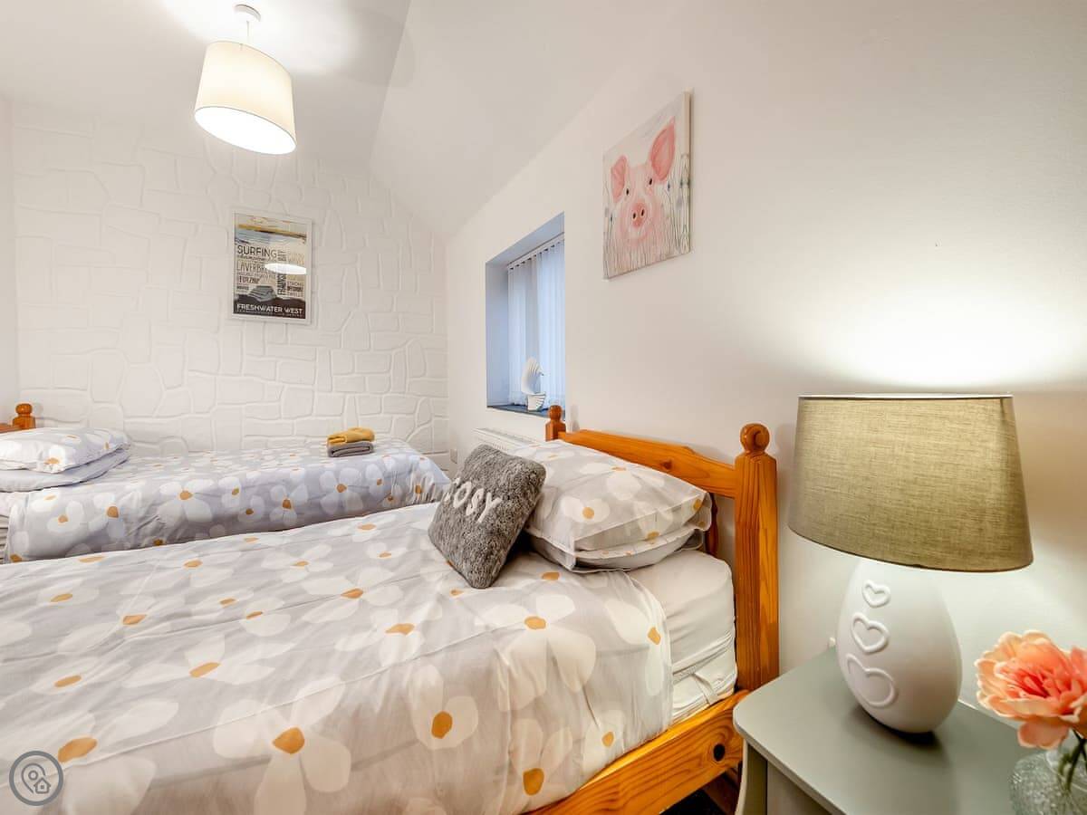 There’s a pub in the village, a couple of minutes’ walk. It’s fine for a drink. For more restaurants and shops, you’d go into Pembroke or Tenby. Tenby is about twenty minutes away.