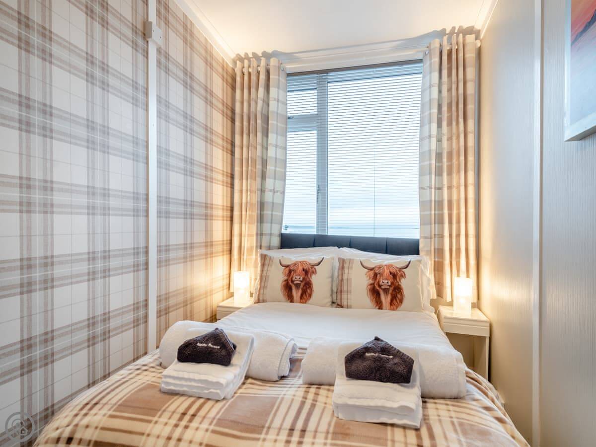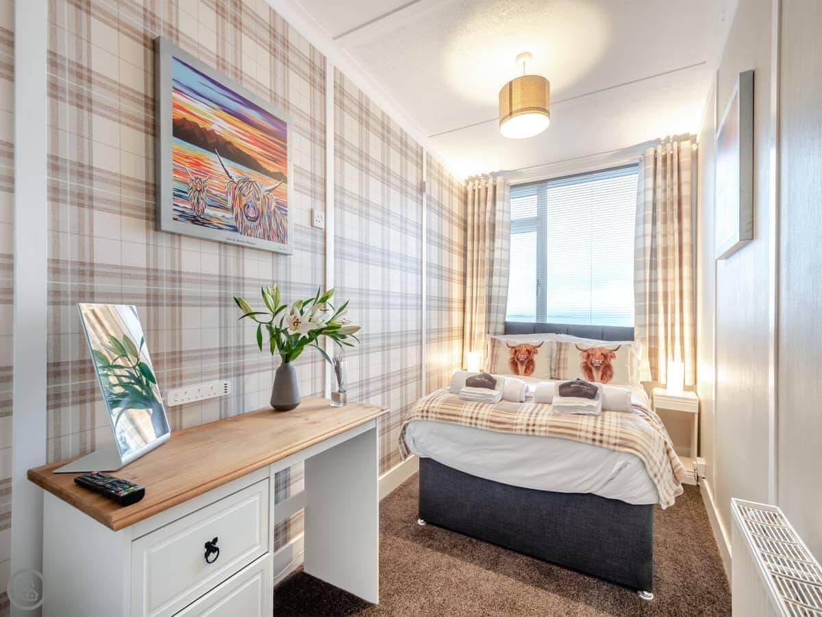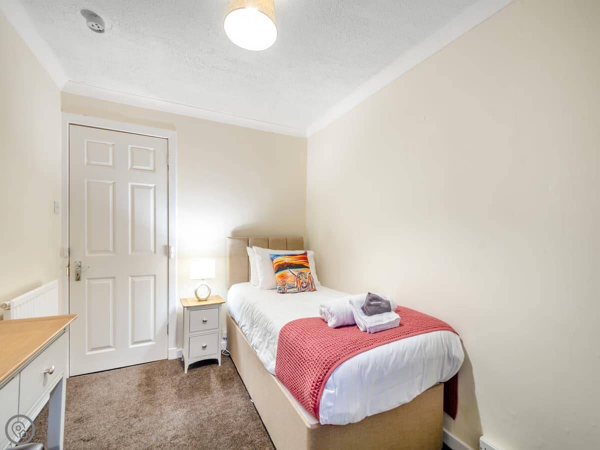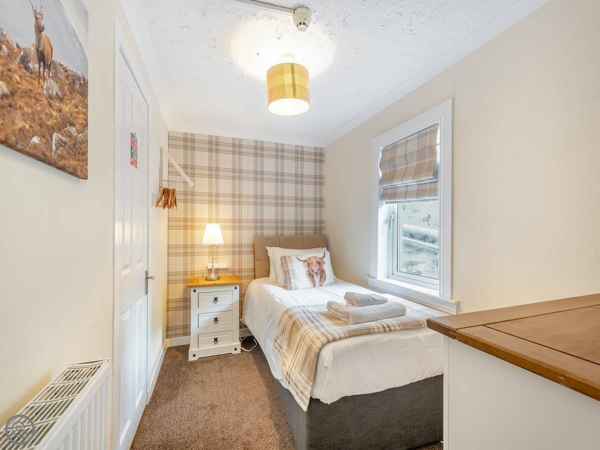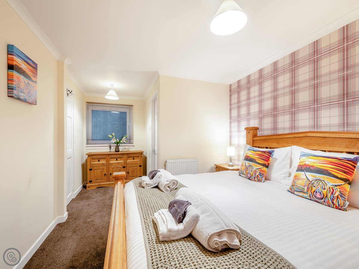 You’re about a minute’s walk from the seafront promenade. The town’s shops, pubs, and places to eat are all a short walk away. Rothesay is interesting, it’s got a bit of a faded seaside charm with palm trees and a castle ruin.
