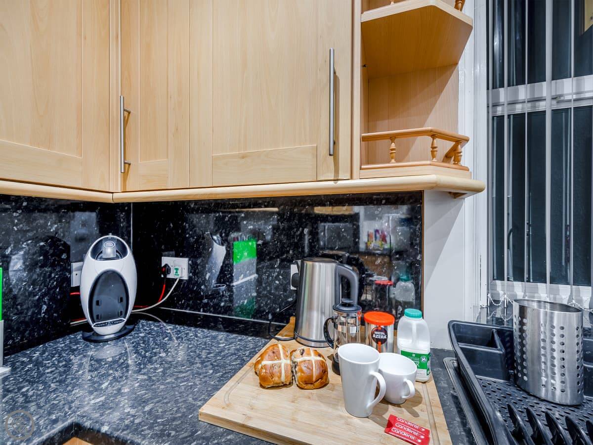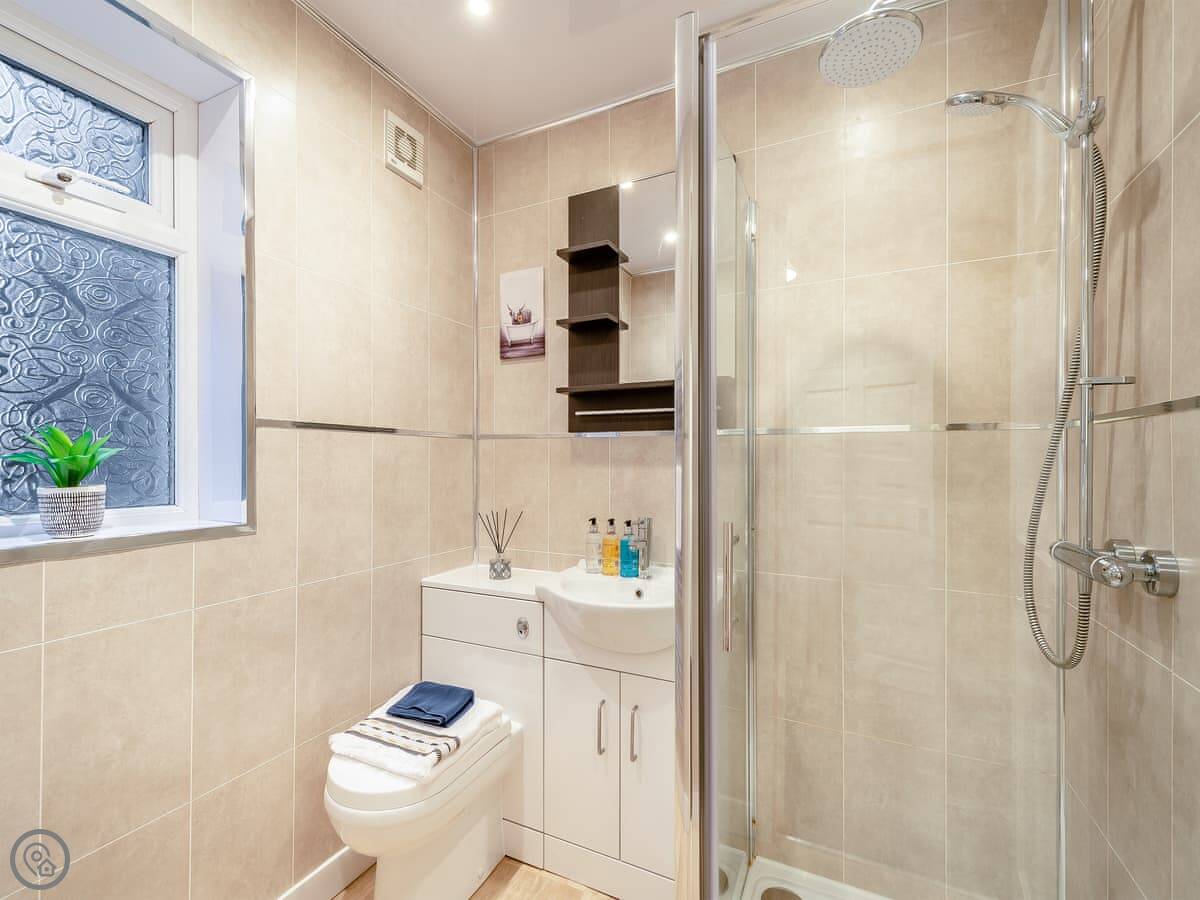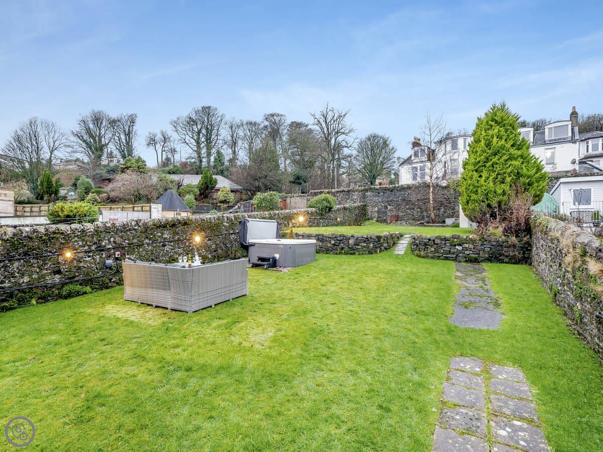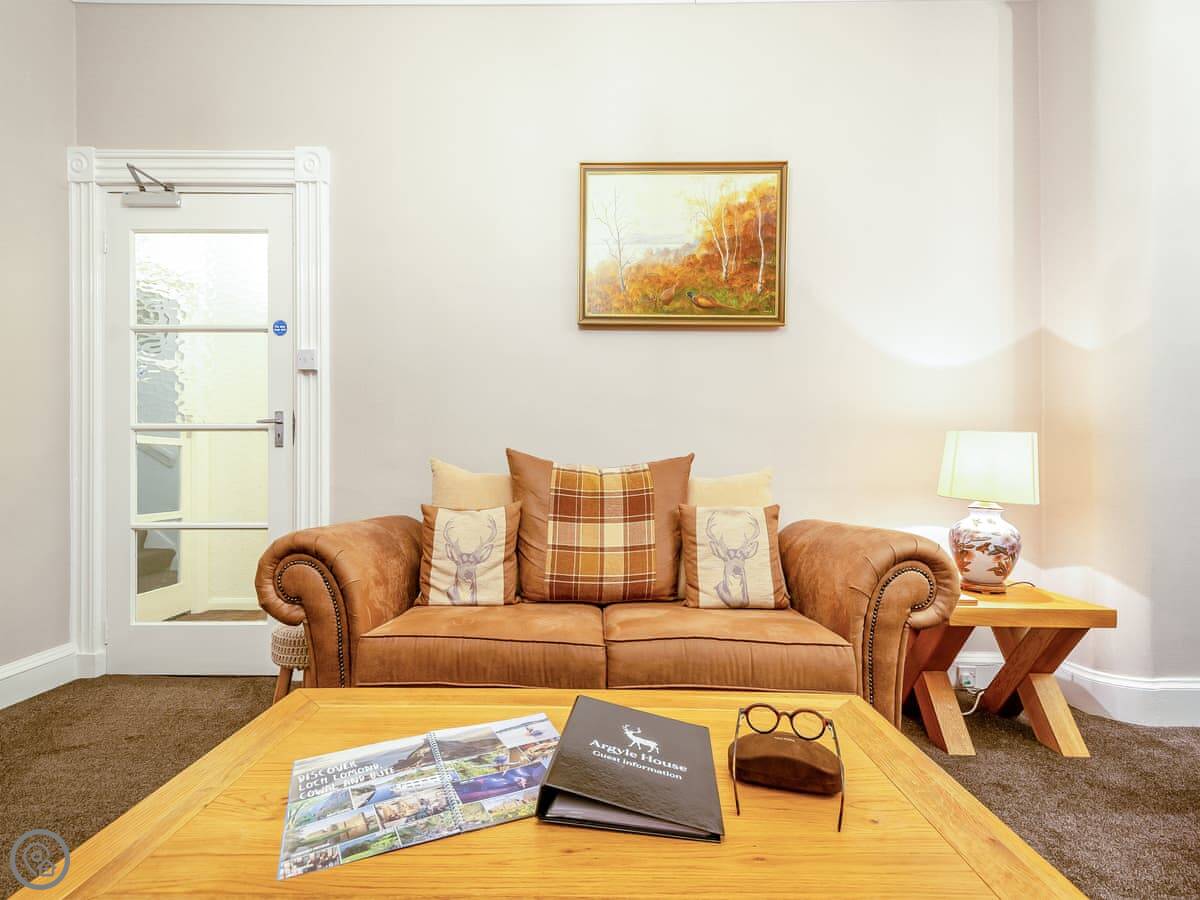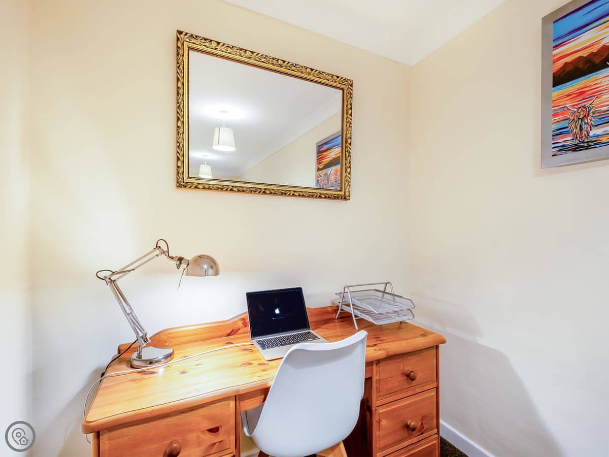 You’re about a minute’s walk from the seafront promenade. The town’s shops, pubs, and places to eat are all a short walk away. Rothesay is interesting, it’s got a bit of a faded seaside charm with palm trees and a castle ruin.