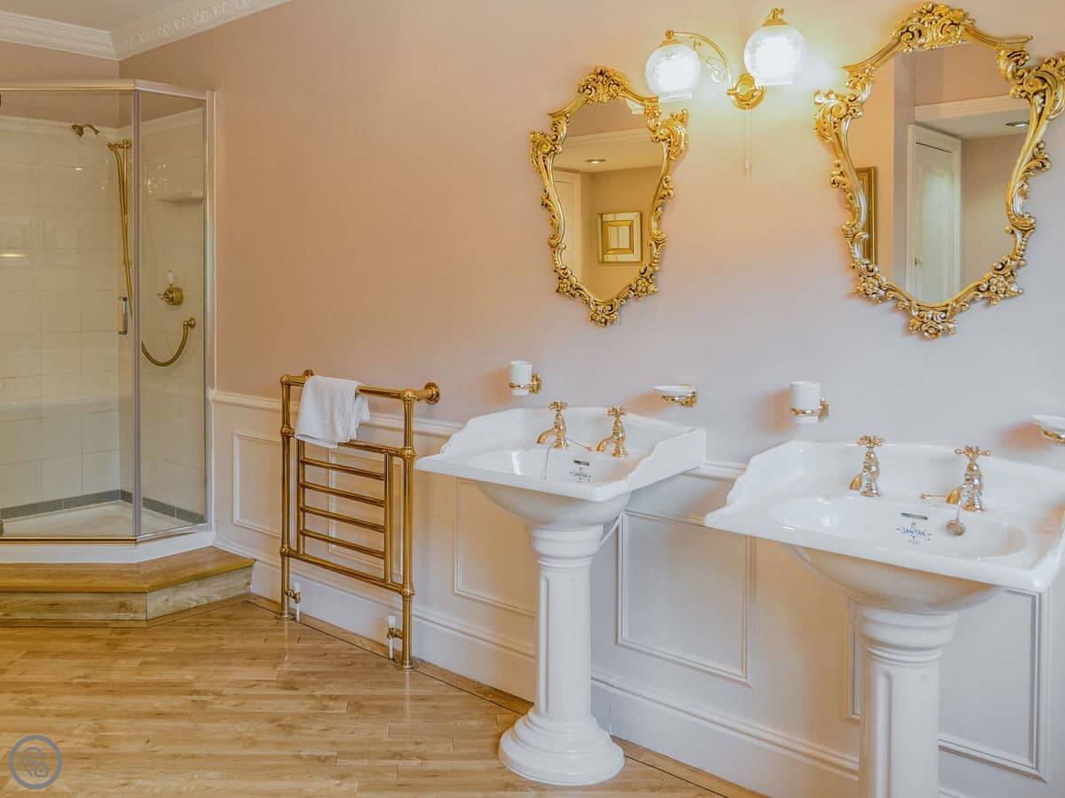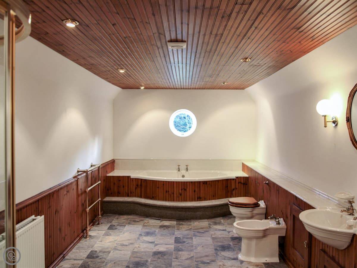 Downstairs, there's a large open-plan kitchen and dining room. It's a farmhouse kitchen, so it's well-equipped for cooking for a crowd. There are two separate living rooms as well, which is useful with a big group. One of them has a piano.