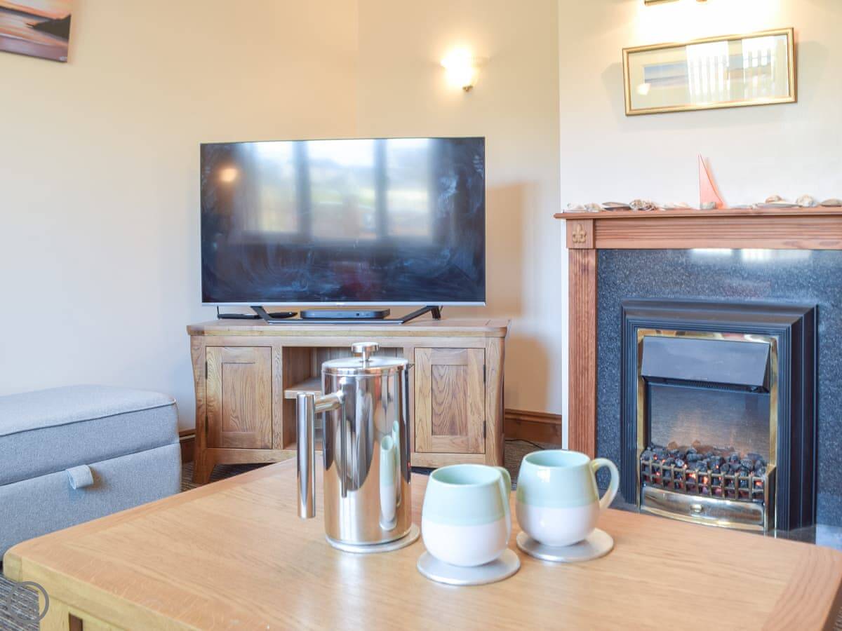 The layout is open plan downstairs, kitchen and living area together. It's a practical space. Upstairs, the bedrooms are comfortable, nothing too fancy.