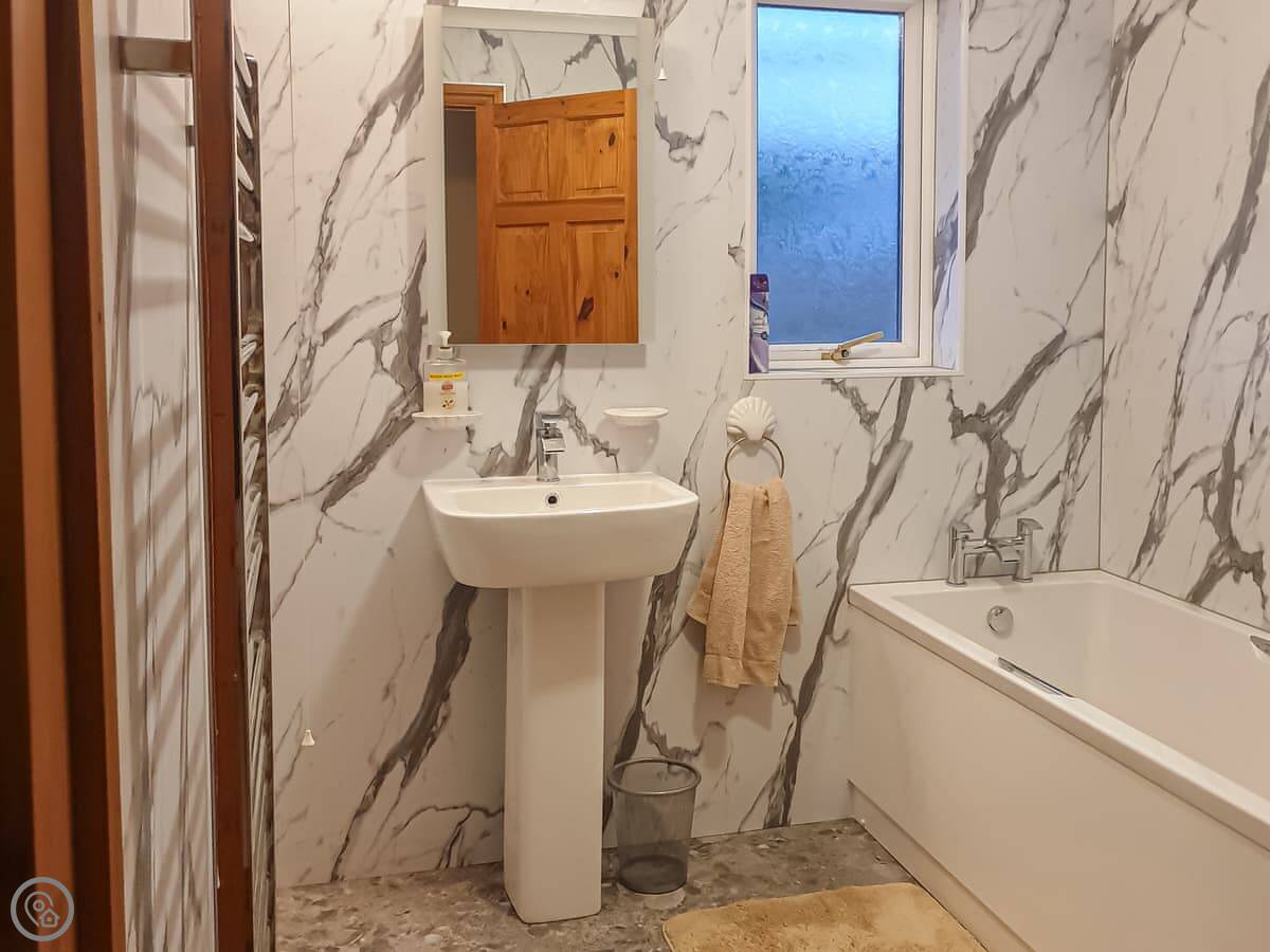 You can bring two dogs. There's parking on site. It has all the usual things: a washing machine, dishwasher, WiFi, and a TV. We provide bedding and towels. There's a cot and a highchair if you need them.