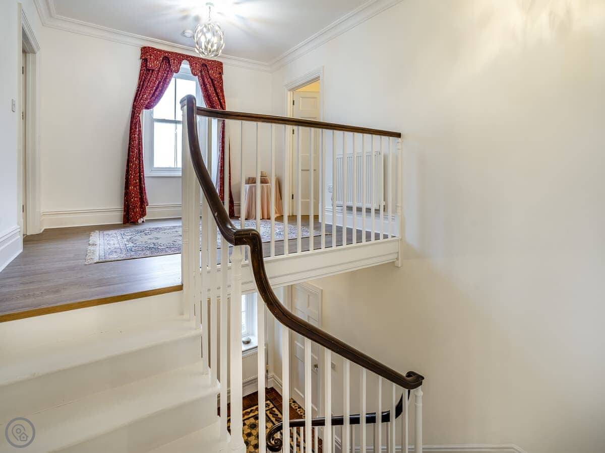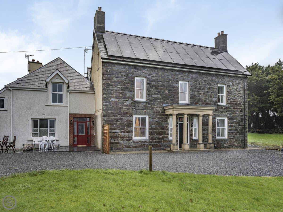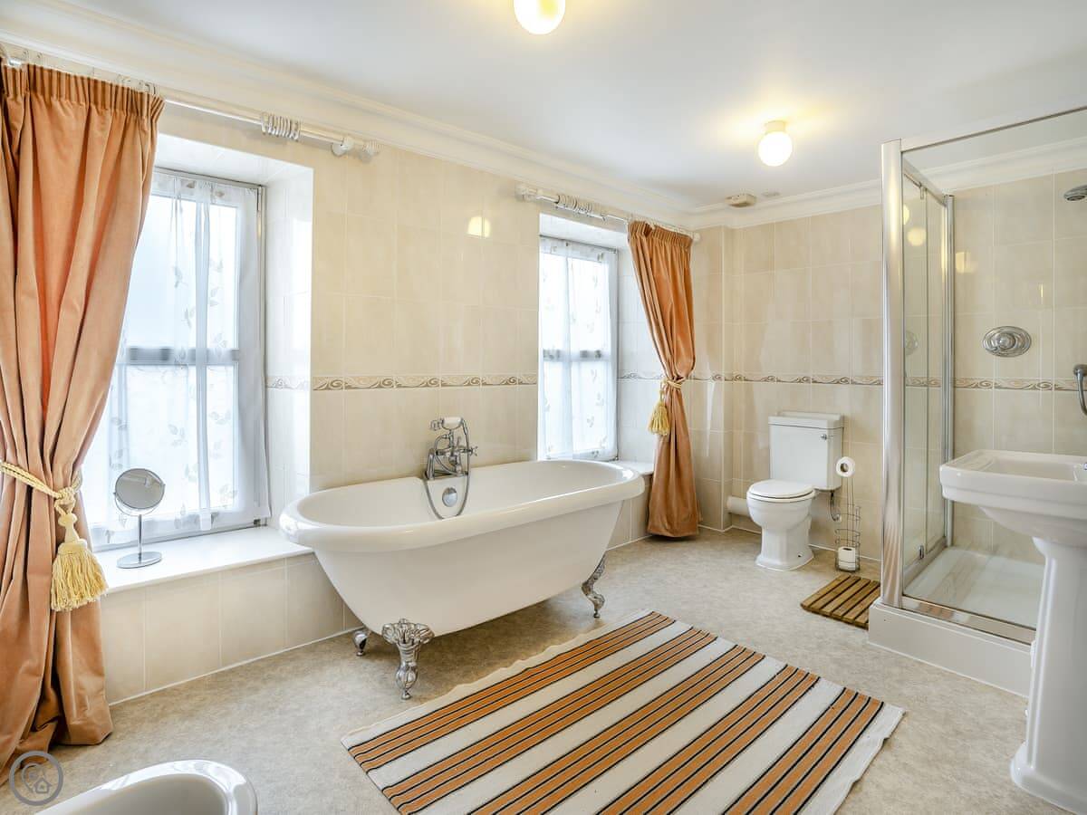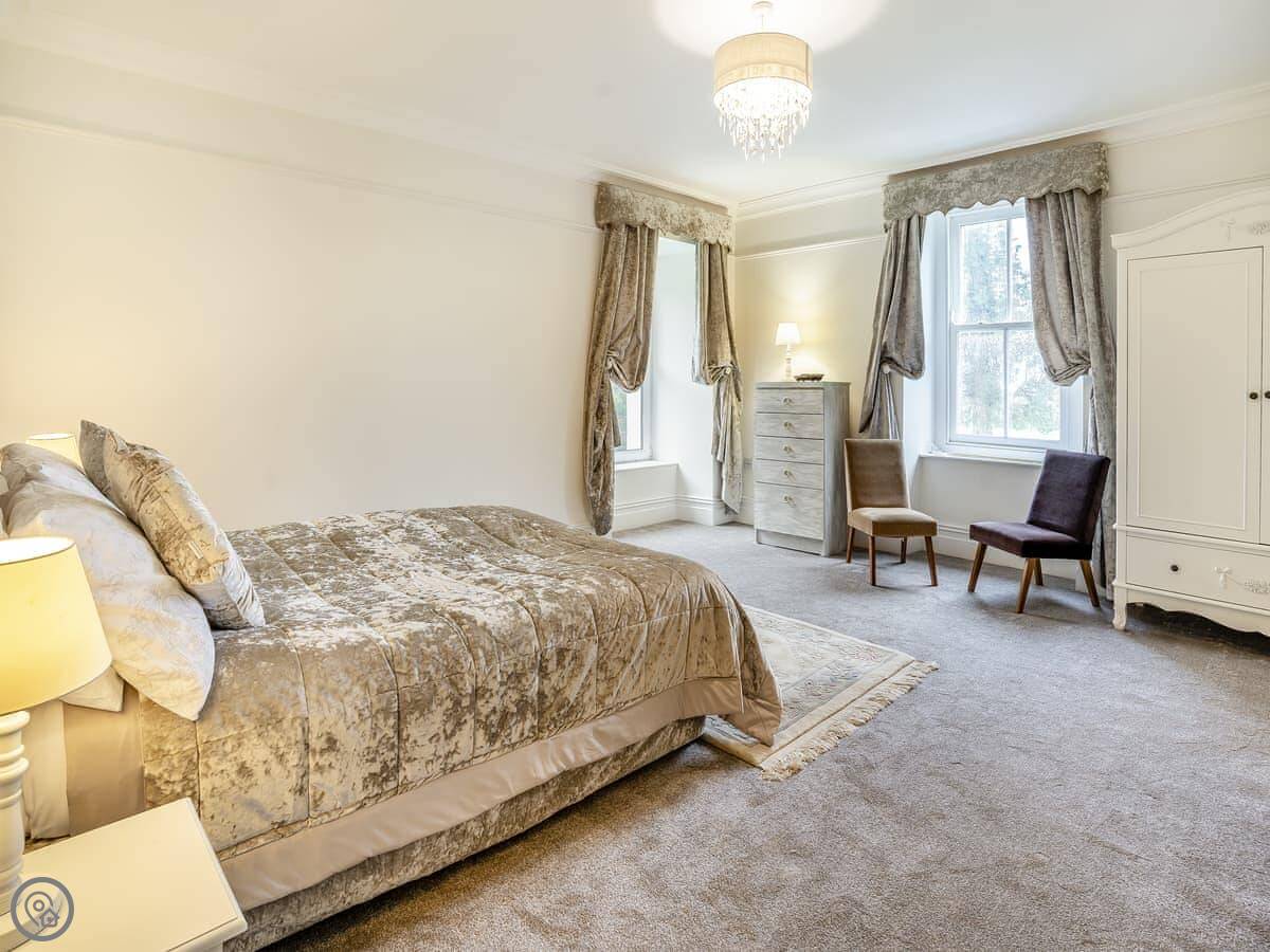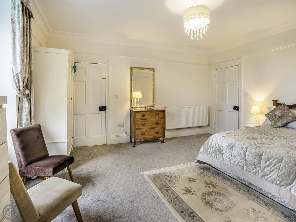 Brynog Mansion Apartment is in Ystrad Aeron, up a track from the village. It's on the first floor of a big old house. You get two bedrooms and two bathrooms, which is useful if two couples are sharing.