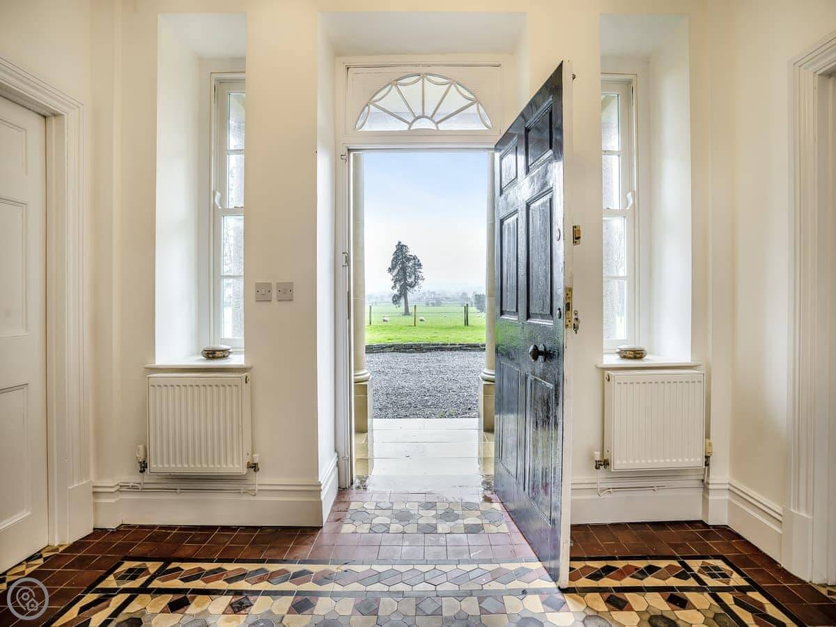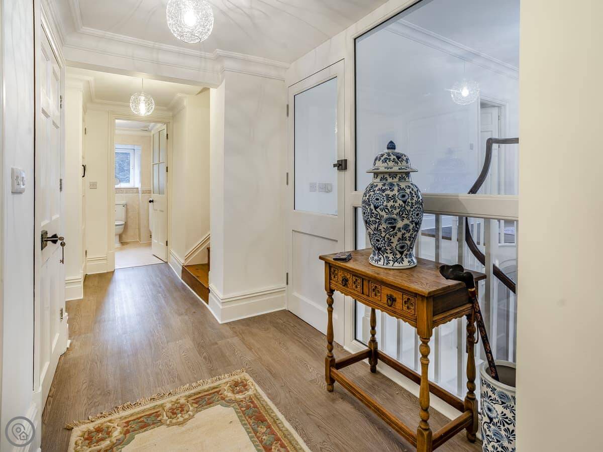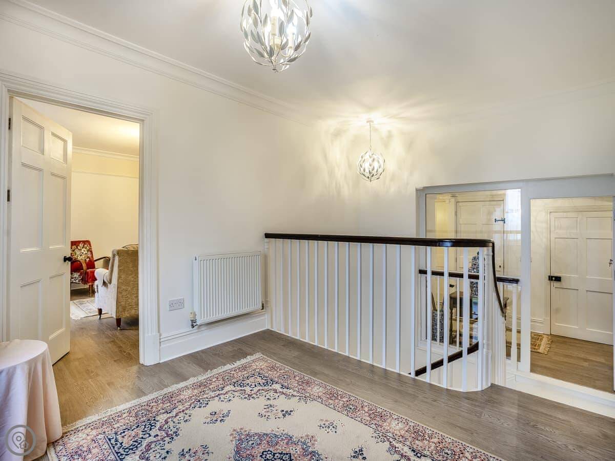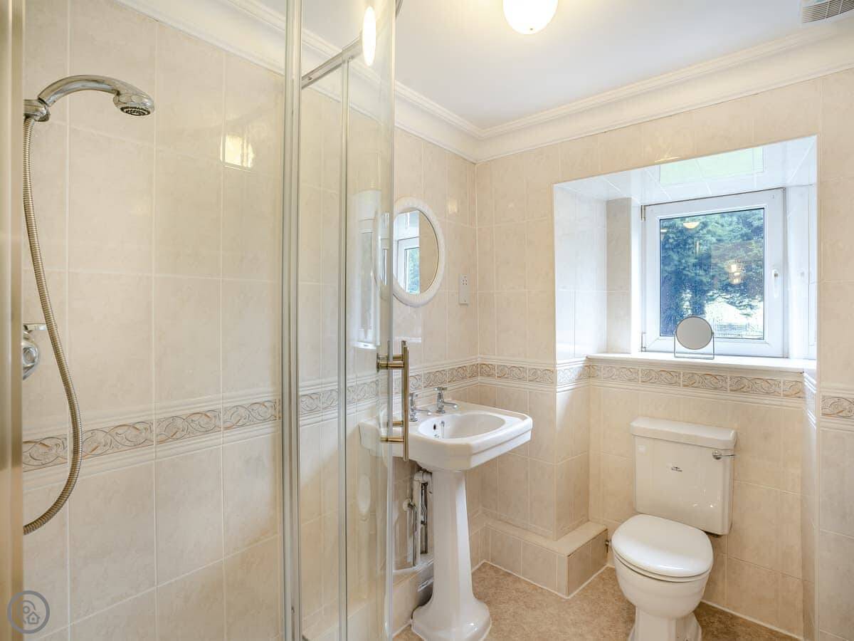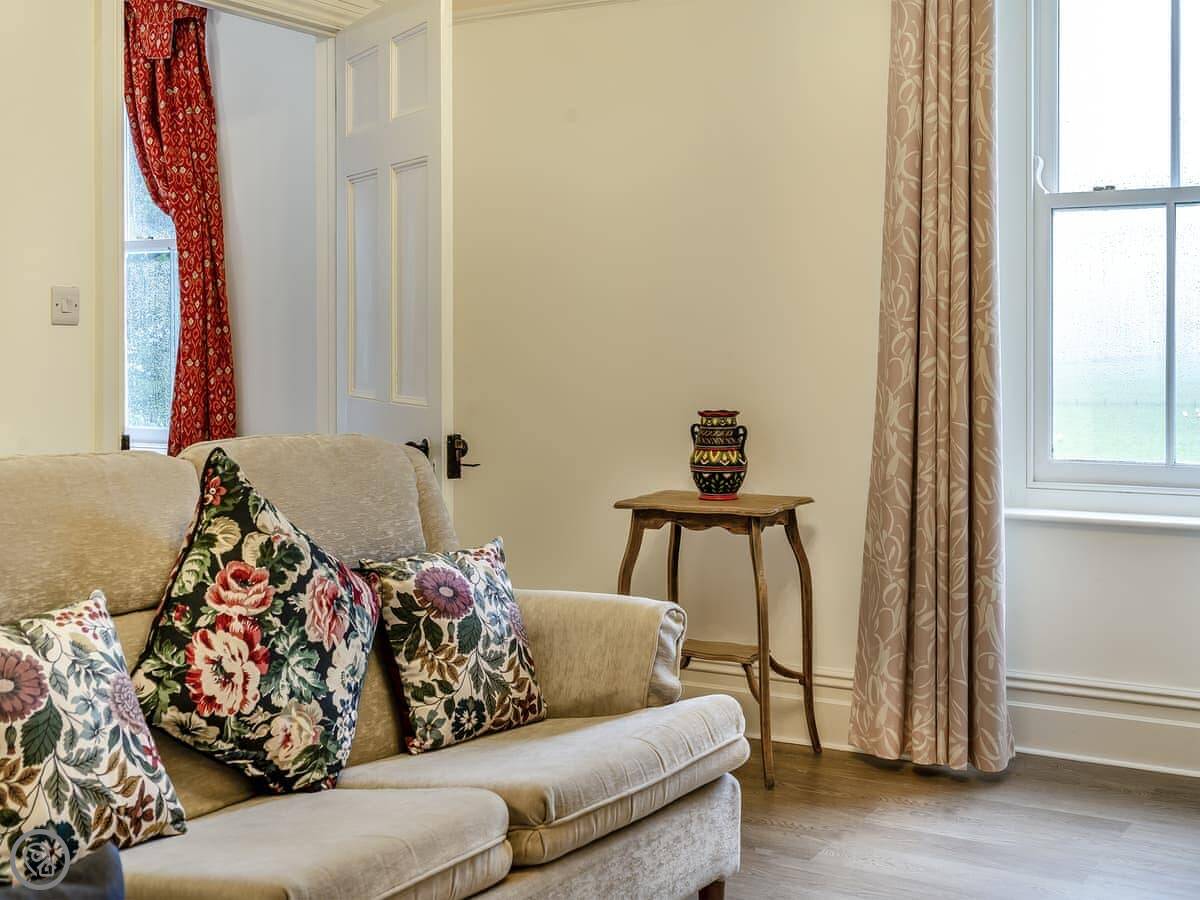 Brynog Mansion Apartment is in Ystrad Aeron, up a track from the village. It's on the first floor of a big old house. You get two bedrooms and two bathrooms, which is useful if two couples are sharing.