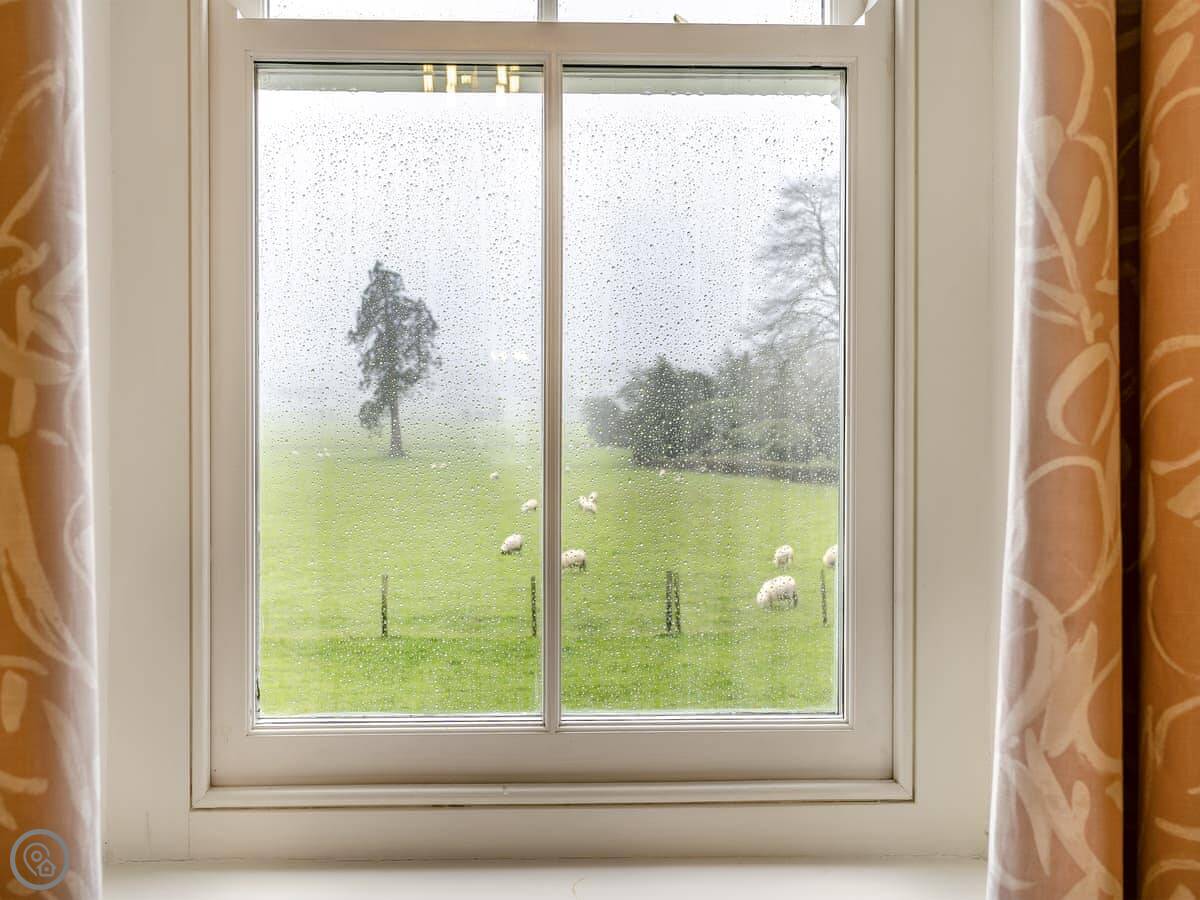 It's a 4 Star place, so it's comfortable and well looked after. The main thing is the view. The windows look straight down the Aeron Valley. It's just fields and trees. Dylan Thomas said this was the most beautiful valley in Wales, and you can see why he thought that.