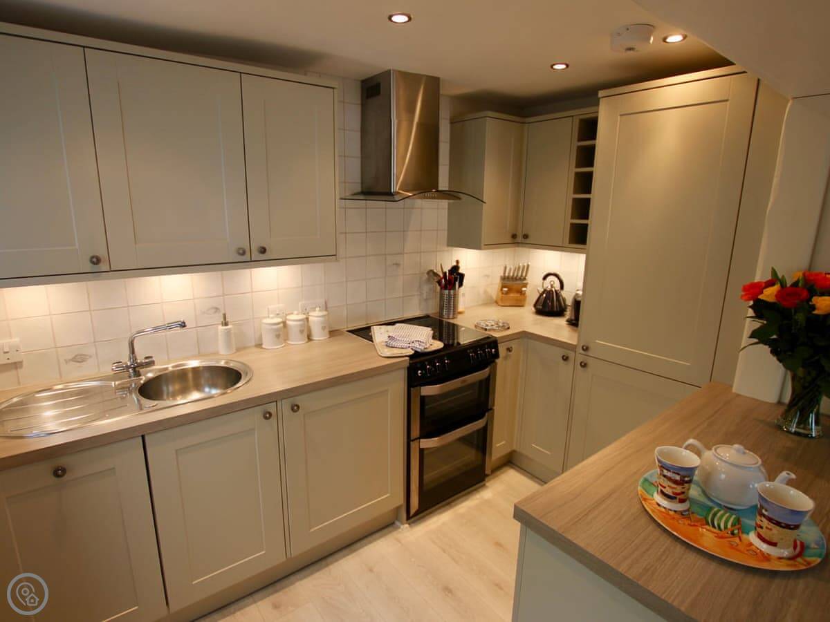 The wonderfully named The Shell Seekers Cottage offers delightful character with tasteful décor throughout. The beamed and white-walled kitchen/dining room has a beautiful fireplace, high level of equipment, including espresso coffee machine, with country cottage and seaside themes designed to make you smile – charm at its very best. The living room has super-comfy sofas and chairs, with electric fire, just perfect for relaxing, watching a movie, reading a book or planning for tomorrow’s adventure! Upstairs there are two bedrooms, a twin with nautical blues and whites, and a stunning room with a kingsize bed, promoting a sense of calm and peace. The stylish family bathroom has bath with a shower over, ideal for a long soak after a busy, event filled day of exploring. Venture outside and you will find a small, private, three tiered garden; quite magical and offering at its highest point, The Crow’s Nest, where views across the town to the estuary await. This is a perfect place to watch the star-studded sky, with the Milky Way spiralling above and to quite simply feel on top of the world.