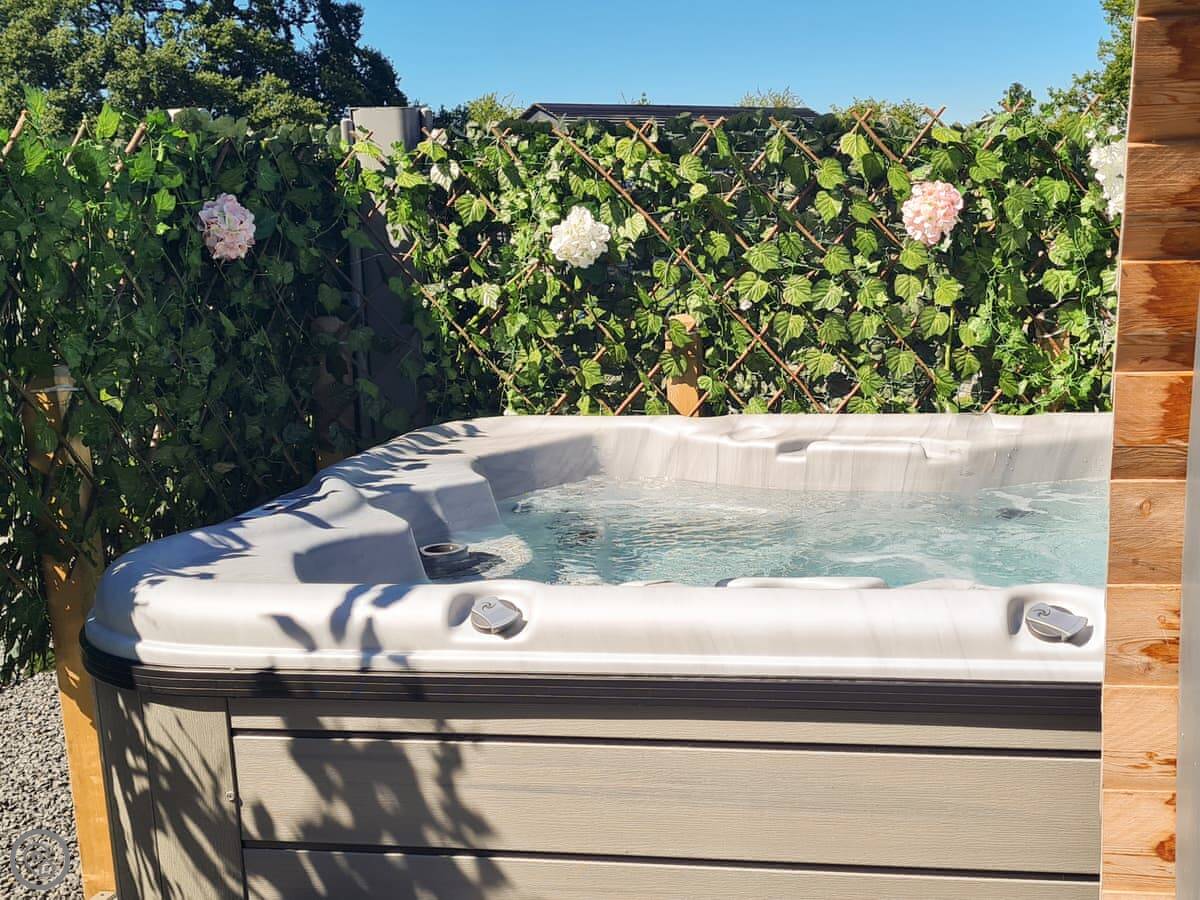 You're on a farm, so it's quiet but not silent. You'll hear sheep and the weather. The patio area outside is yours to use. There are other glamping pods and a shepherd's hut nearby, but they're spaced out for privacy.