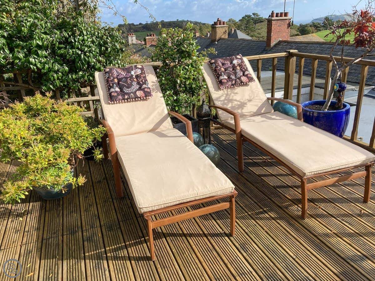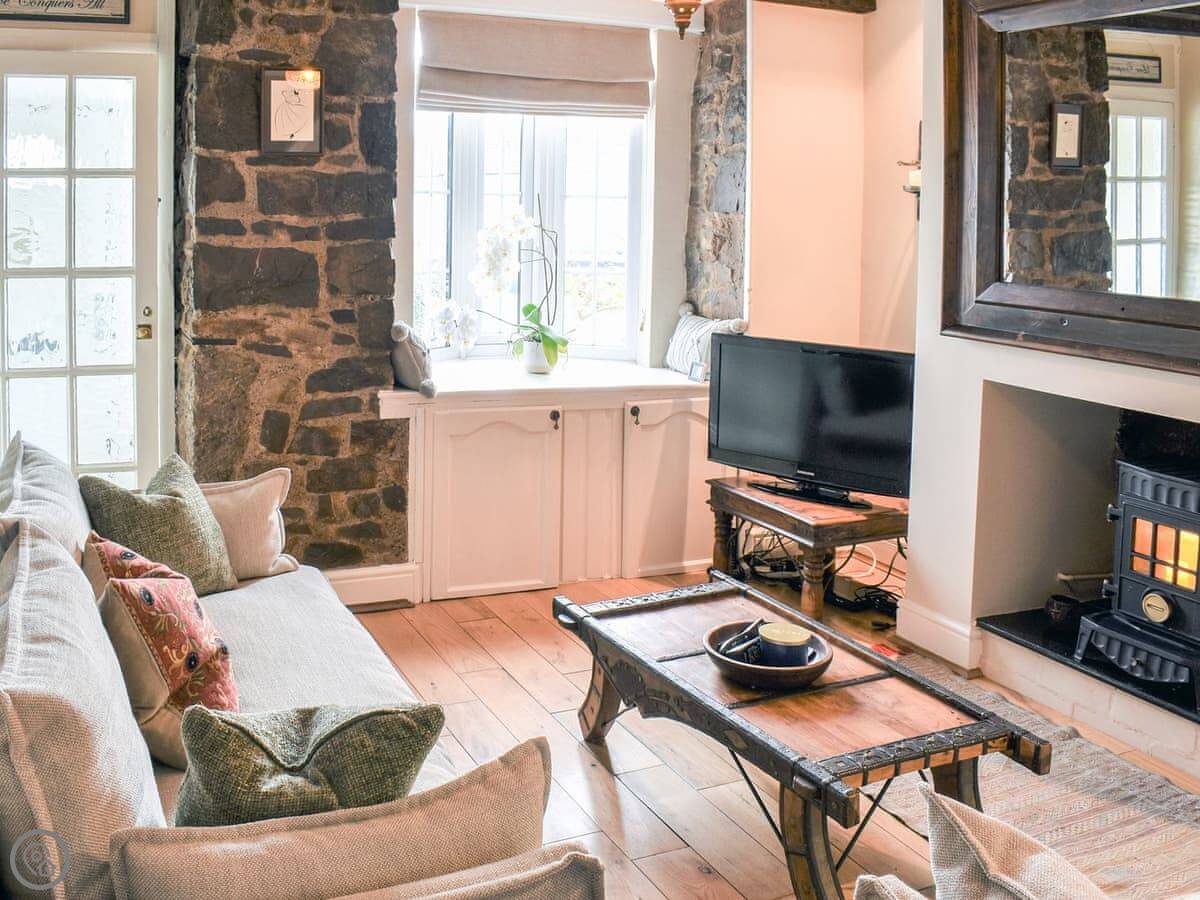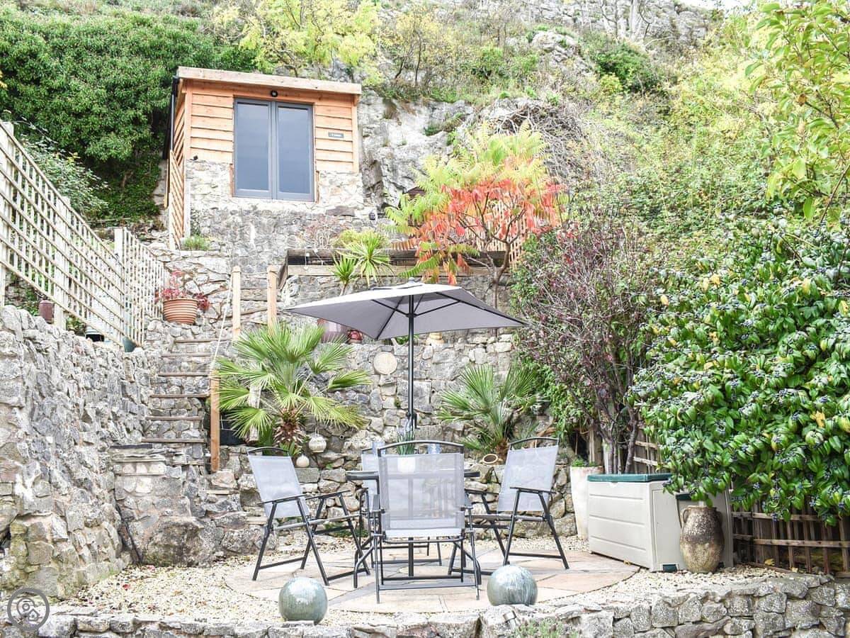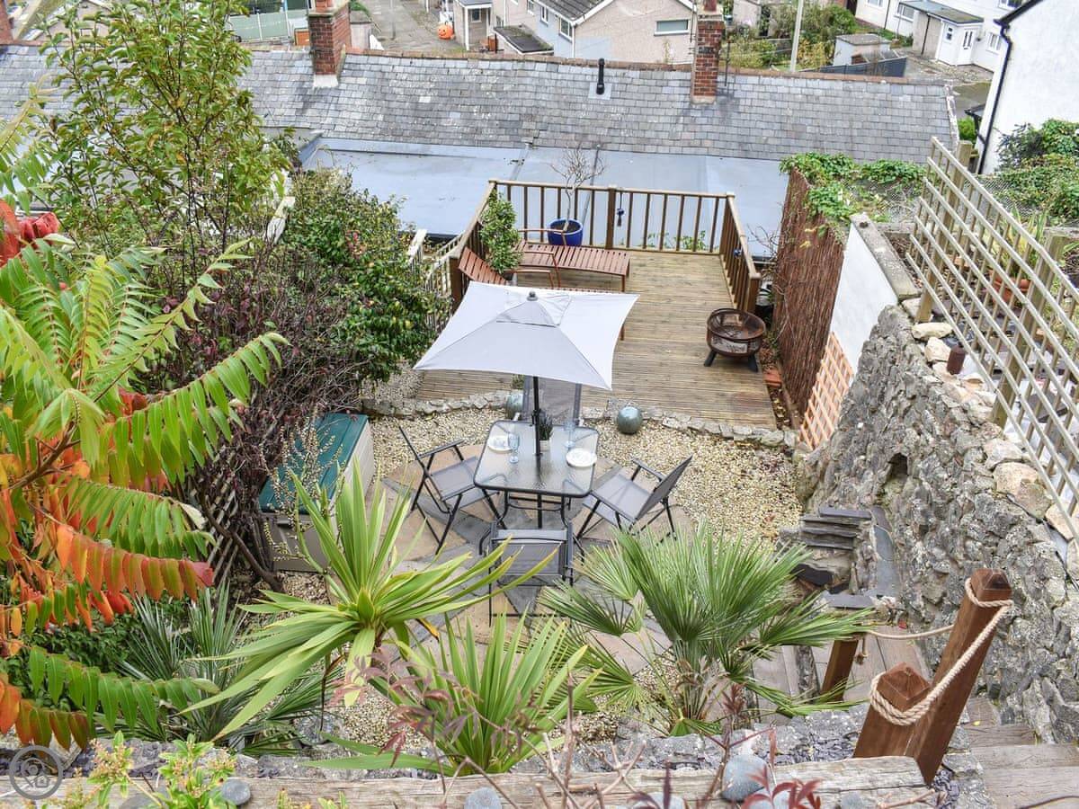 This mid-18th century miner’s cottage retains much of its charm whilst providing everything you would expect from a modern self-catering stay in North Wales. Inside you will find a lovely living room with decorative fireplace, comfortable sofas and smart TV for a relaxing evening with loved ones. Just off the living room up a small step you will find a stylish and well-equipped kitchen with Rayburn stove, perfect for cooking a Welsh breakfast or evening meal. The kitchen door leads to the stunning tiered garden. Due to the steep steps, this property does not accept children under 10 years old and this garden area may not be accessible for those with limited mobility. You can relax on the garden furniture, sit by the fire pit, or have a barbecue. From the very top of the tiered garden, a lovely summer cabin offers spectacular sea views and tranquillity. This area is lit with solar lighting; therefore, it is not recommended for use after dark.