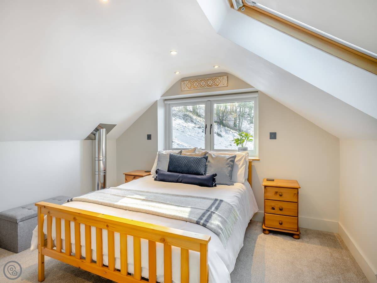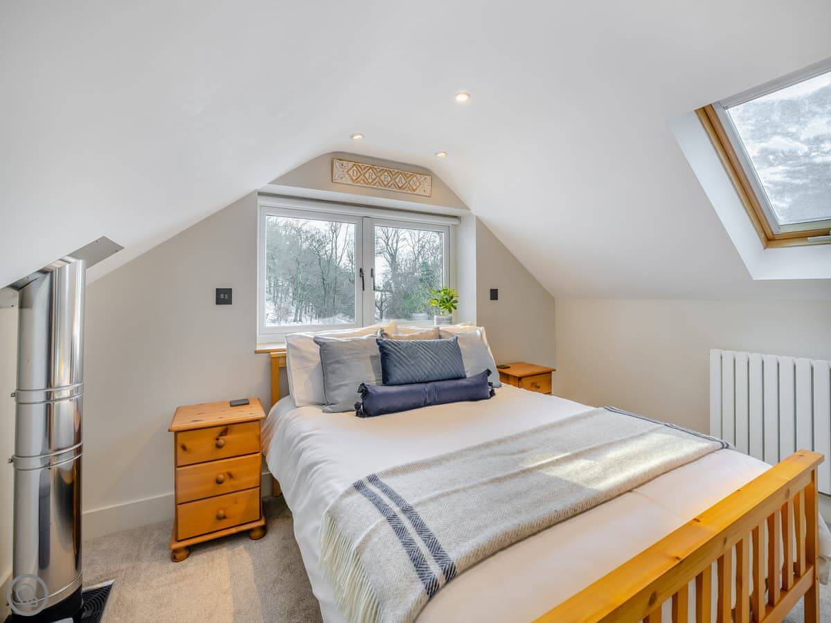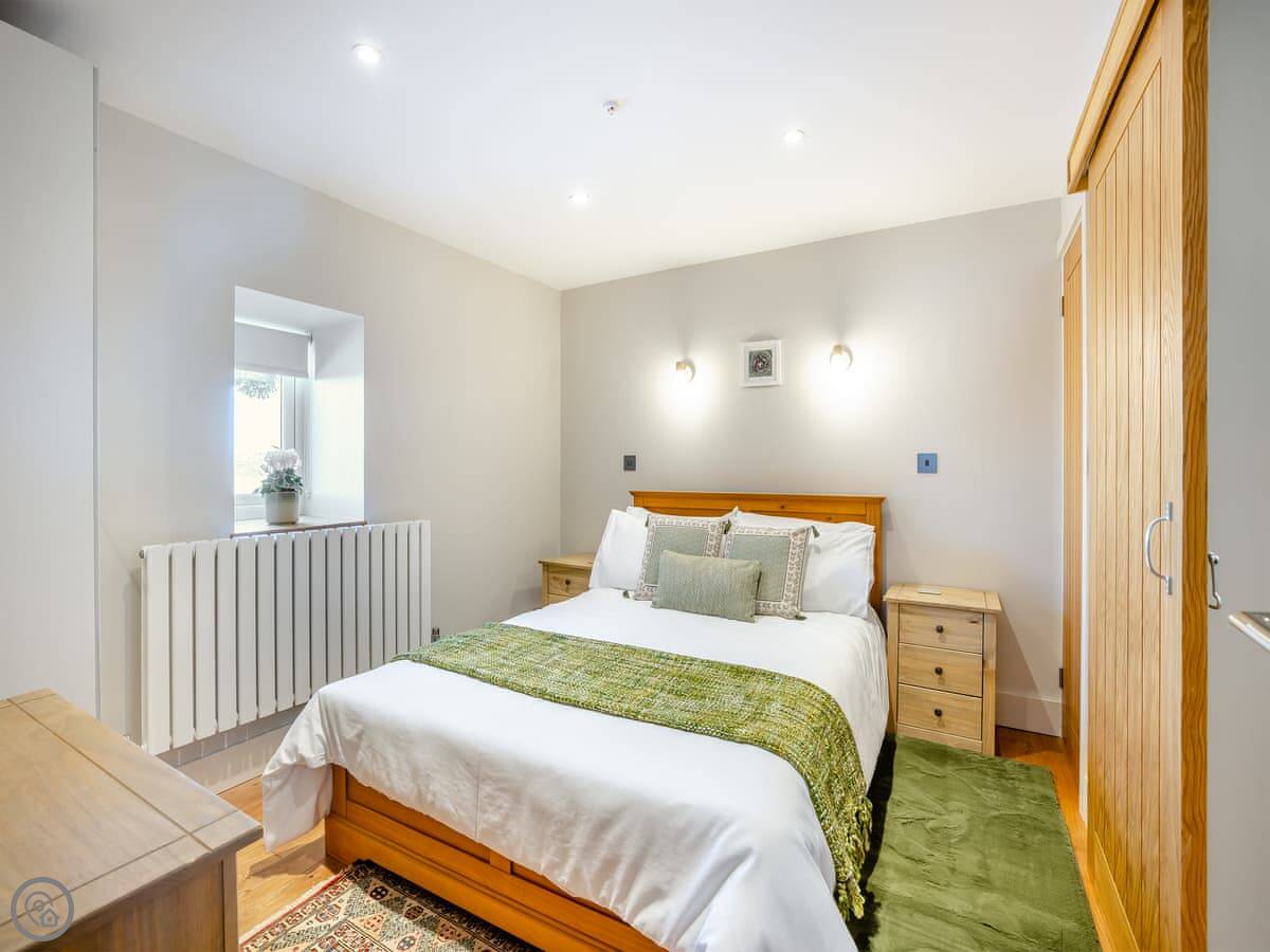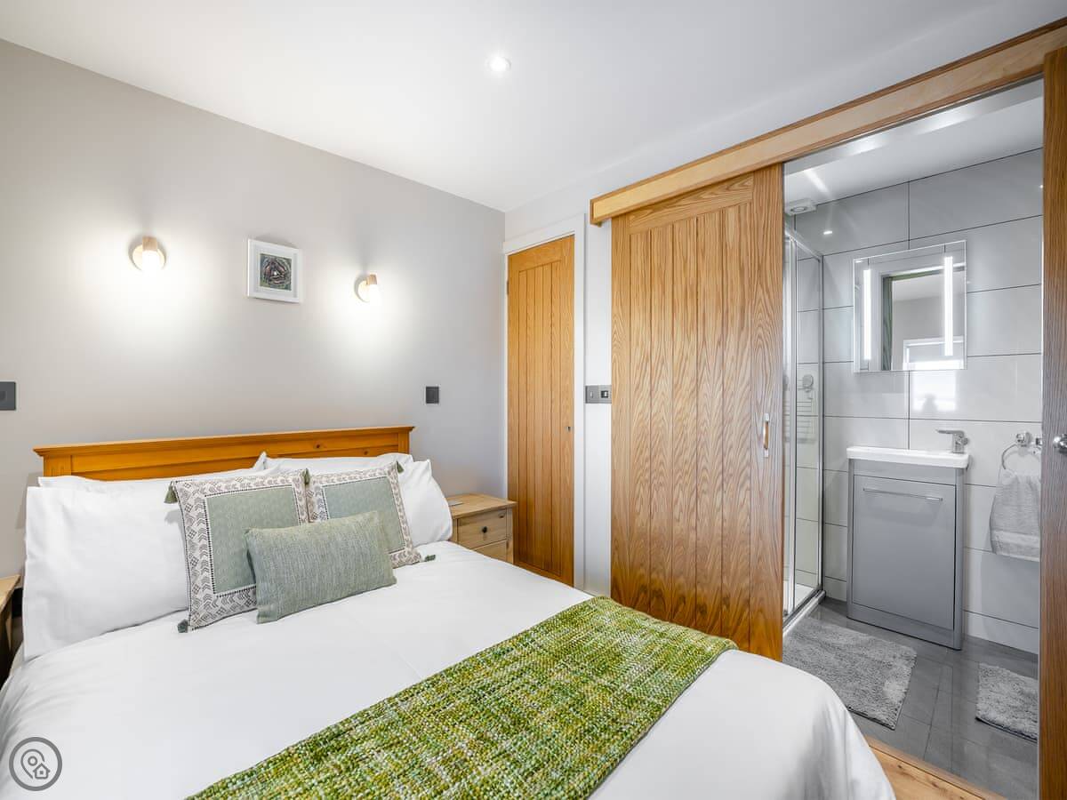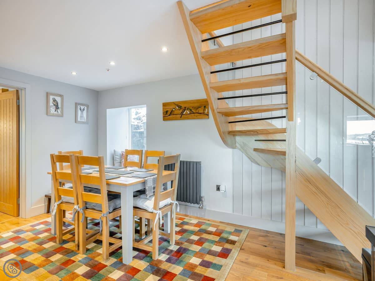 It sleeps six. There are three bedrooms and one bathroom, plus a shower room downstairs off the first bedroom. The stairs are wooden and a bit steep, which is pretty normal for a barn.