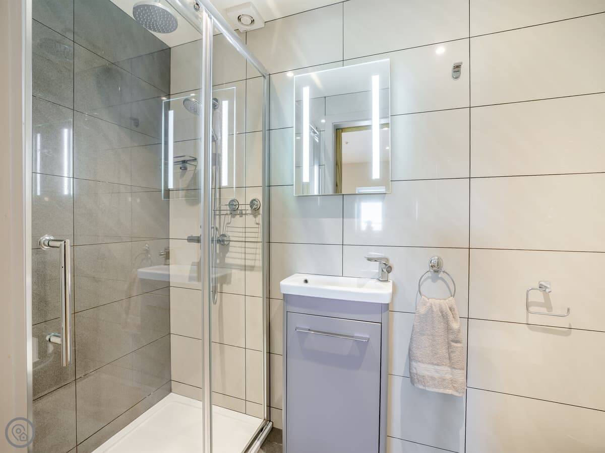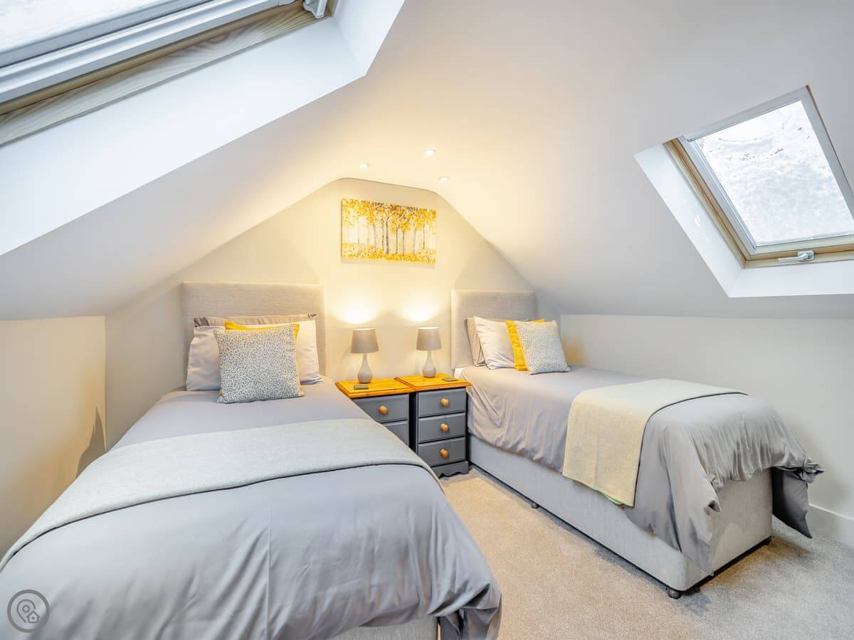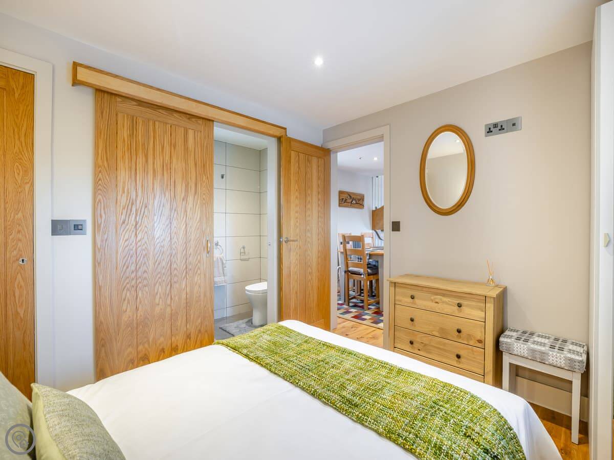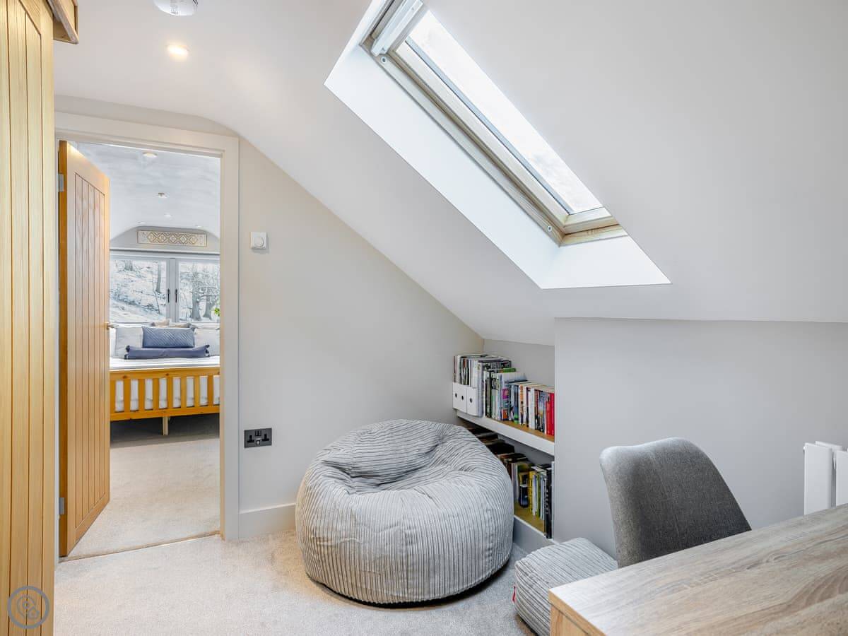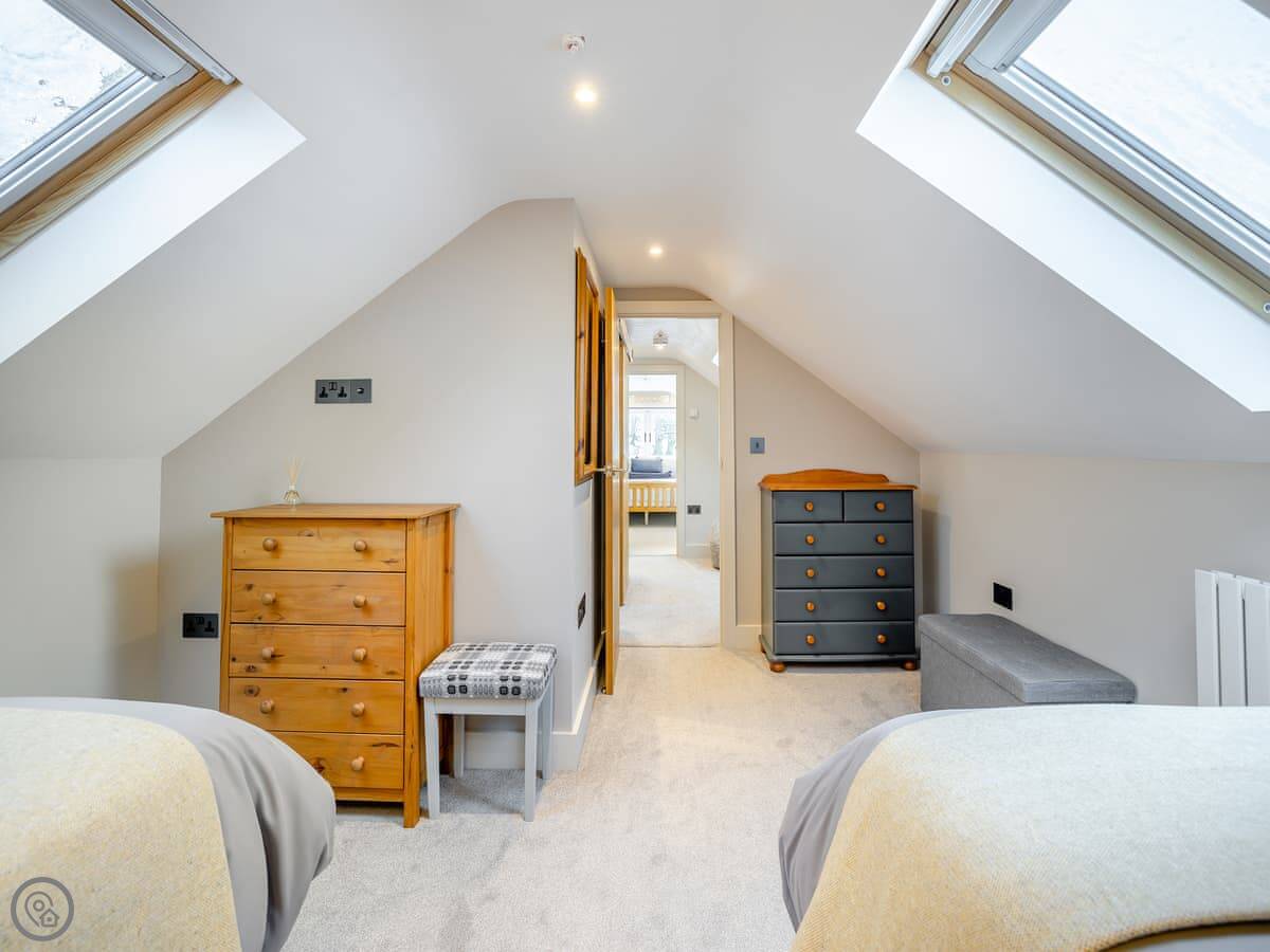It sleeps six. There are three bedrooms and one bathroom, plus a shower room downstairs off the first bedroom. The stairs are wooden and a bit steep, which is pretty normal for a barn.