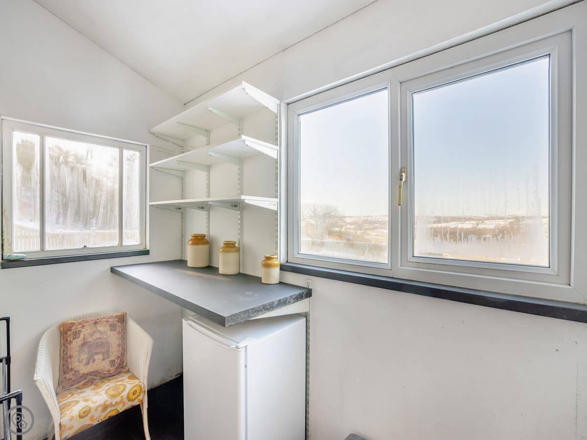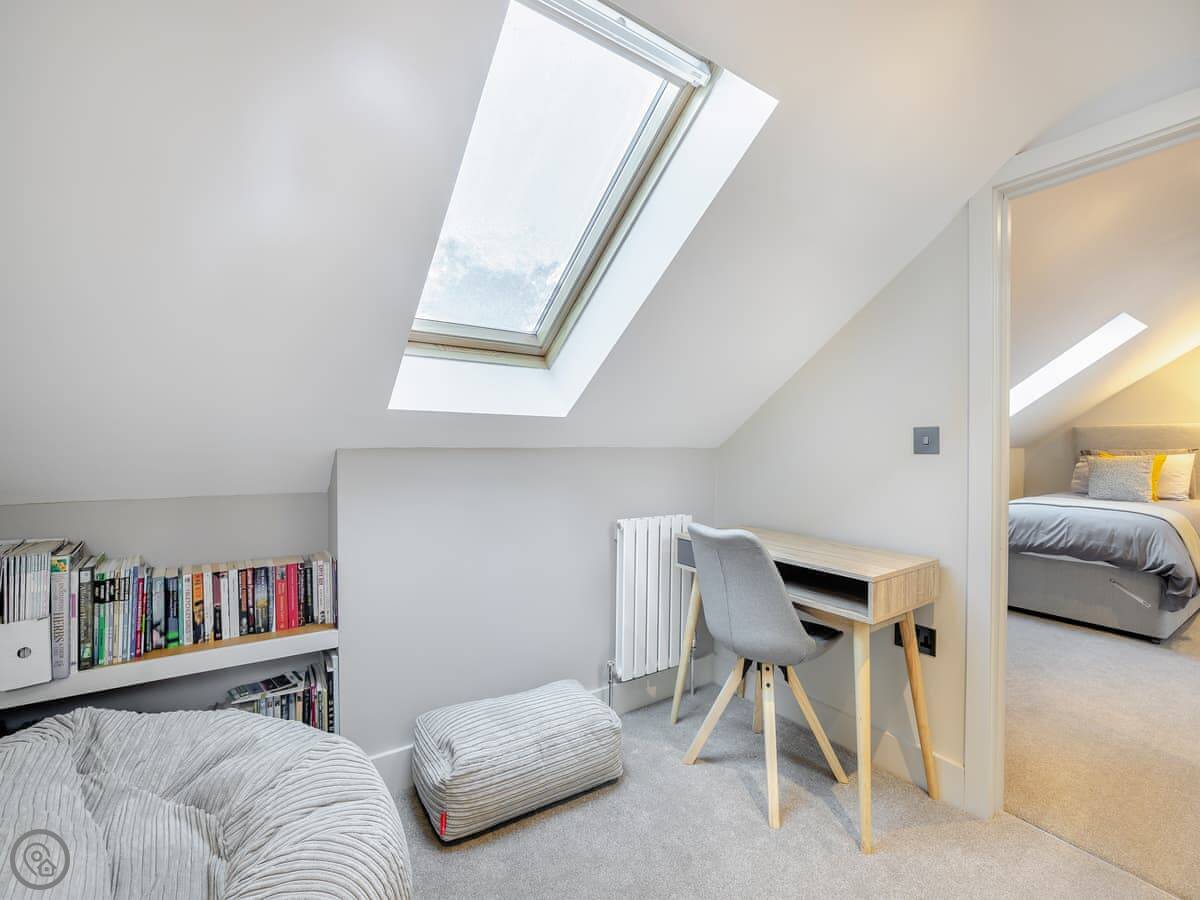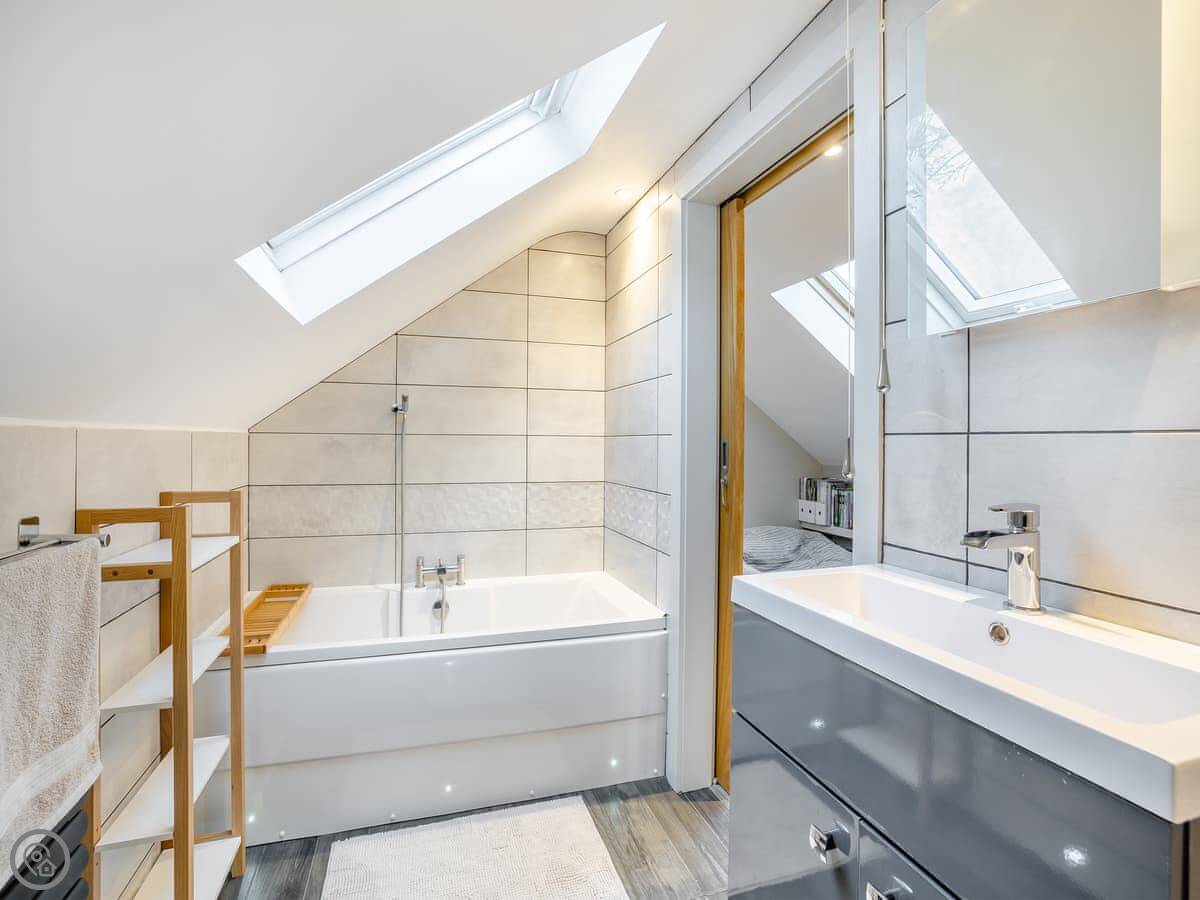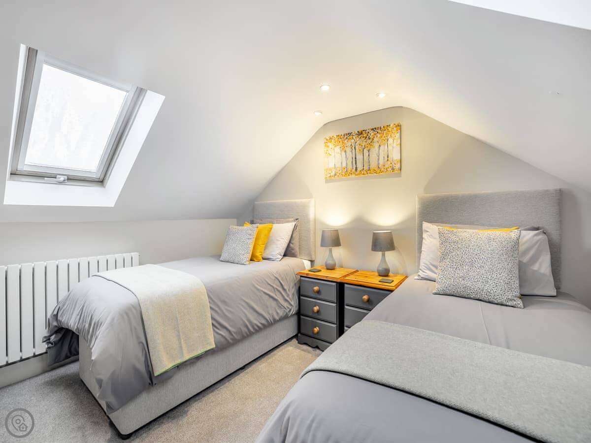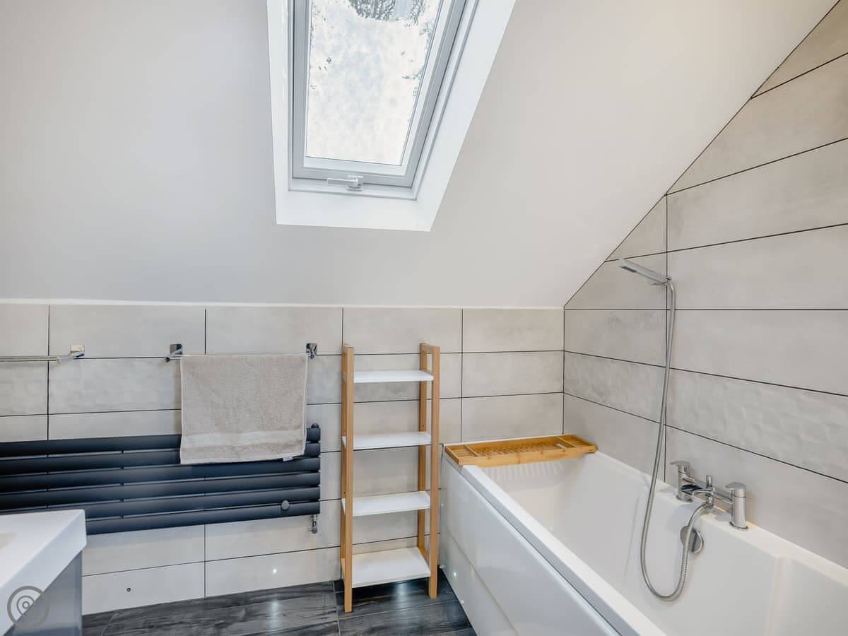 It sleeps six. There are three bedrooms and one bathroom, plus a shower room downstairs off the first bedroom. The stairs are wooden and a bit steep, which is pretty normal for a barn.