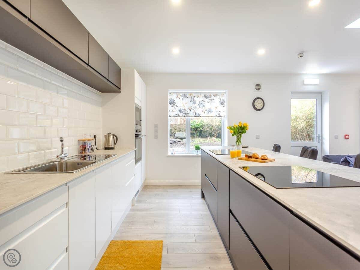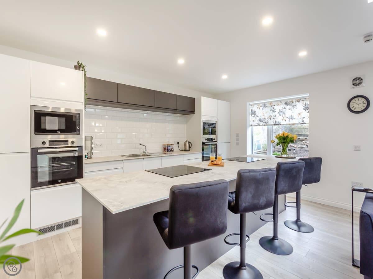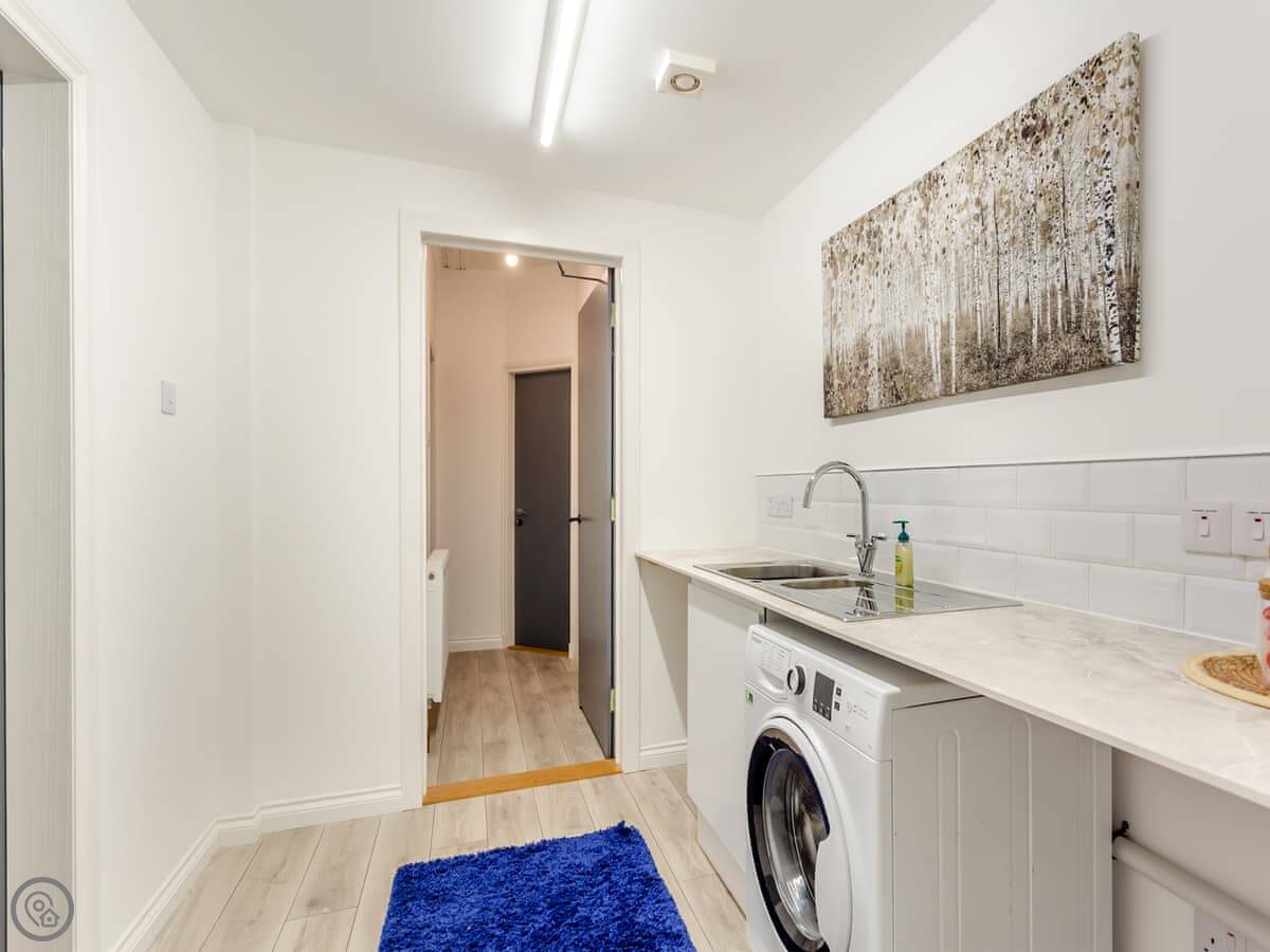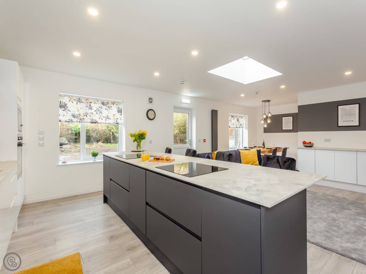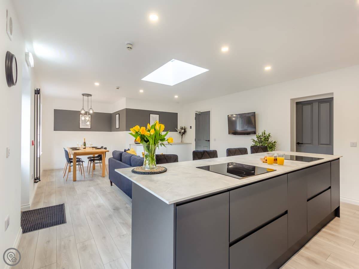 The property has seven kingsize bedrooms of which four are en-suite. There is a shower room which is shared with the remaining three rooms. The open plan kitchen/dining room is bright and has patio door to the rear garden, the kitchen area is well-equipped for the chef of the family to cook a hearty meal. There is a dining area with a large table big enough to sit fourteen guests. The lounge is spacious with couches and a Smart TV. There is an additional kitchenette on the first floor for making tea and coffee and it has a kitchen sink. There is also utility room so you can wash your muddy clothes after a full day walking or cycling in the neighbouring countryside. The rear garden has a patio area for alfresco dining and seating for the whole party. Beach 4 miles. Pub and restaurant ½ mile.