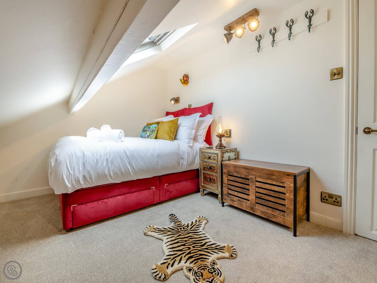 It sleeps eight in four bedrooms. Two are on the second floor with the best views, looking out towards the Abbey and the sea. The other two are attic rooms on the third floor, with beds partly under the eaves. There are two bathrooms, one with a shower. The place is done up in a colourful, eclectic style. It's a 4 star, so it's well finished with good appliances. It's a 'shoes-off' house and they provide spa slippers, but you might want to bring your own.
