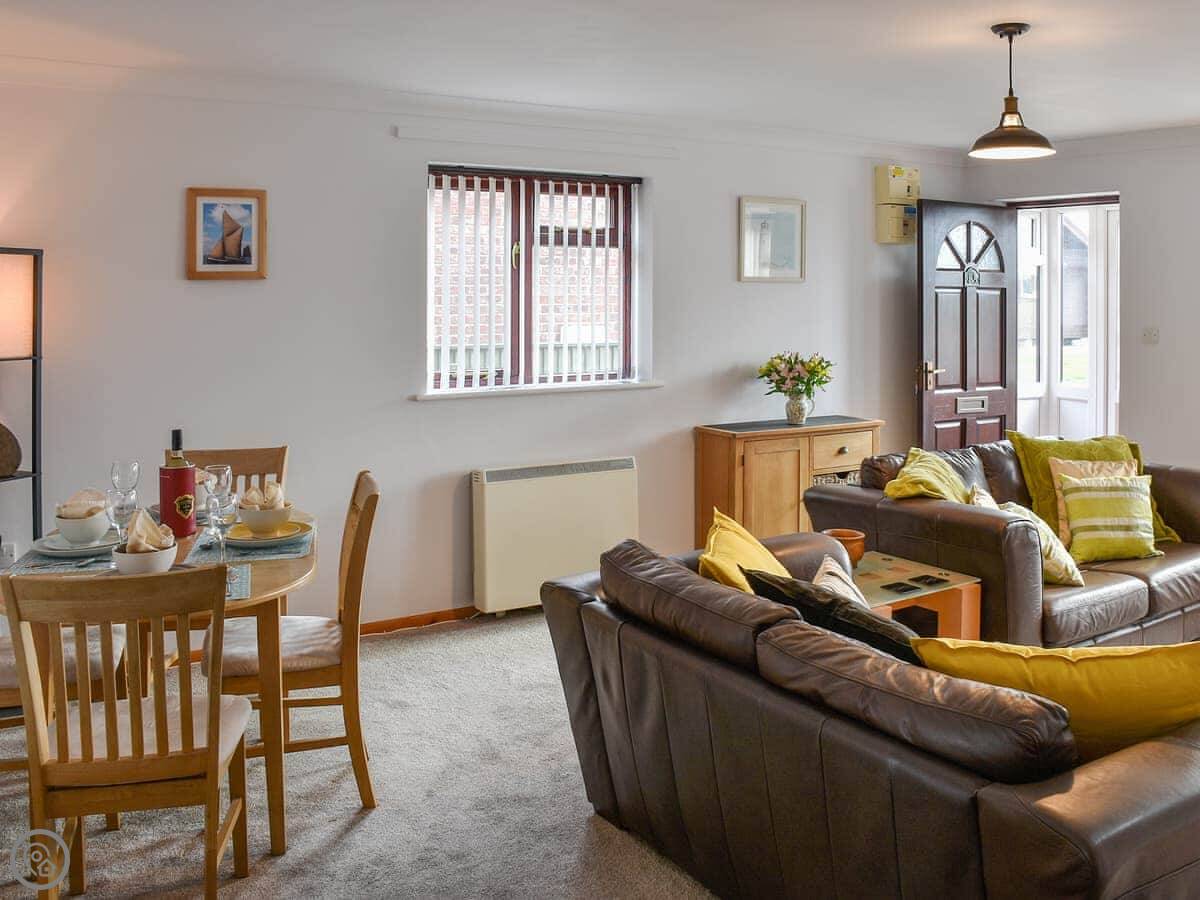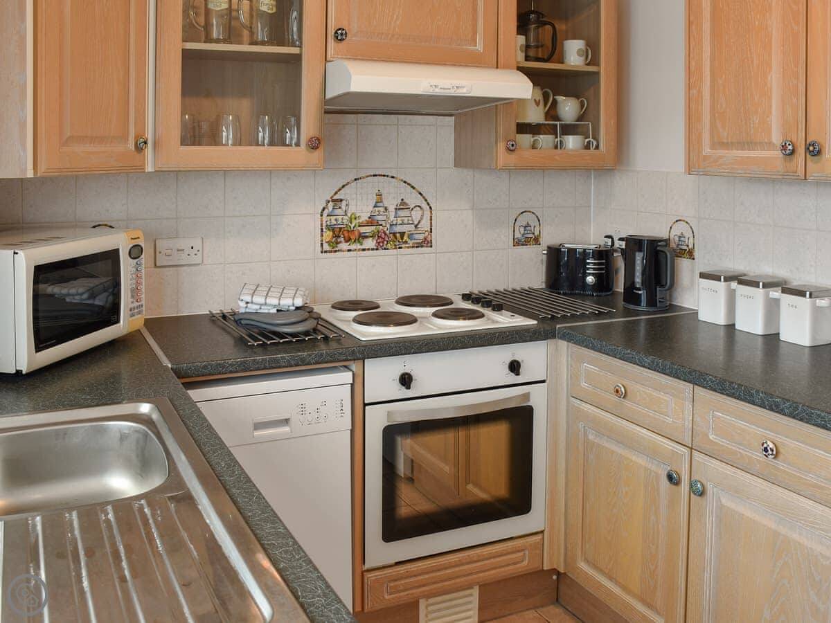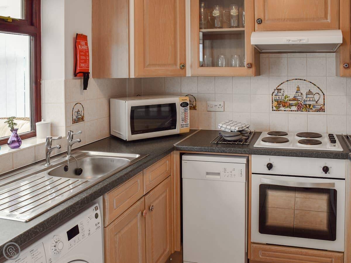 You’re a few minutes’ walk from the beach. It’s sandy. The village is about the same distance. There are two pubs that do food, a chip shop, a shop, and a cafe.