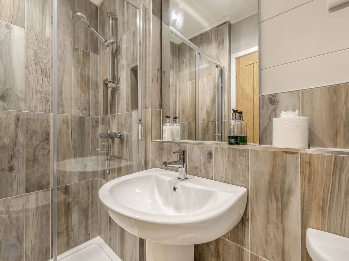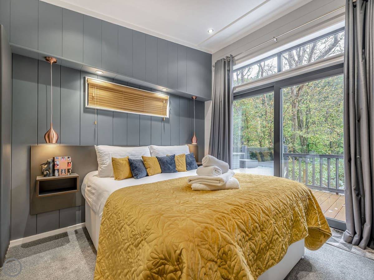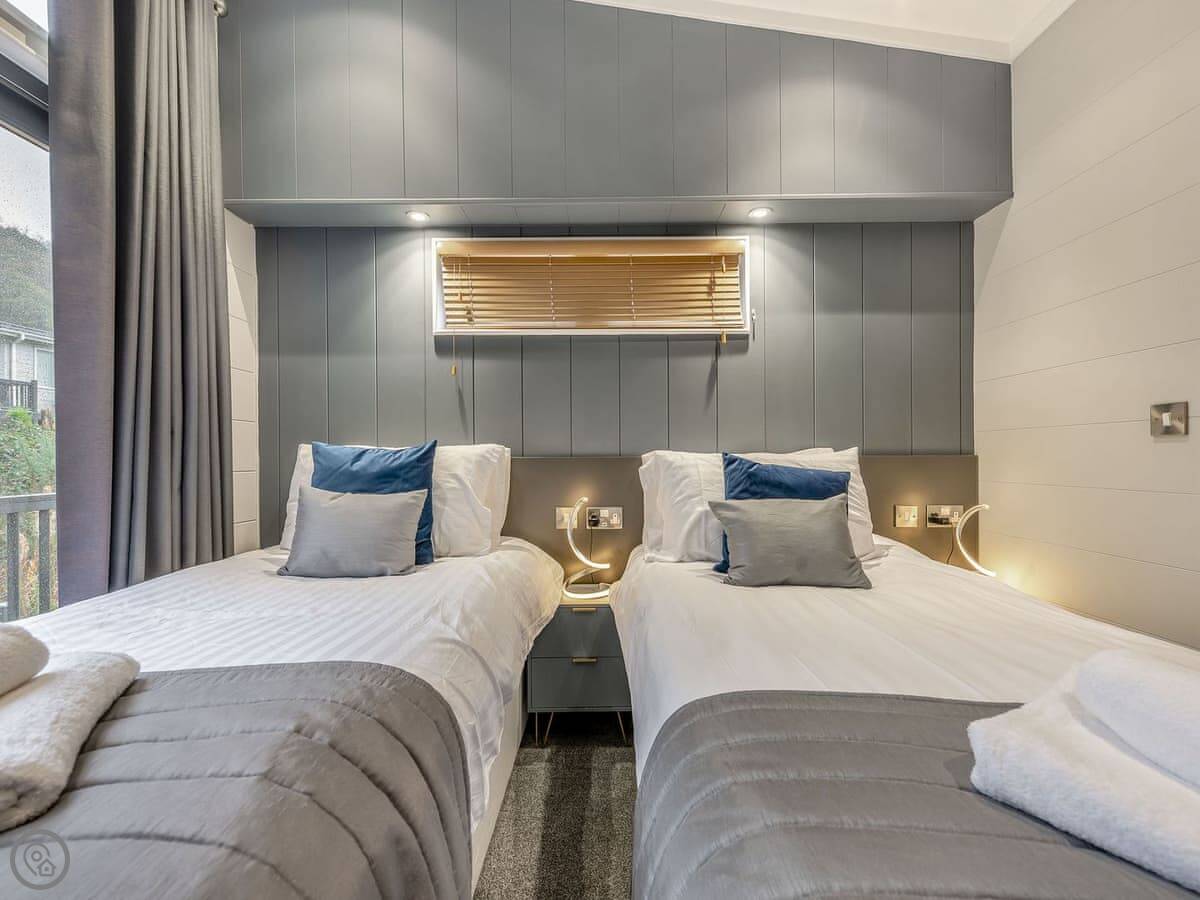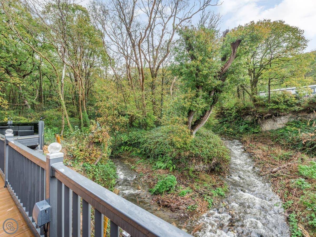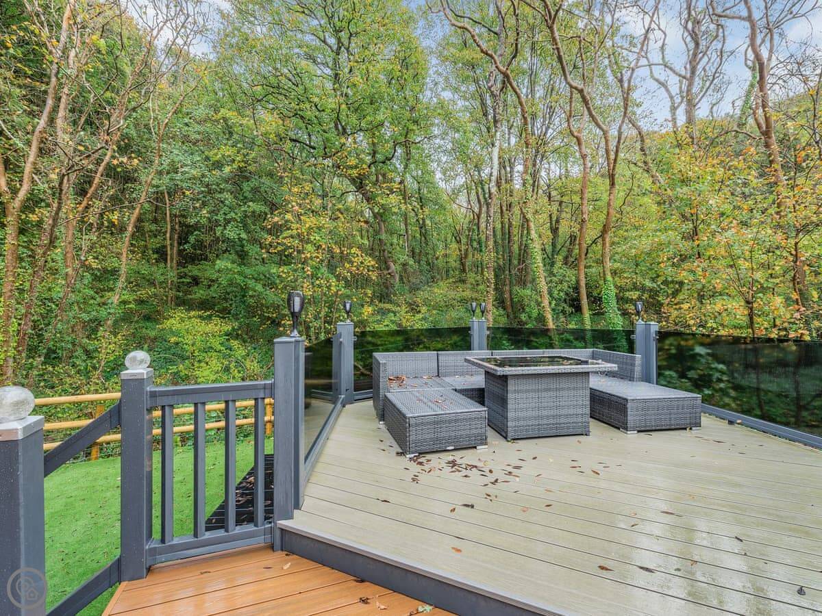 Two stylishly decorated bedrooms, both with their own Freeview TVs and en-suites, means you’re guaranteed a comfortable night’s sleep, leaving you well-rested to carry on your adventures the next day. Patio doors, from the living area and both bedrooms, lead out onto the decking and garden area, equipped with plenty of seating for enjoying a morning cup of coffee or simply enjoying the sunshine. Enjoy views from the decking overlooking a stream and woodland area.