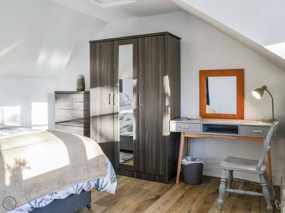 It's for two people. One bedroom with a big bed, and the shower room is right there next to it. It's got a 4 Star rating. We redid the whole place in 2022, so everything's clean and new. It's very warm, even in winter. The main room has a wood burner.