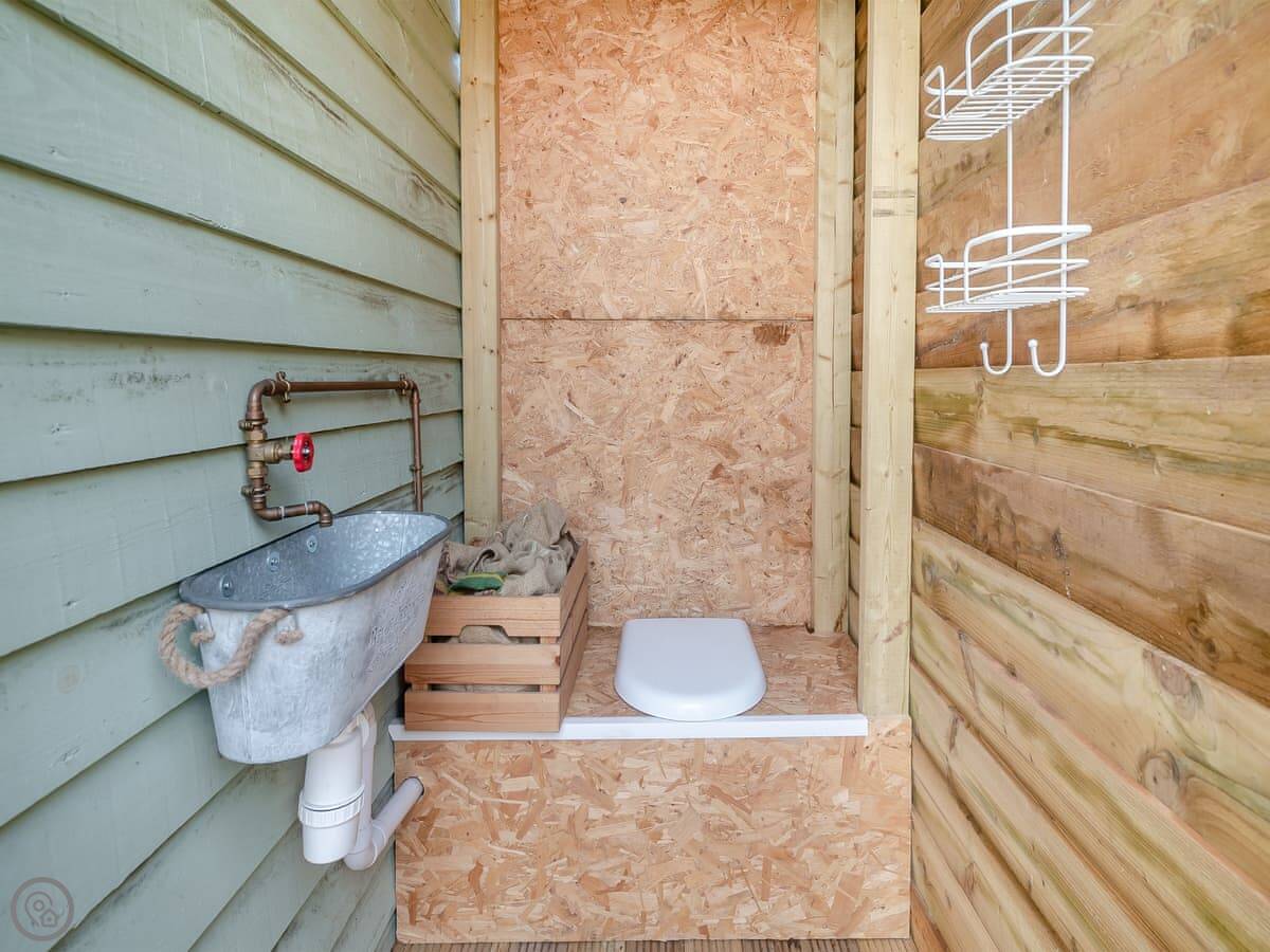From another door accessed to the side of the pod there is an outside toilet. The pod, although small and with limited facilities, offers guests an up-market like camping experience yet in a much more desirable location if being close to Torquay town, beach and amenities is what you are looking for.