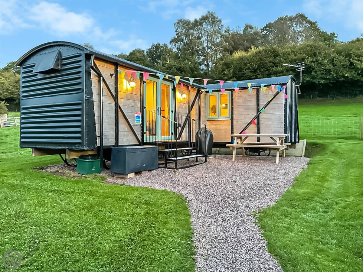 This is the perfect place for a quiet romantic break away, and there are fabulous walks straight from the carriage within the Wye Valley and Forest of Dean which boasts some stunning scenery. This is a perfect base from which to visit nearby attractions which include Clearwell Caves, The Secret Forest, Puzzlewood, Perry Grove Steam Railway, a sculpture trail, and a railway museum. The Forest of Dean has always been a huge draw for cyclists and walkers. There is also a cinema situated in Coleford, and another in Cinderford- just a short drive away