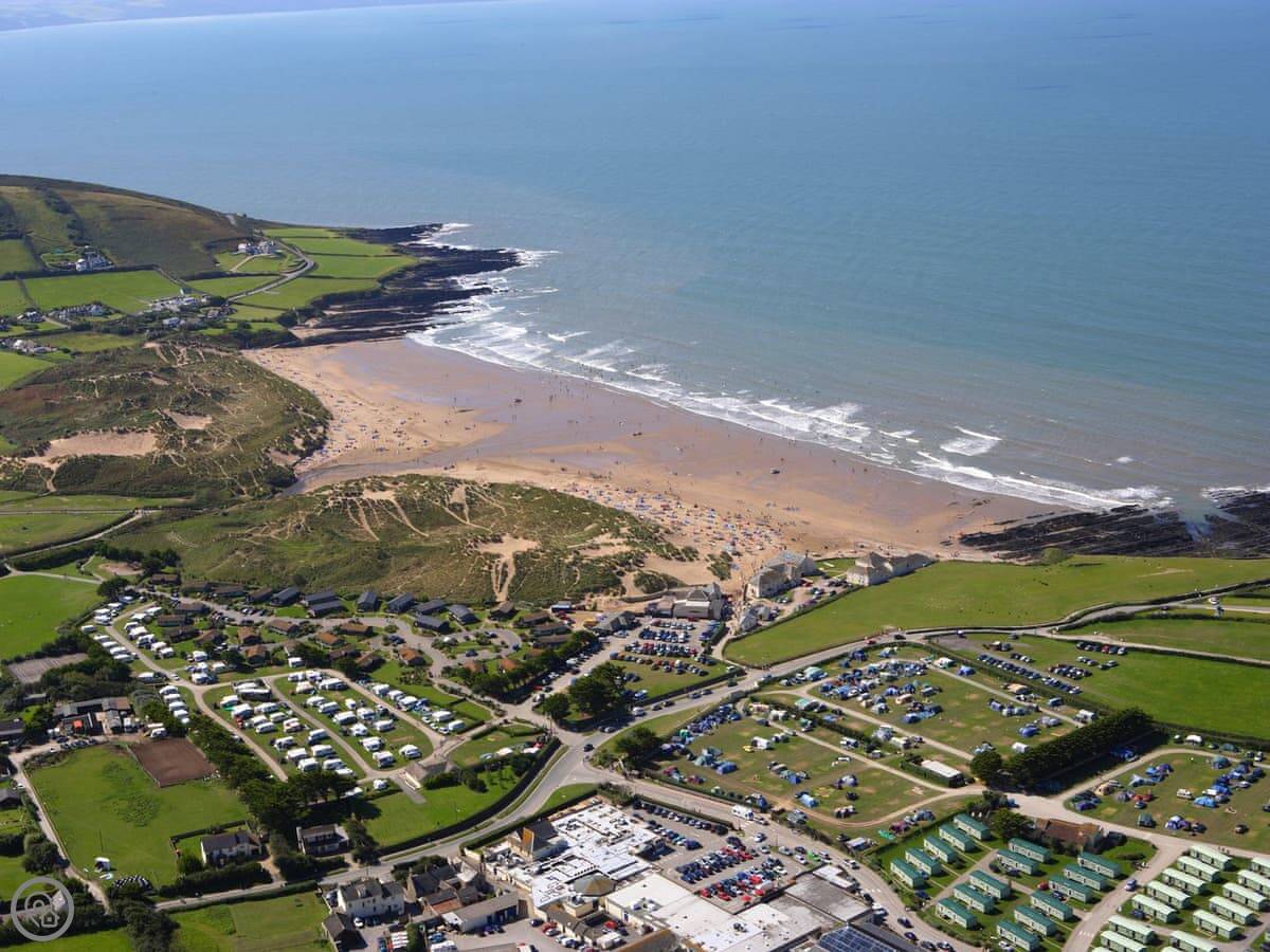 Braunton's a big village. It's got shops, pubs, cafes. You're about two and a half miles from the sea. The beaches around here are very good for surfing. Saunton Sands, Croyde, Putsborough, Woolacombe. All within a ten or fifteen minute drive.