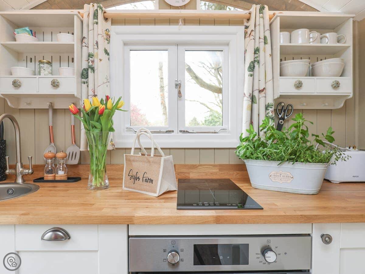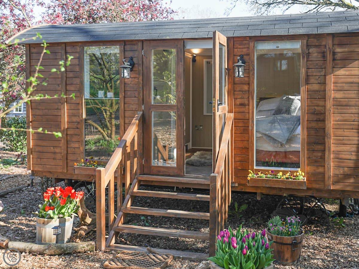 Sybs Farm Shepherds Hut is on Windfallwood Common in West Sussex. It's really for two people. The owners built it themselves.
