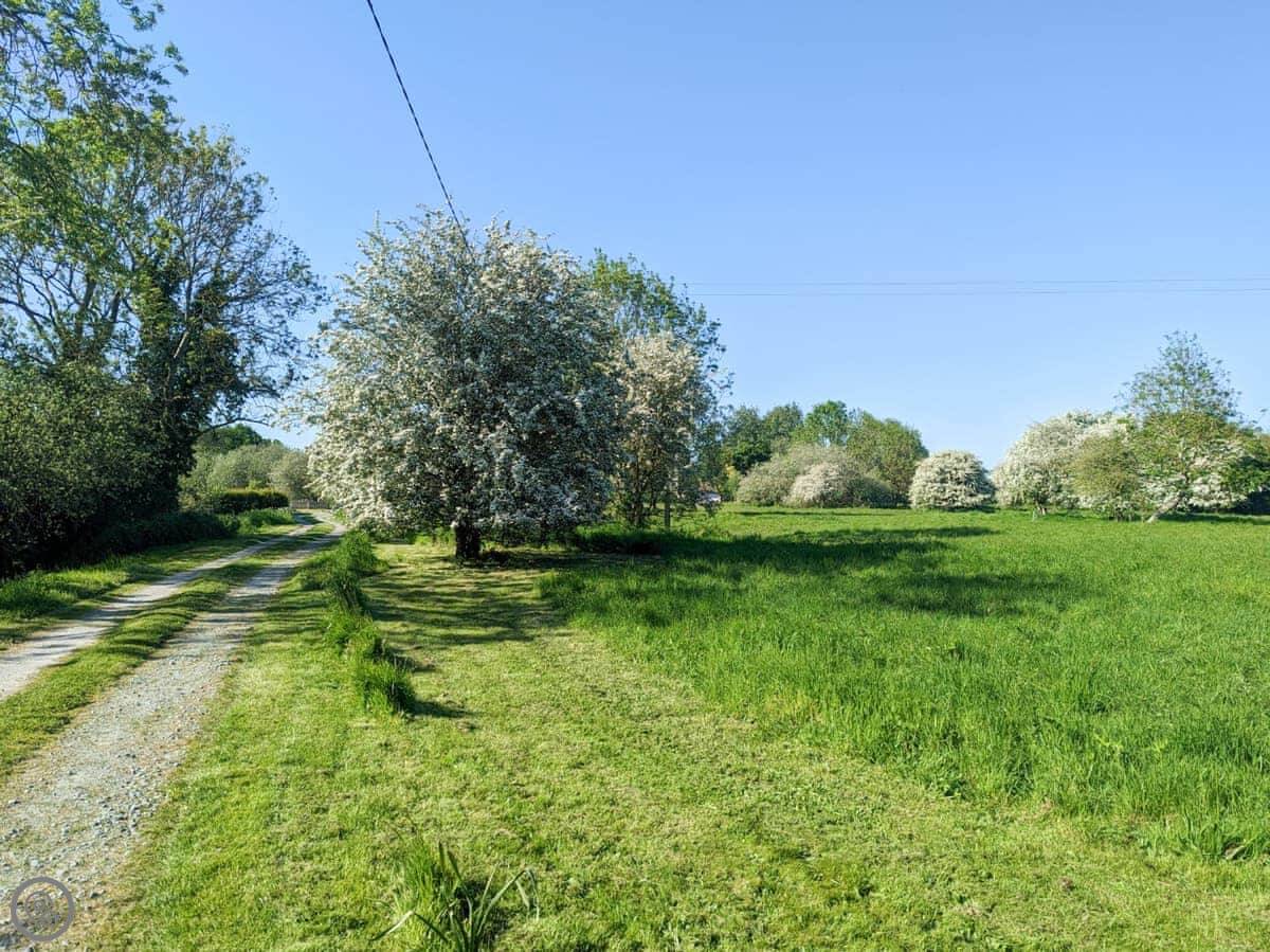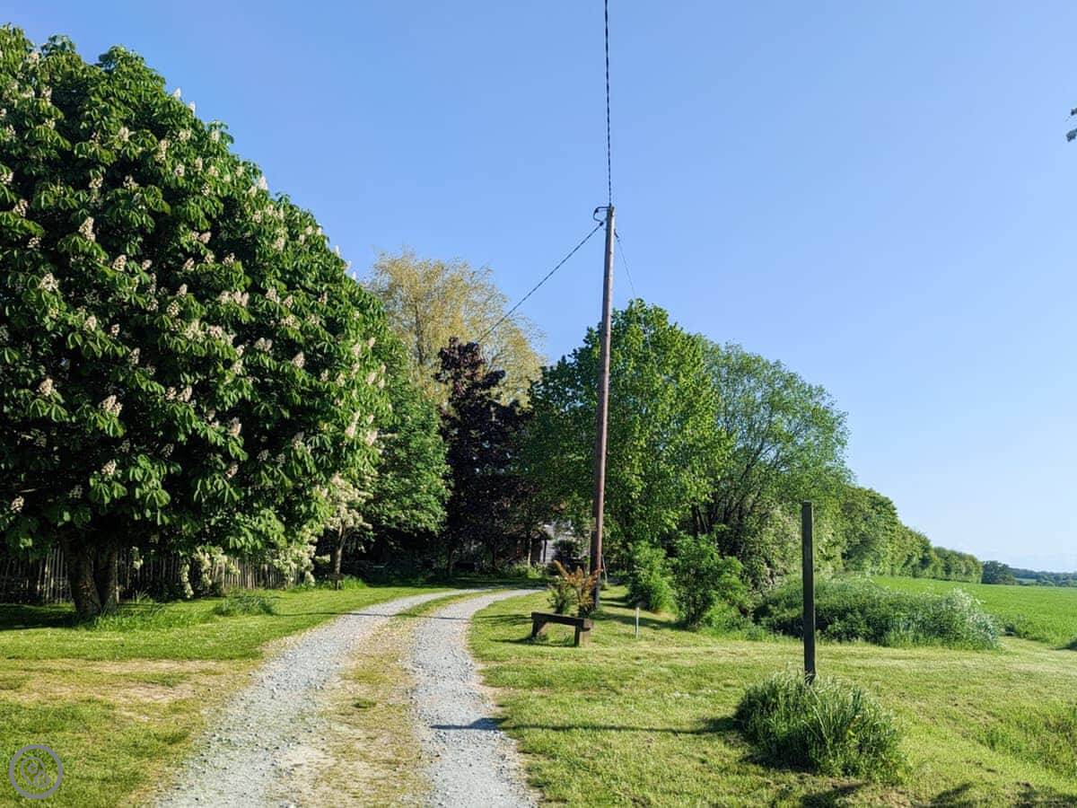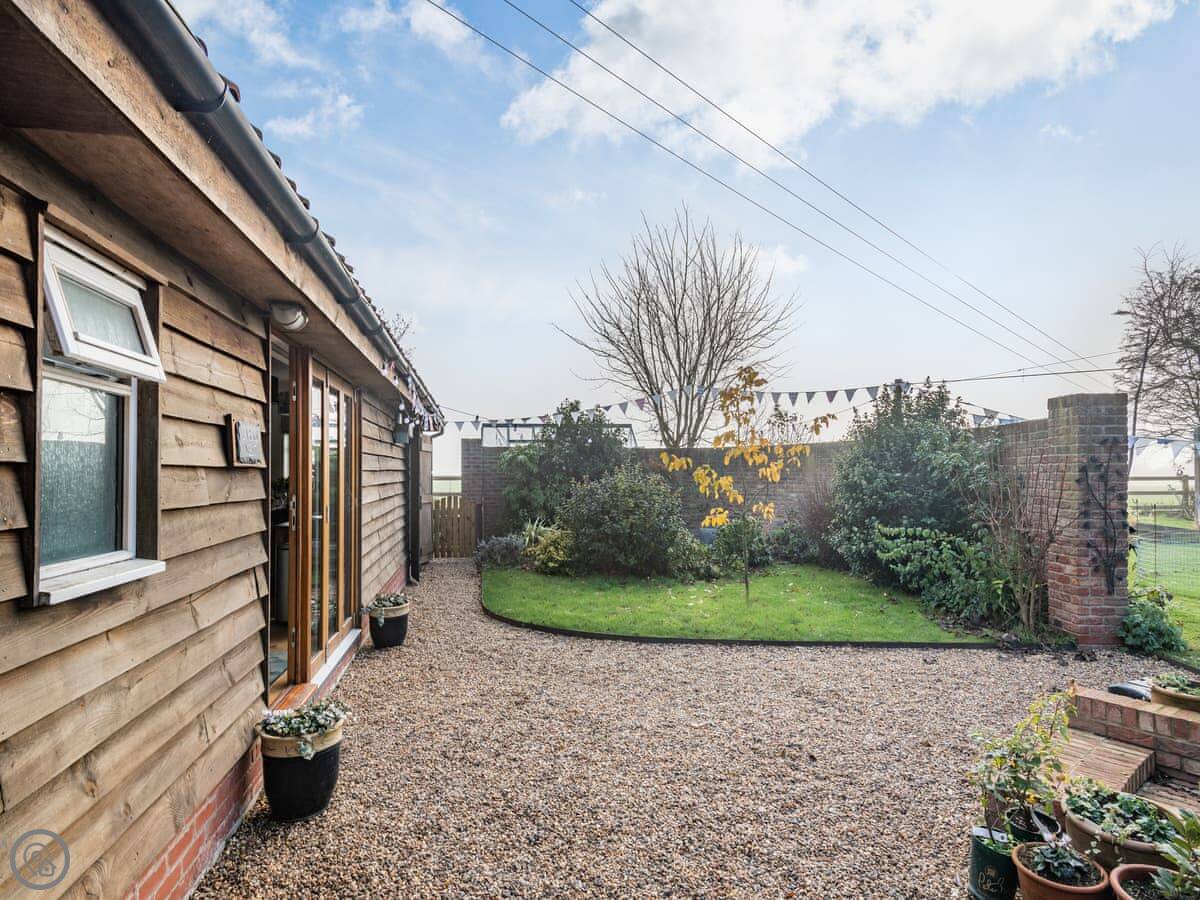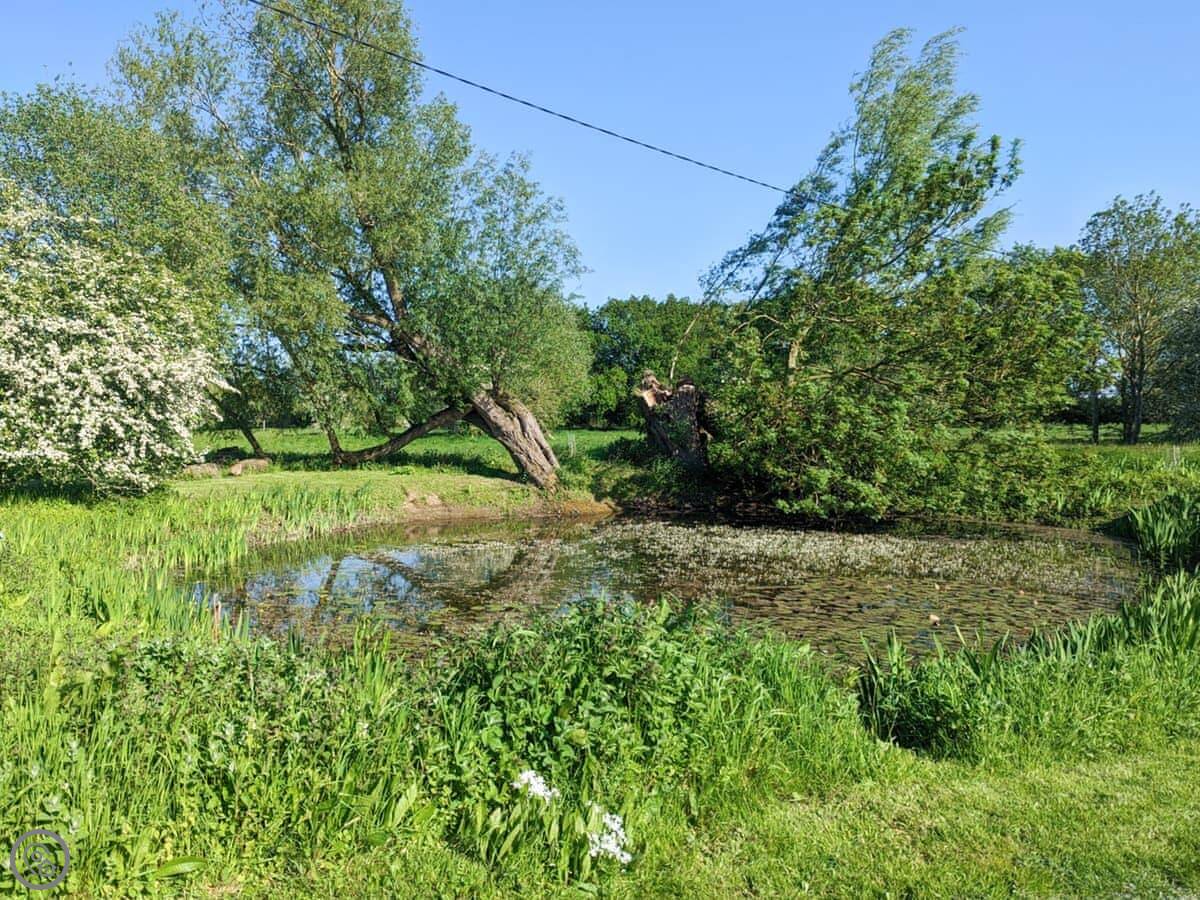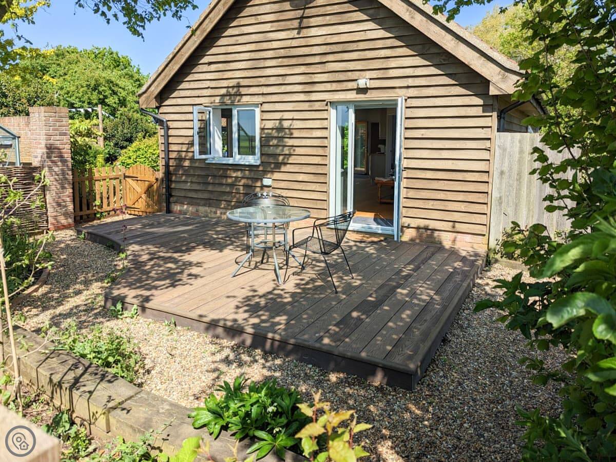 You've got your own enclosed courtyard garden with a table and chairs. It looks out over the fields. About twenty steps from your door is the village common, with a duck pond and wildflowers. It's a nice spot.