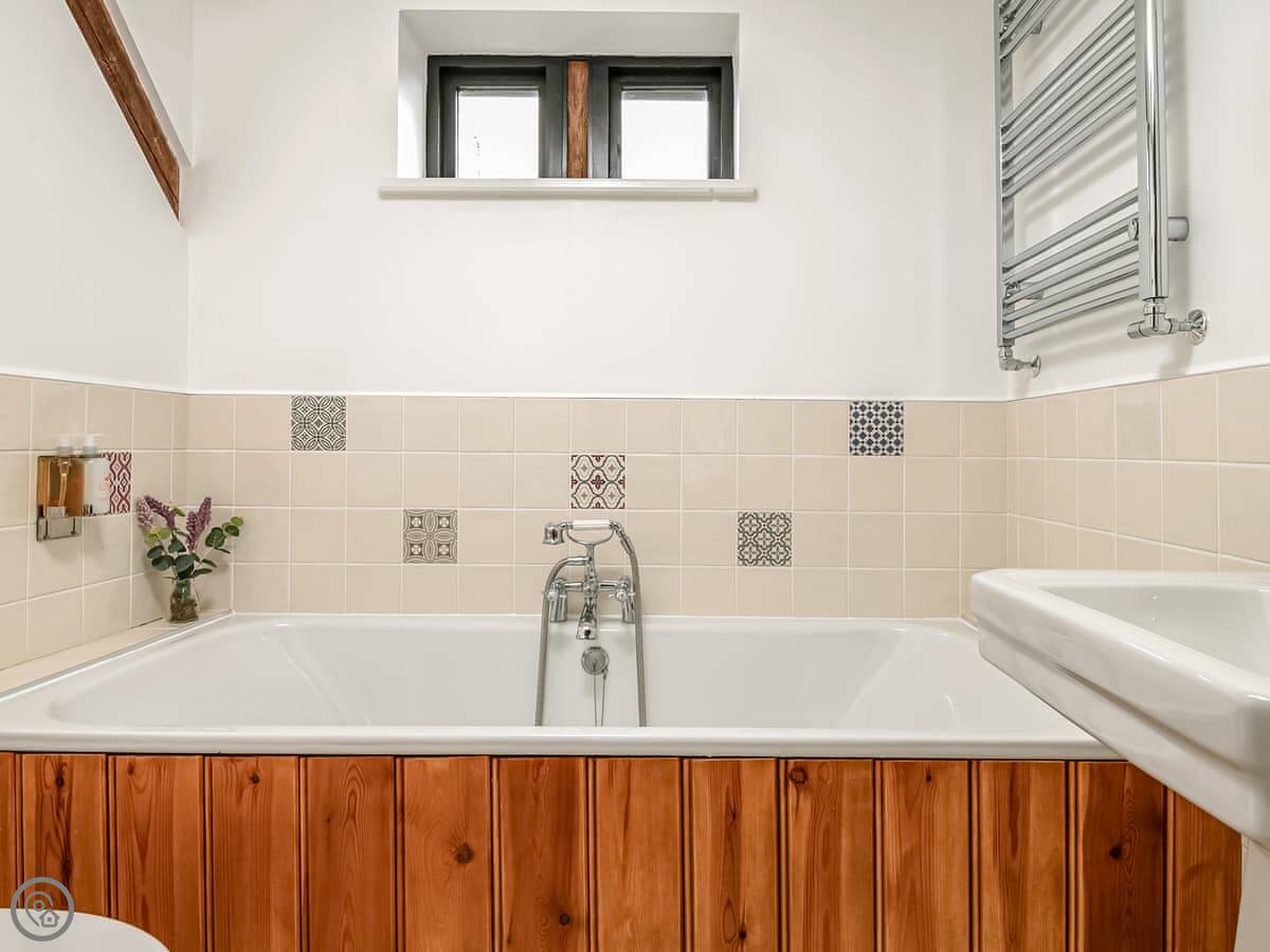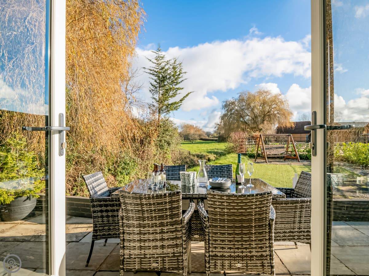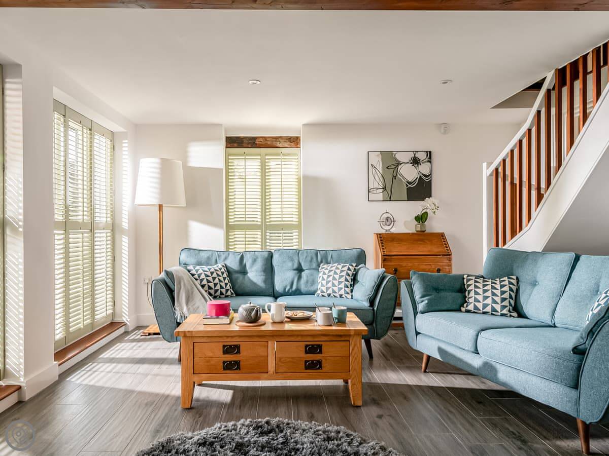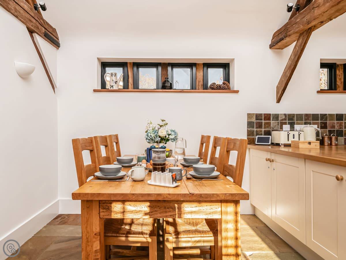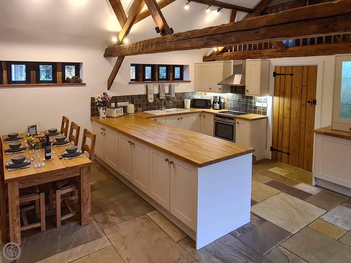 The kitchen is big with a vaulted ceiling and old beams. The living room has doors out to the garden. It's got a 5 Star rating. It's comfortable and everything works.