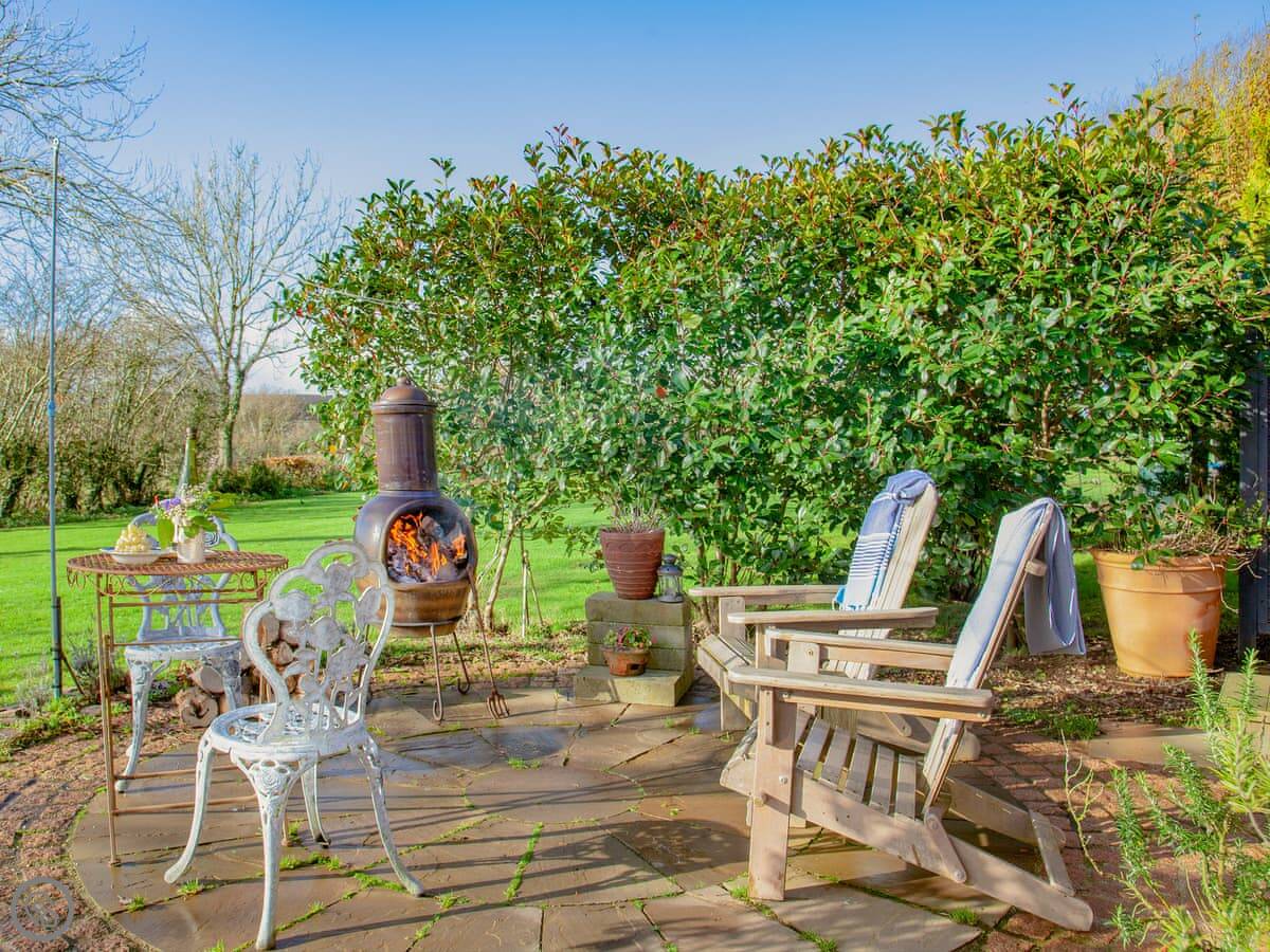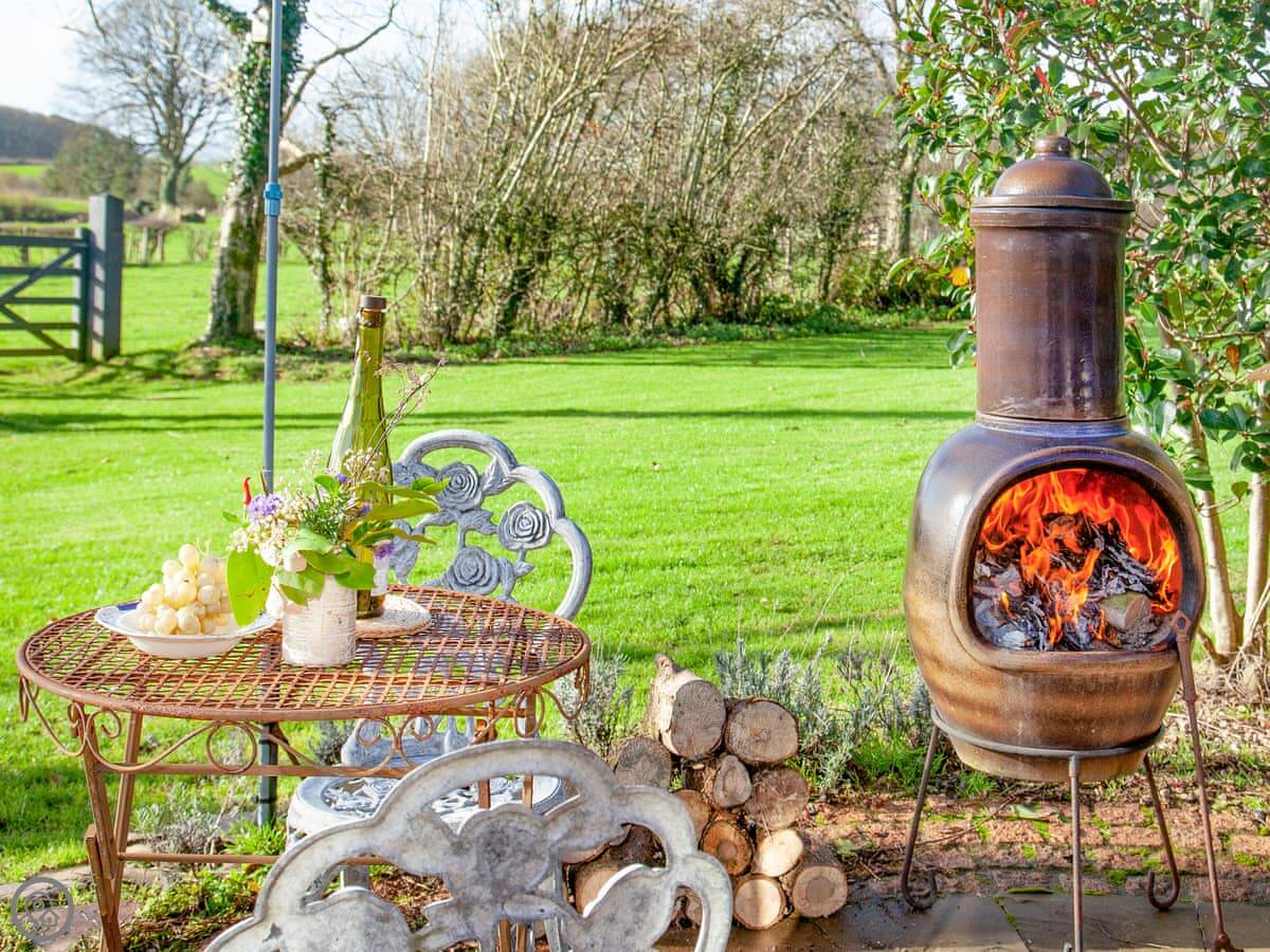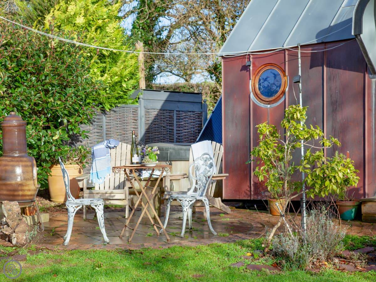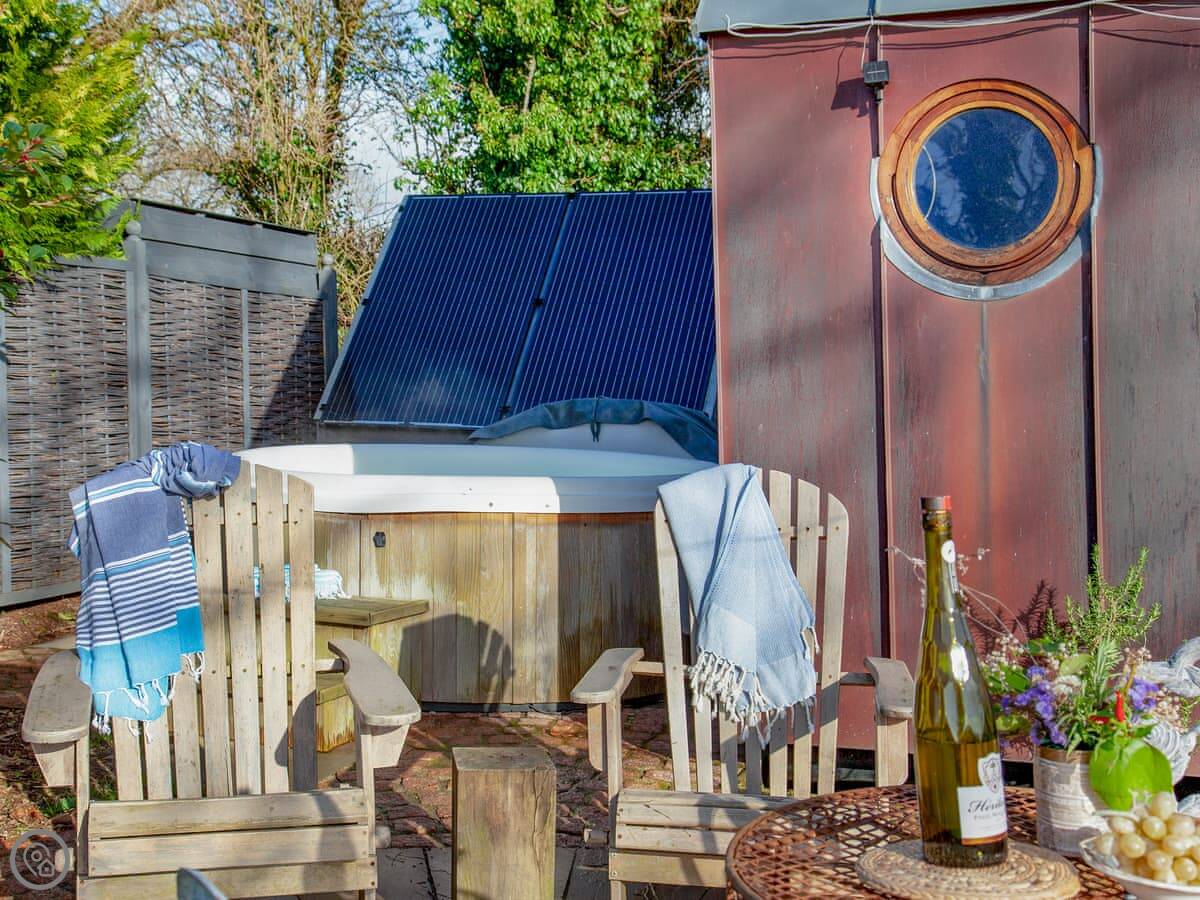 Outside, there’s a private patio area with views over the valley. It has a cedar wood hot tub.