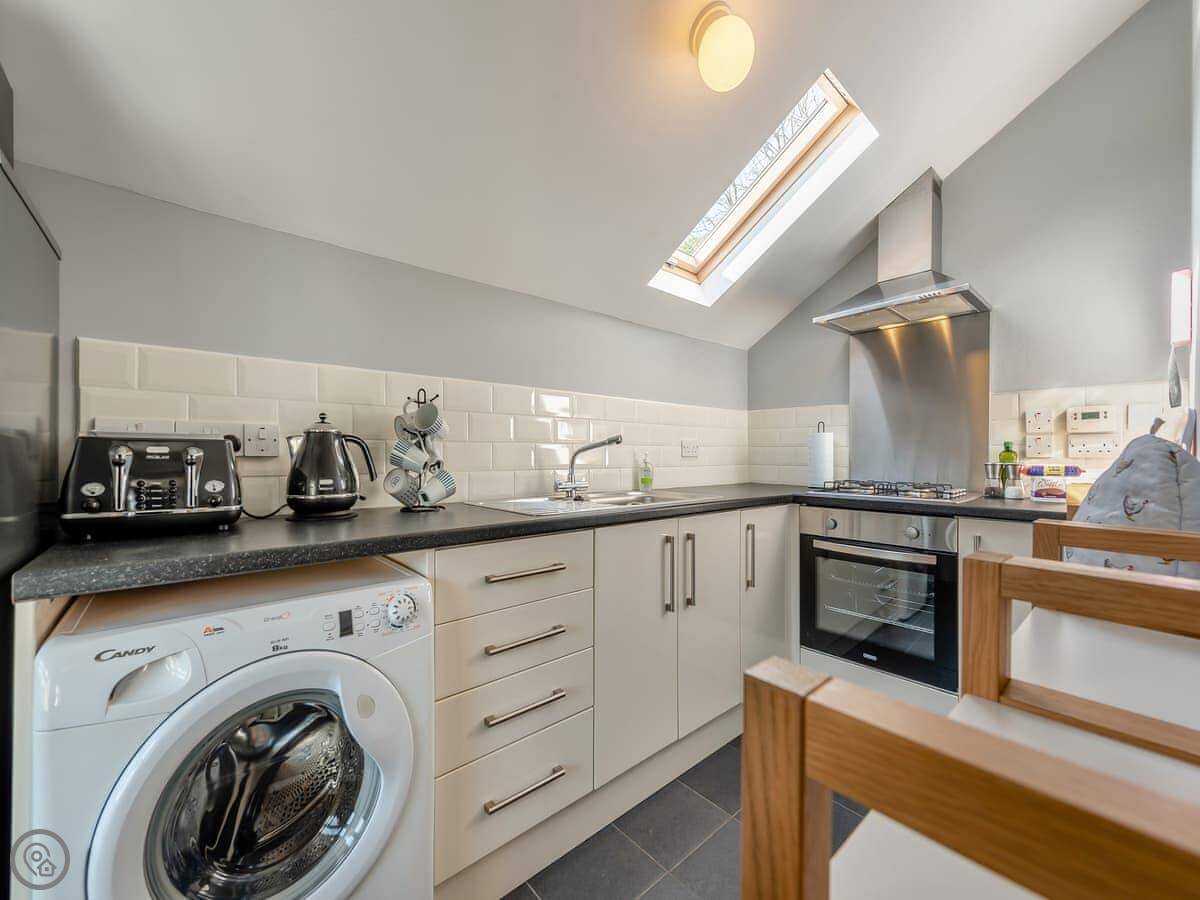 Facilities: all your utilities are included, there’s WiFi, a washing machine, on-site parking, and a Smart TV. Bedding and towels are provided. We can put up a cot and a highchair if you need them, and there’s a stairgate at the bottom of the stairs. Two well-behaved dogs are welcome.