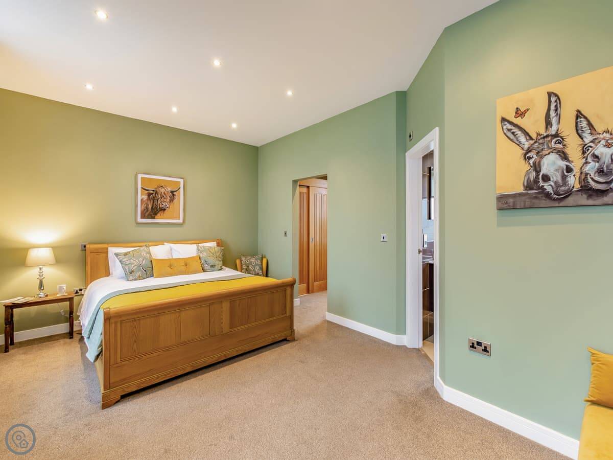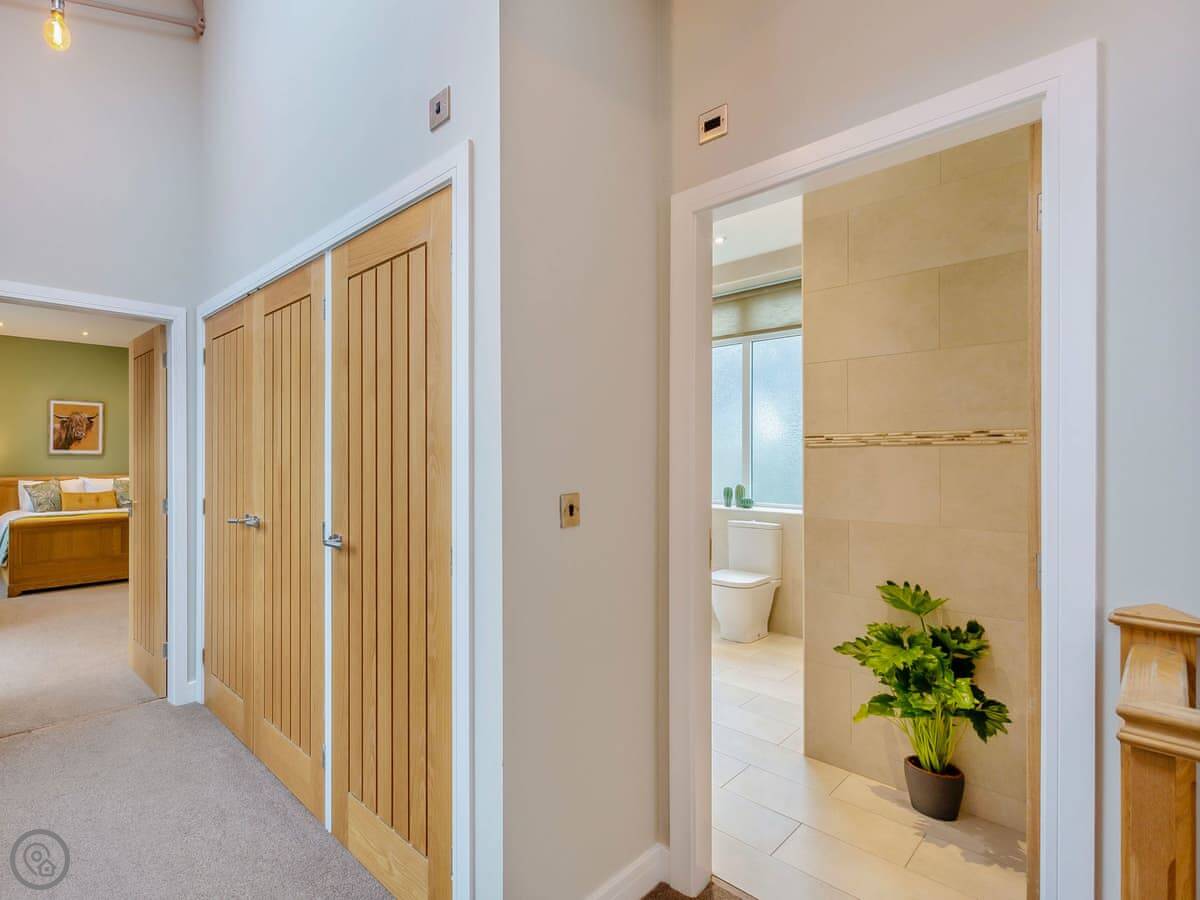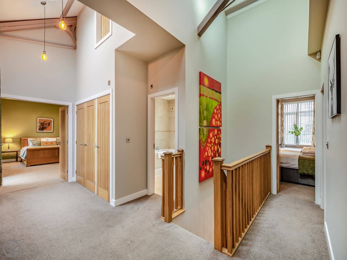 Clarion Lodge Cottage is in Menston, which is on the edge of the Yorkshire Dales. It's a detached house that sleeps up to thirteen people. There are six bedrooms and three bathrooms. Two of the bedrooms have their own shower. It's got a 4 Star rating.