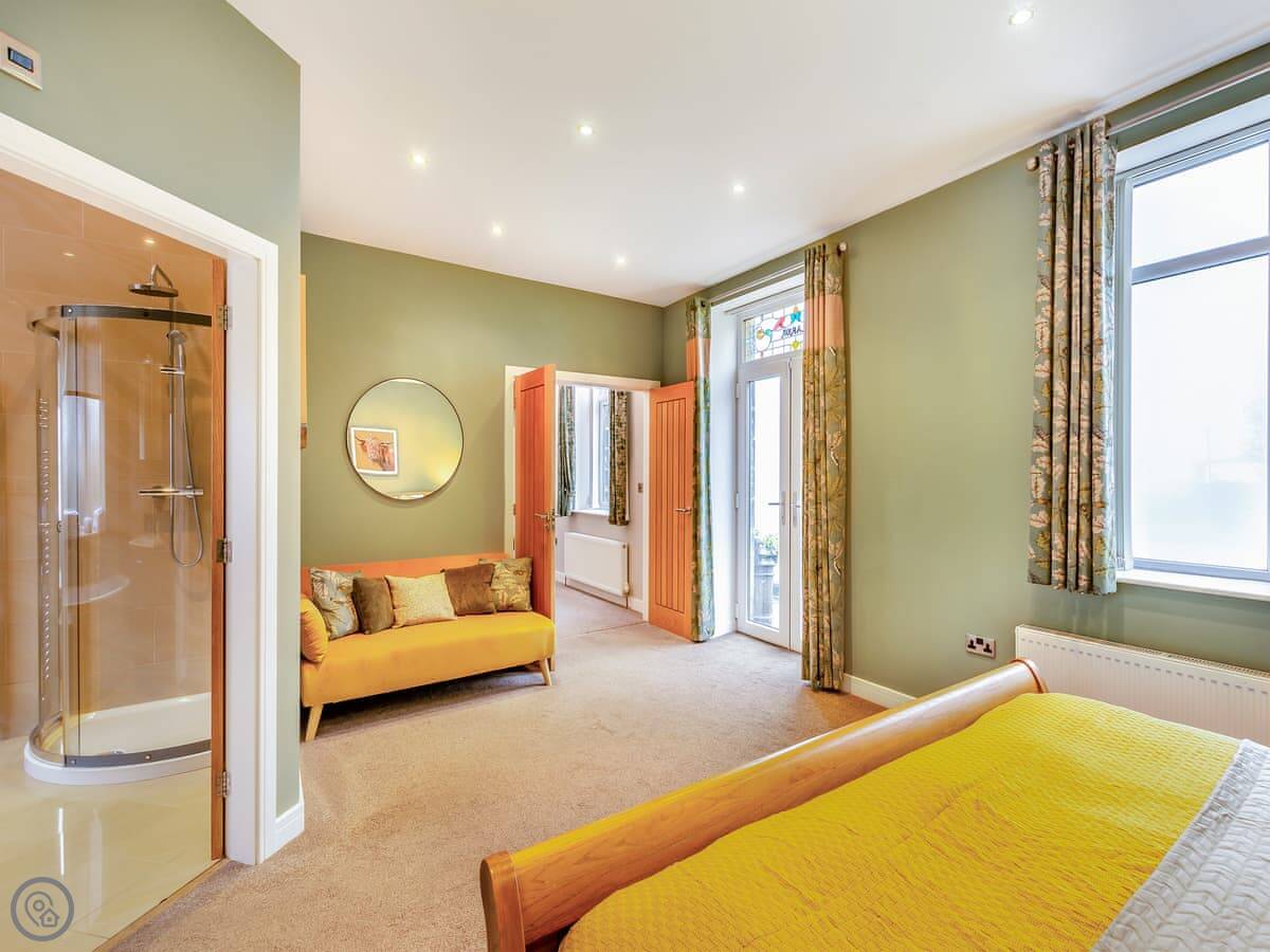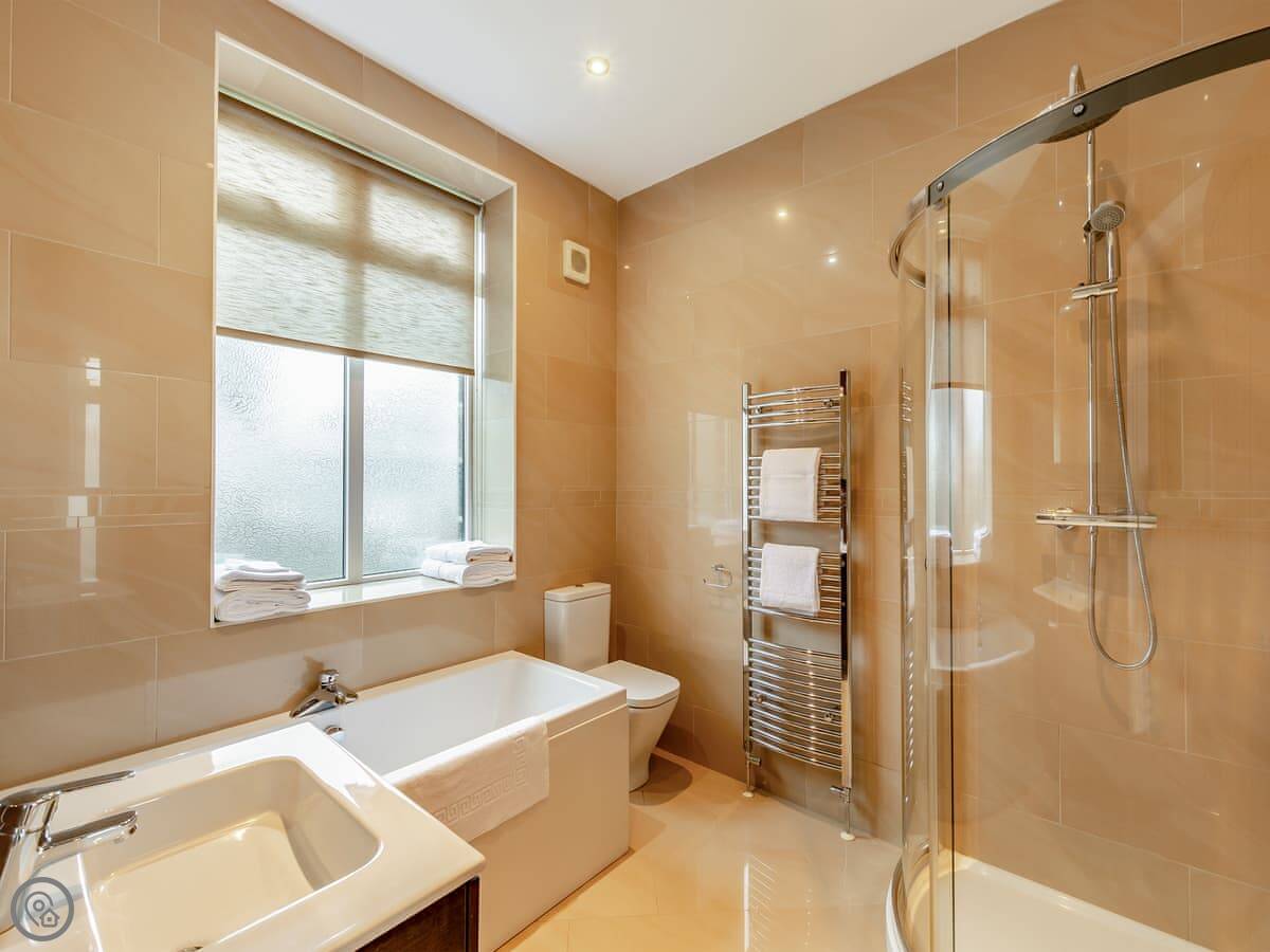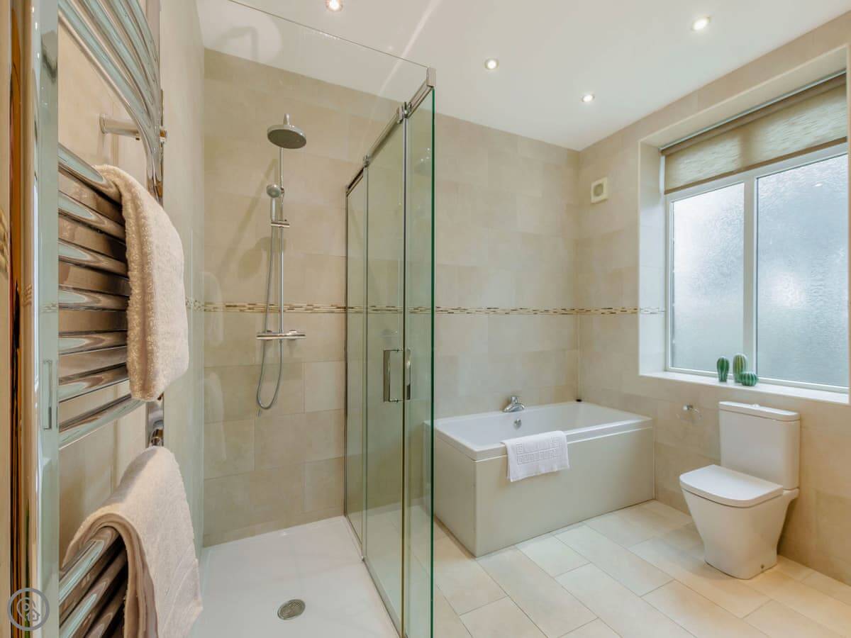 Clarion Lodge Cottage is in Menston, which is on the edge of the Yorkshire Dales. It's a detached house that sleeps up to thirteen people. There are six bedrooms and three bathrooms. Two of the bedrooms have their own shower. It's got a 4 Star rating.